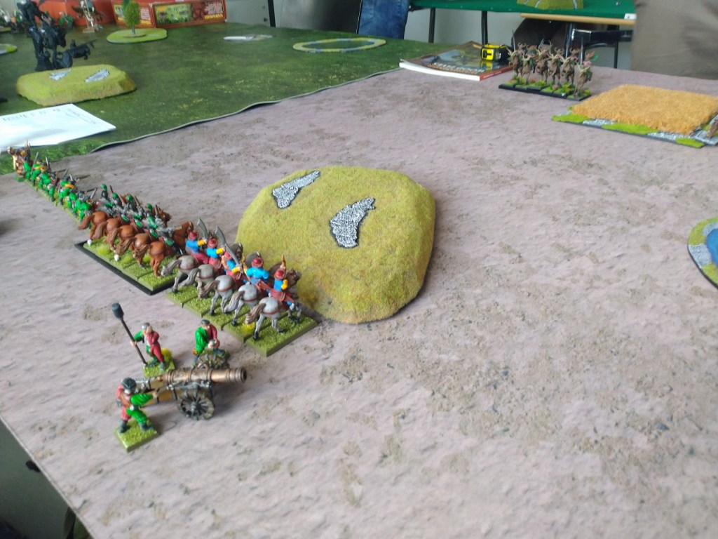 Today we played typical Border Patrol (GW rules) with Alessandro and Krzysztof on 500 points. First game was played beetwen Alessandro Night Goblins vs Krzystof Ogres, second game was played beetwen my Empire and Krzysztof Ogres. I tried to make some scenario, so we agreed that the tower belonged to wizard who perished long time ago. Of course both sides want’s the tower – units 6′ from tower were Immune to Panic.