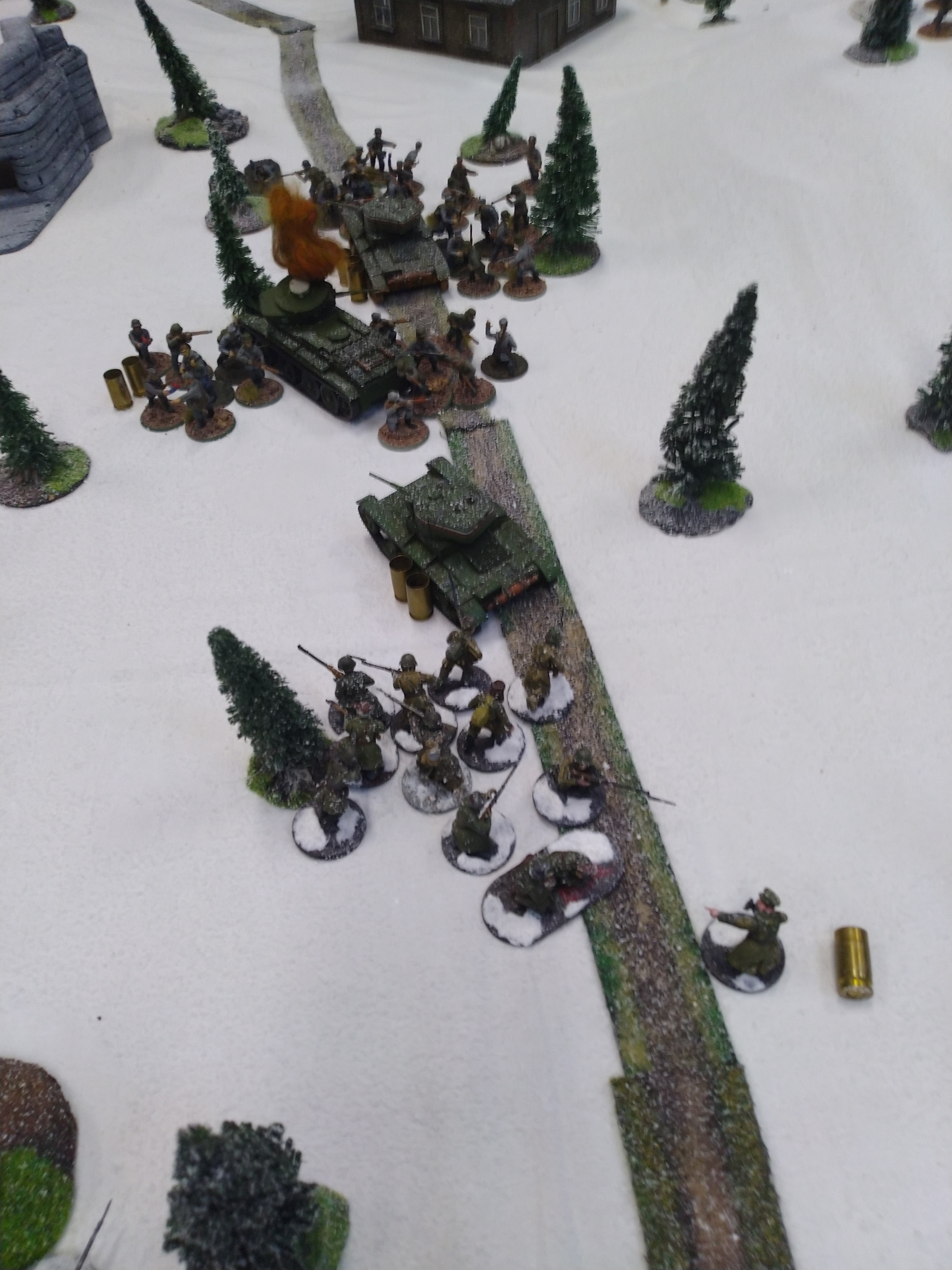We lost one bunker from T-28 howitzer shell, then enemy losed they armoured car from some well thrown bottle.