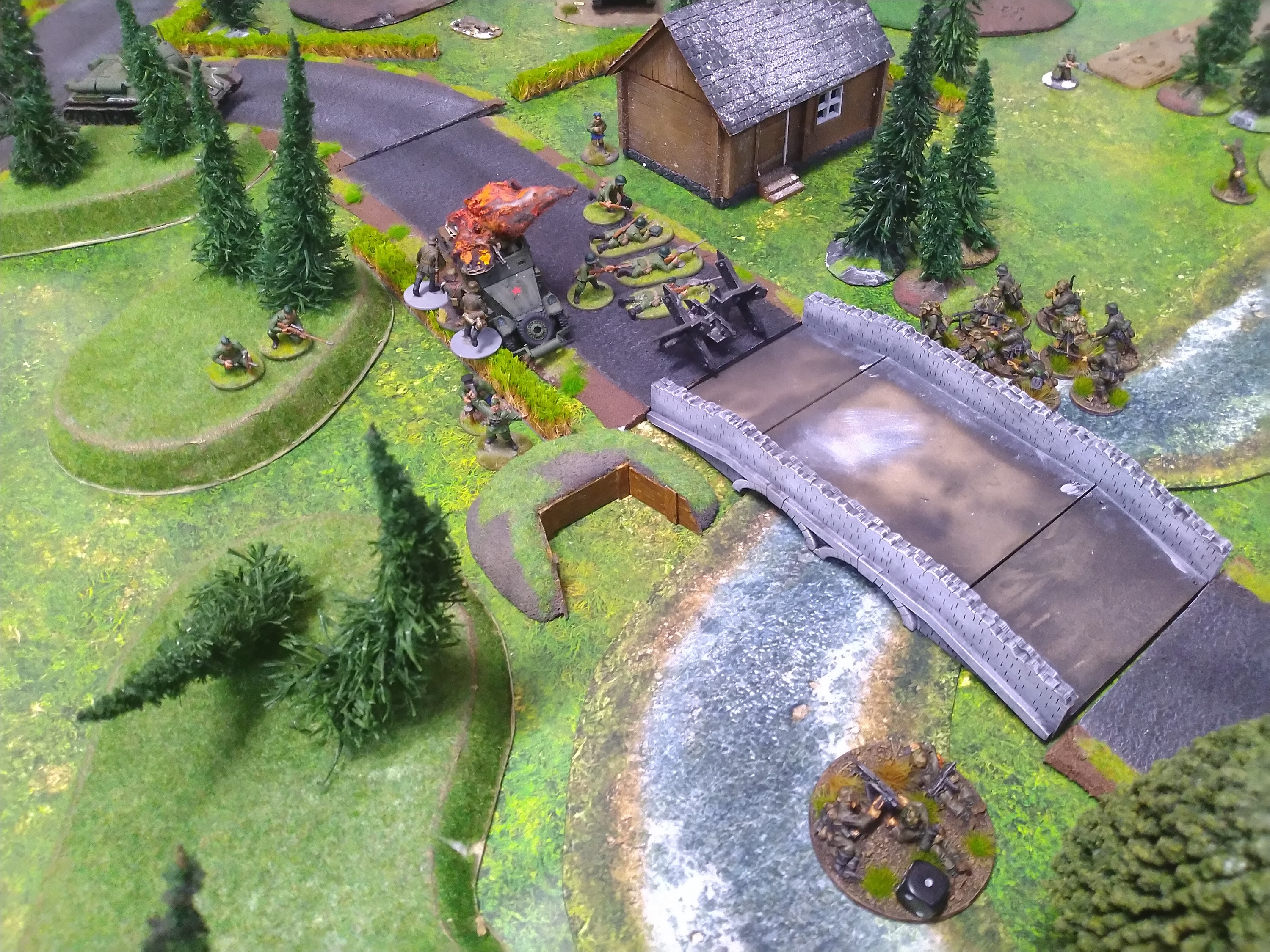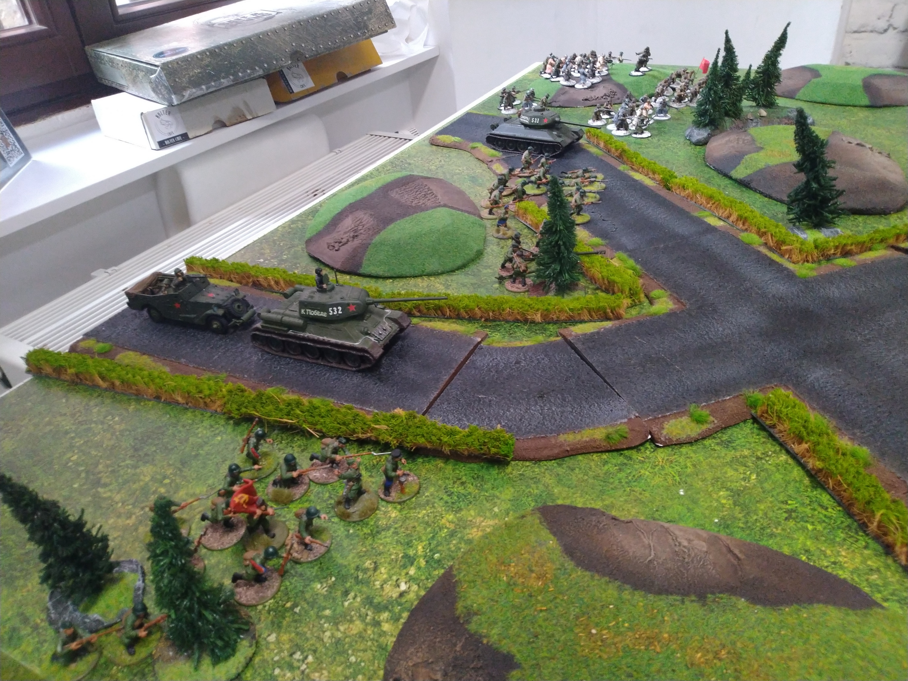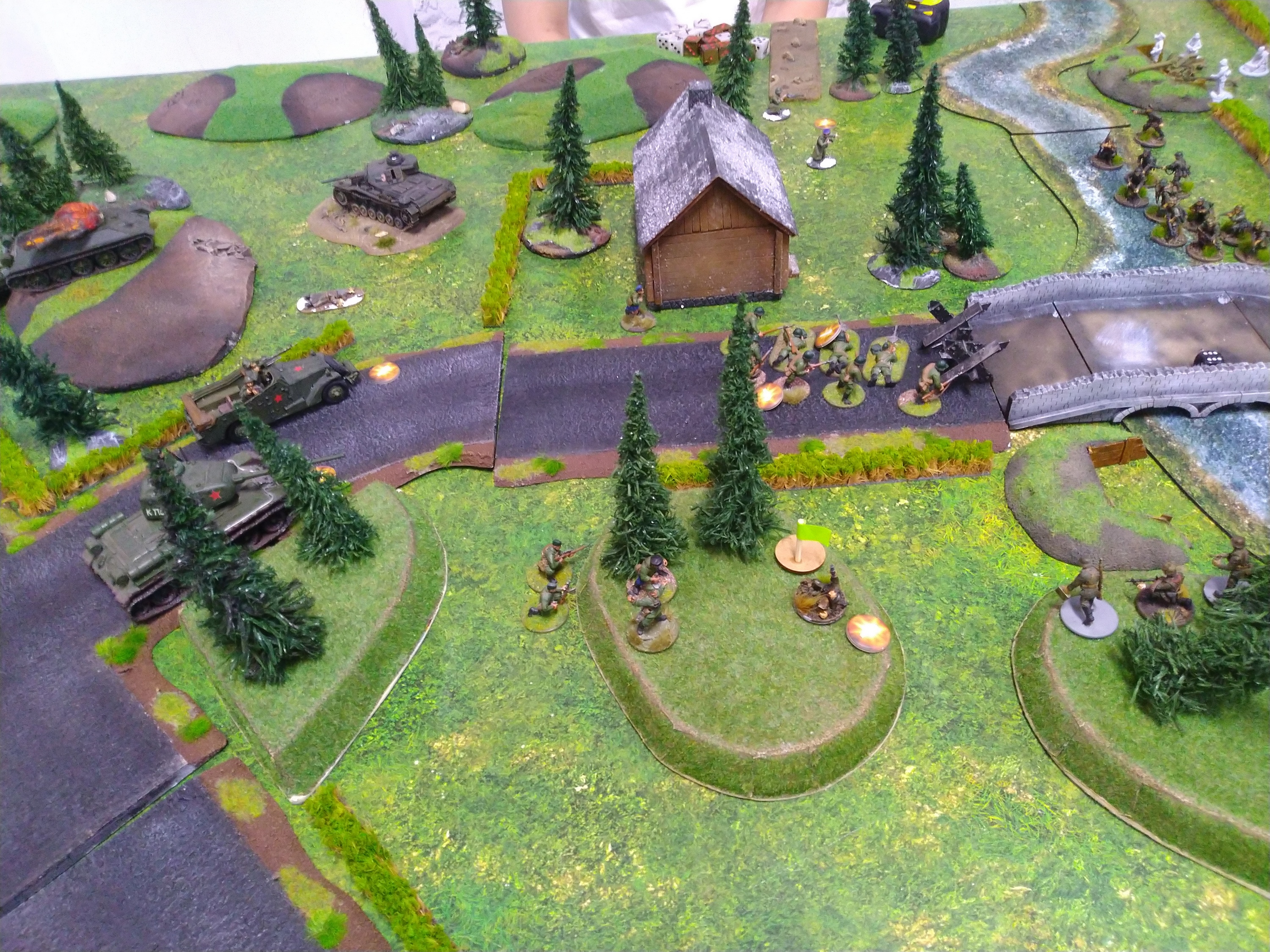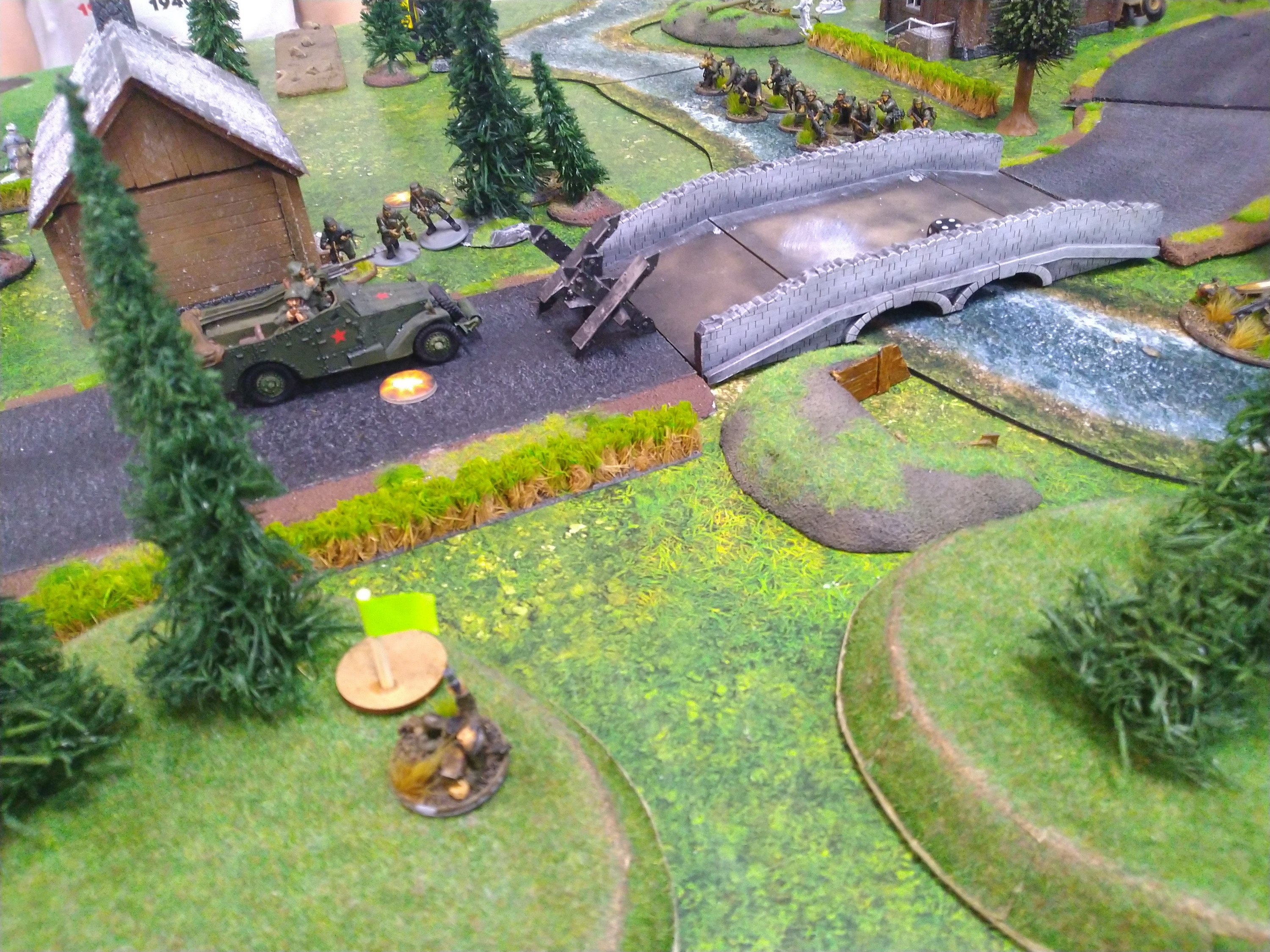 Today I played on one side with Łukasz playing Soviets, on the other side were Sławek with Germans. With Łukasz our platoons had 2,000 of points and Sławek as defender had 1,500 points – it was test, as usually in reality attackers overhelmed defenders with numbers. The main objectives was to have control over bridge and/or two fords – both fords in points were equal to bridge. In addition Germans could blow up bridge, but no one would earn points for it.