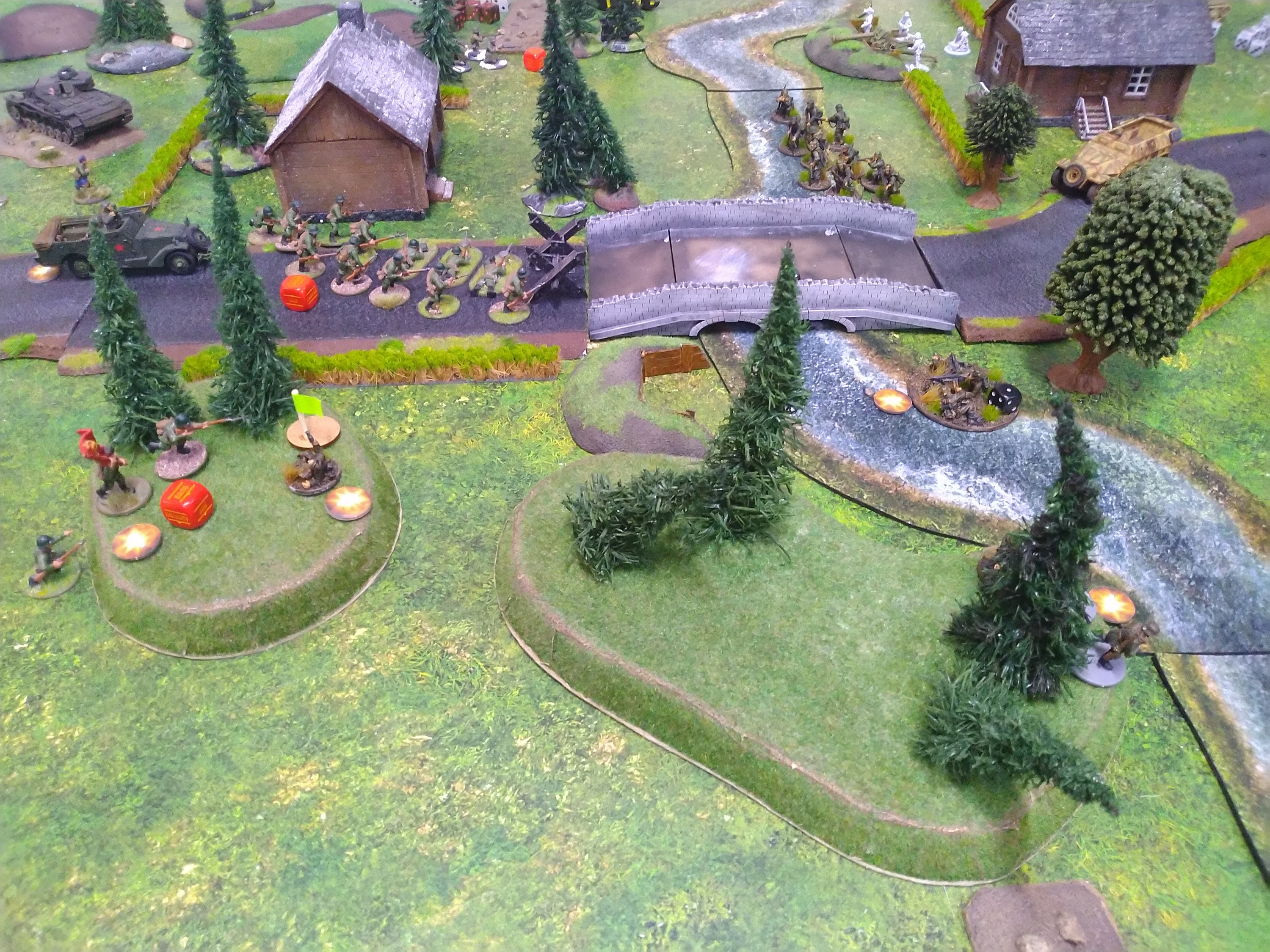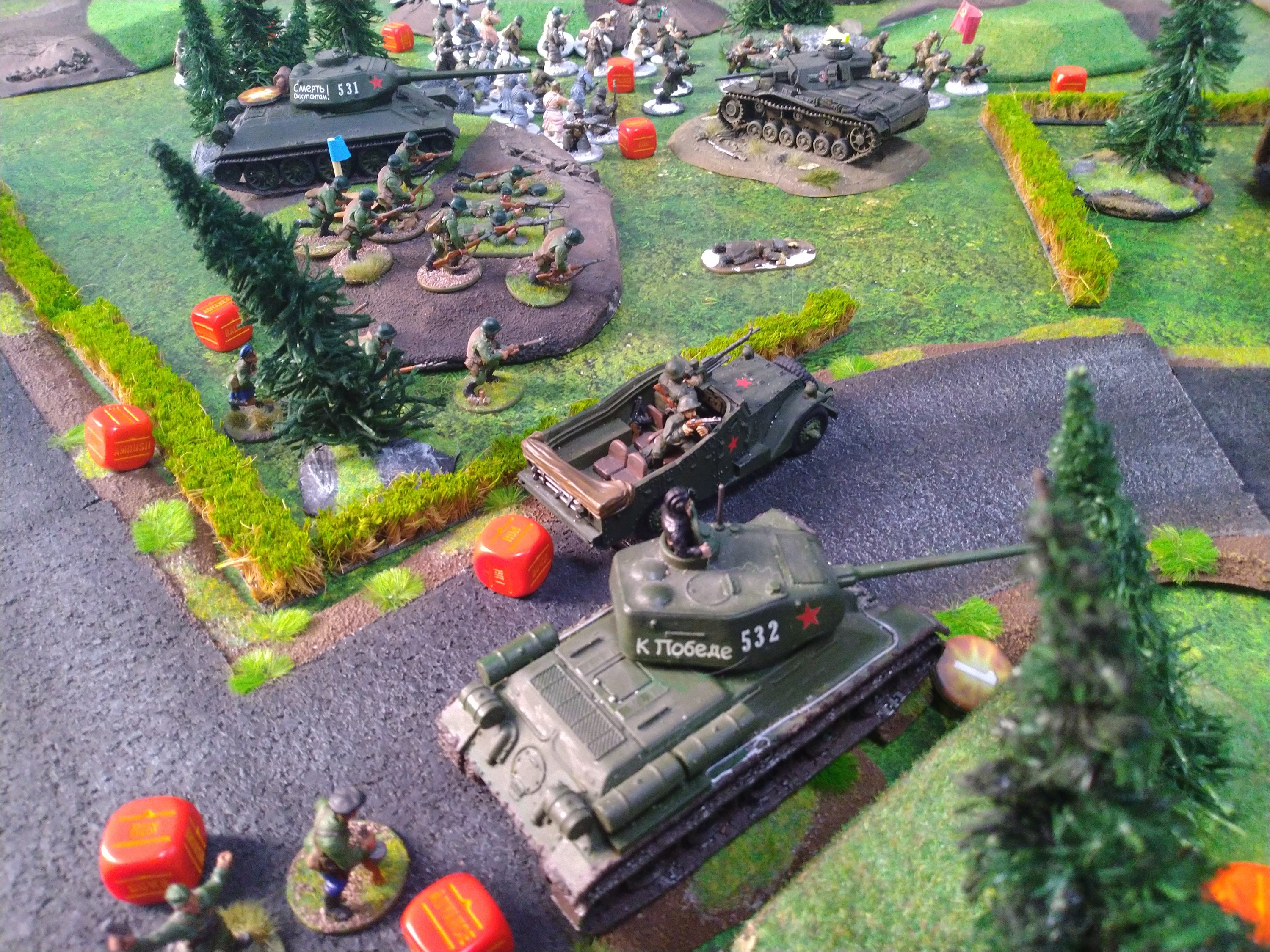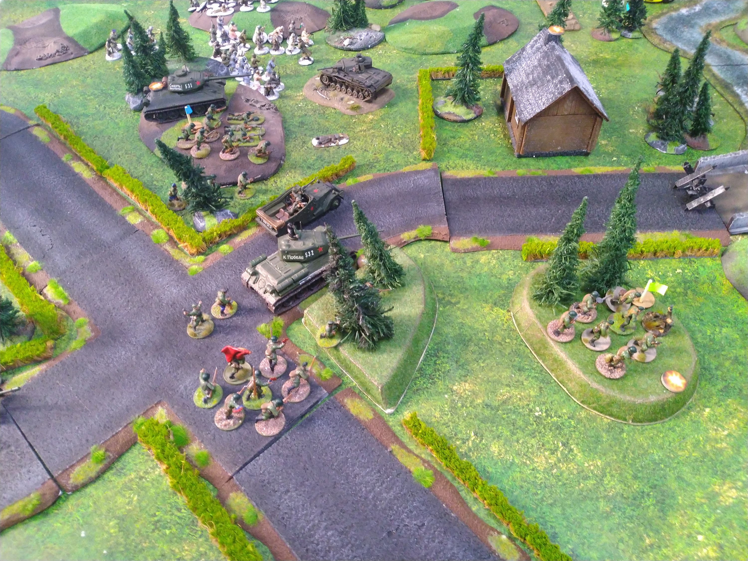 Today I played on one side with Łukasz playing Soviets, on the other side were Sławek with Germans. With Łukasz our platoons had 2,000 of points and Sławek as defender had 1,500 points – it was test, as usually in reality attackers overhelmed defenders with numbers. The main objectives was to have control over bridge and/or two fords – both fords in points were equal to bridge. In addition Germans could blow up bridge, but no one would earn points for it.