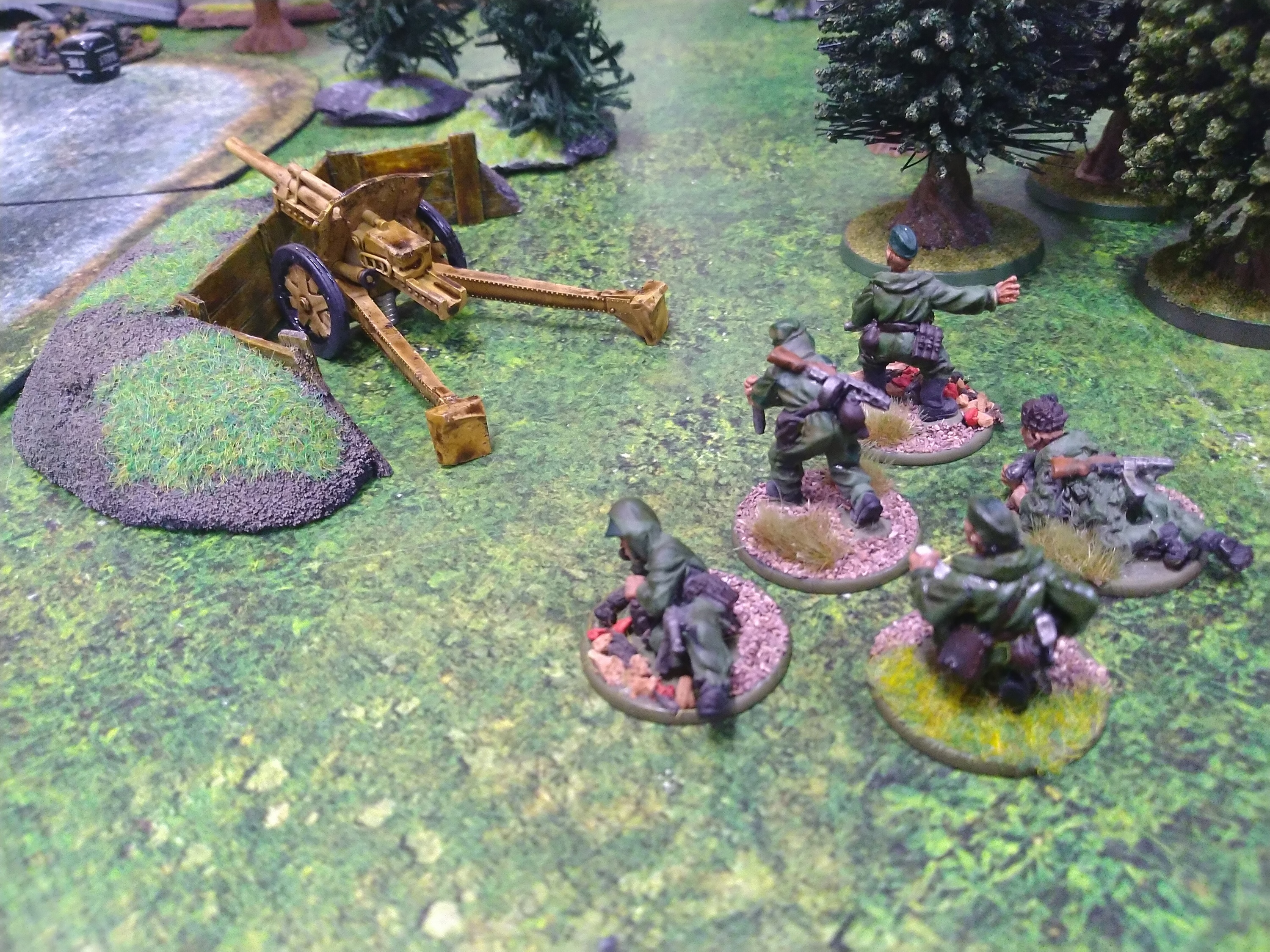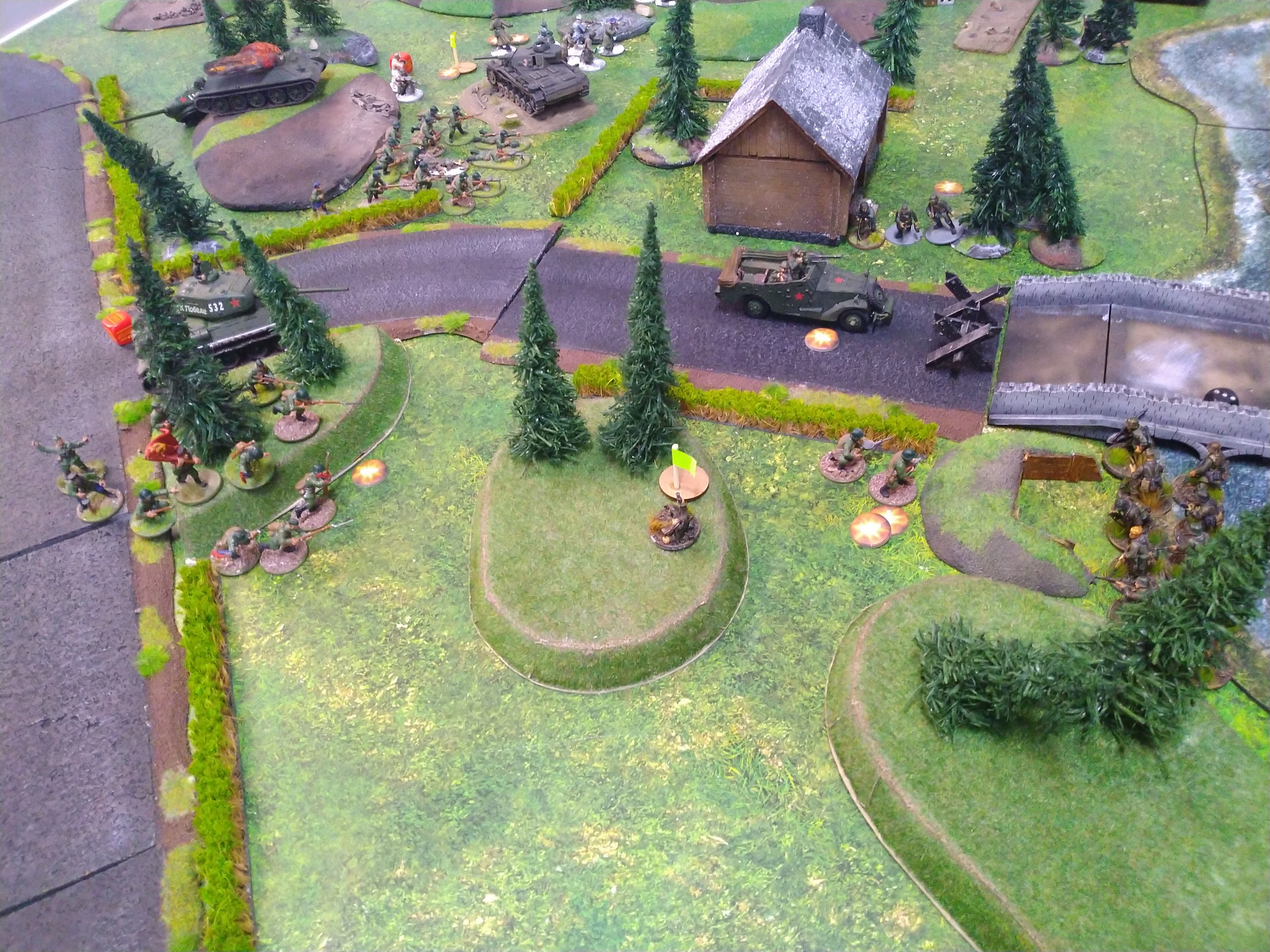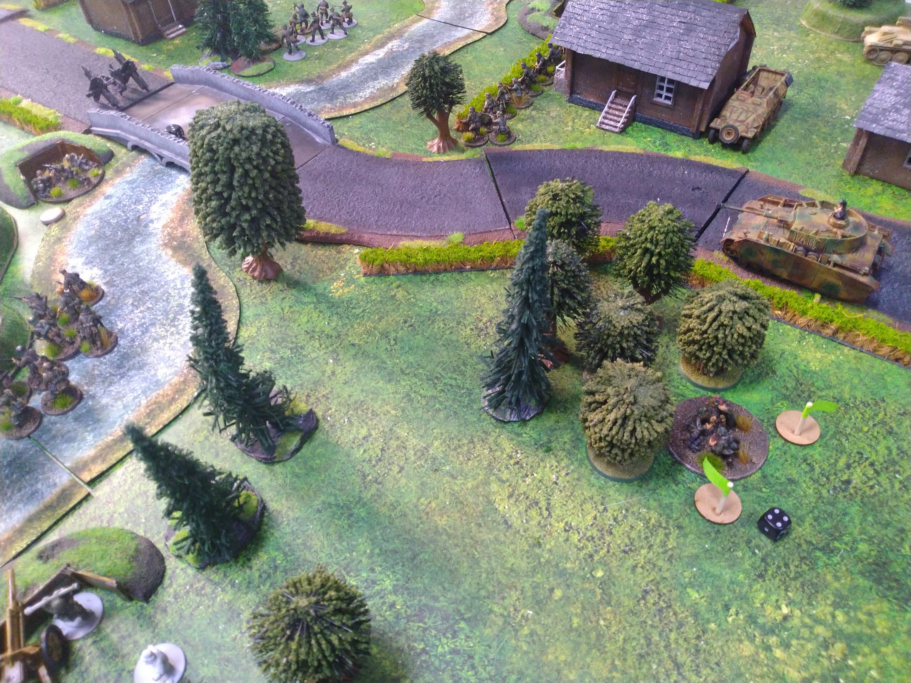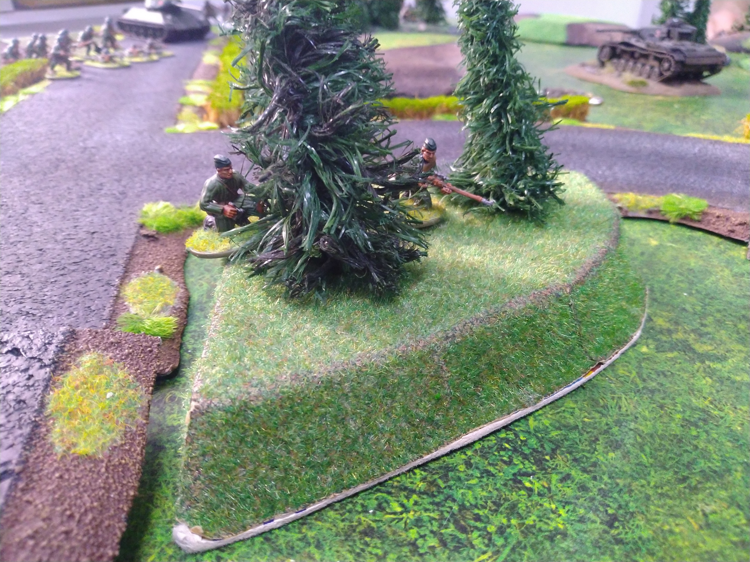 Today I played on one side with Łukasz playing Soviets, on the other side were Sławek with Germans. With Łukasz our platoons had 2,000 of points and Sławek as defender had 1,500 points – it was test, as usually in reality attackers overhelmed defenders with numbers. The main objectives was to have control over bridge and/or two fords – both fords in points were equal to bridge. In addition Germans could blow up bridge, but no one would earn points for it.