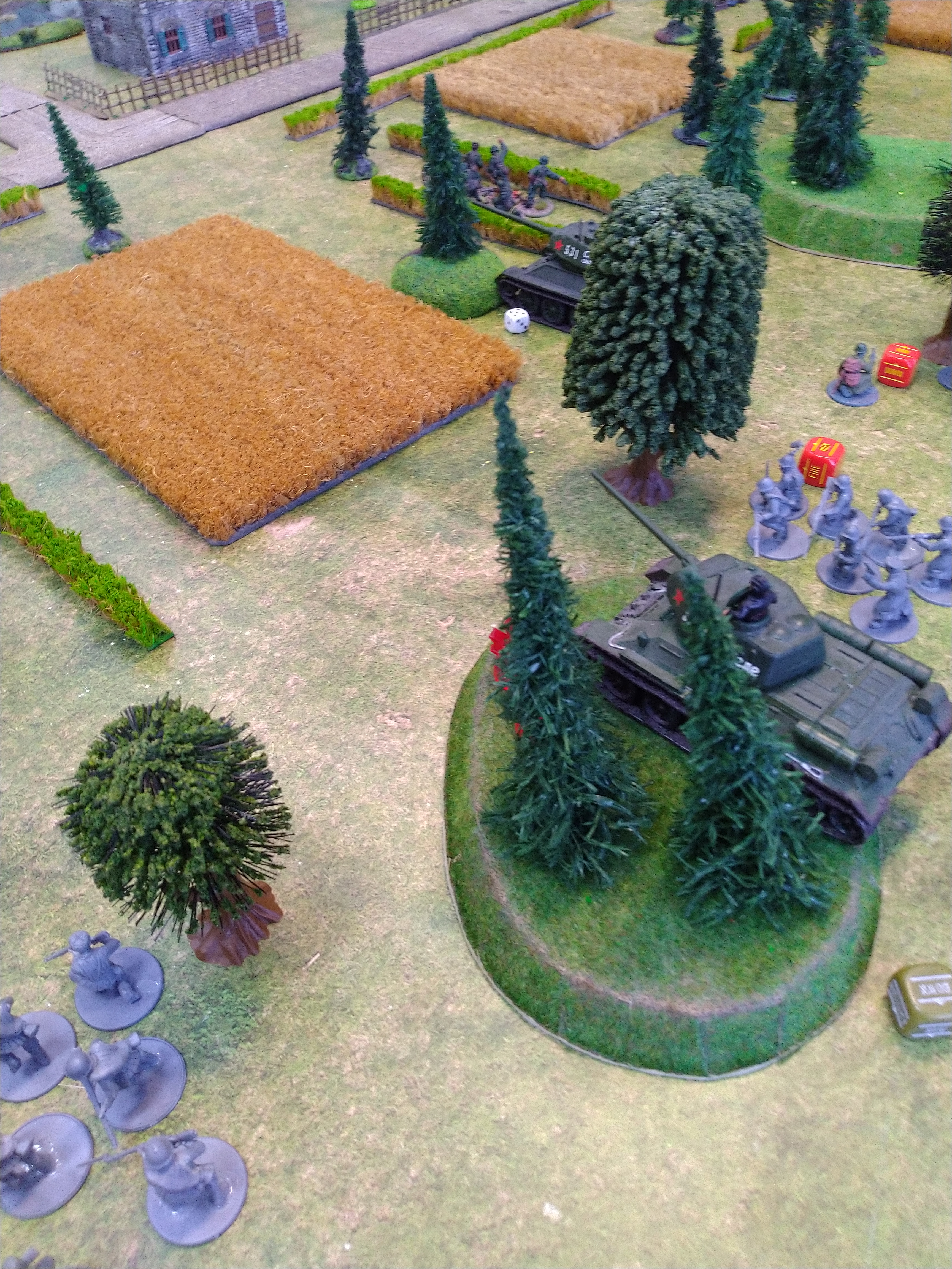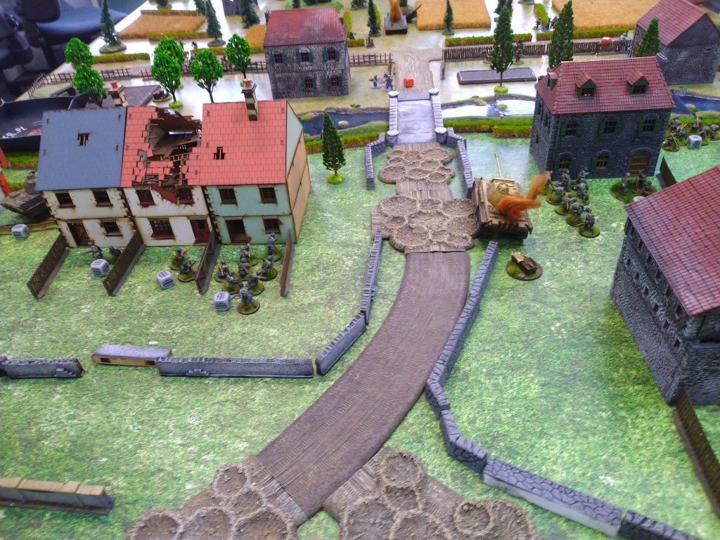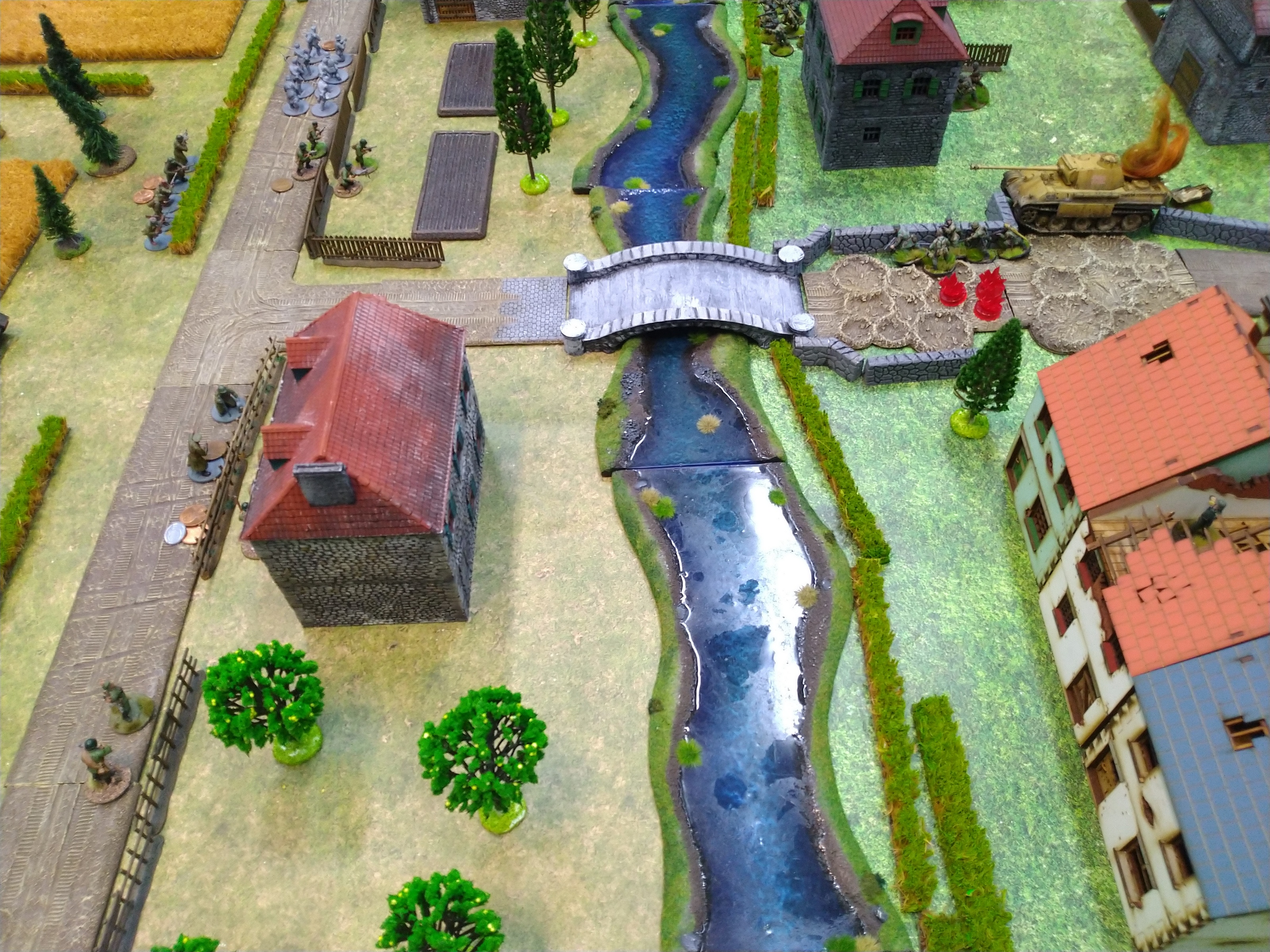 W ostatnią środę zagraliśmy w Bolterze z Karolem (Niemcy) i Frankiem (Związek Radziecki) scenariusz, w którym oddziały Armii Czerwonej powinny zająć ważny most, by zatrzymać konwój niemieckich ciężarówek próbujących się ewakuować. Armia Czerwona nacierała przez tereny leśne. Niemcy byli wystawieni w mieście oraz po radzieckiej stronie wystawienia, jako tylna straż. Graliśmy na około 2,000 punktów na stronę. Głównym zadanie dla Armii Czerwonej było kontrolowanie mostu do czwartej tury, Niemcy mieli za zadanie niedopuścić do tego.