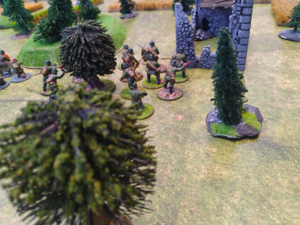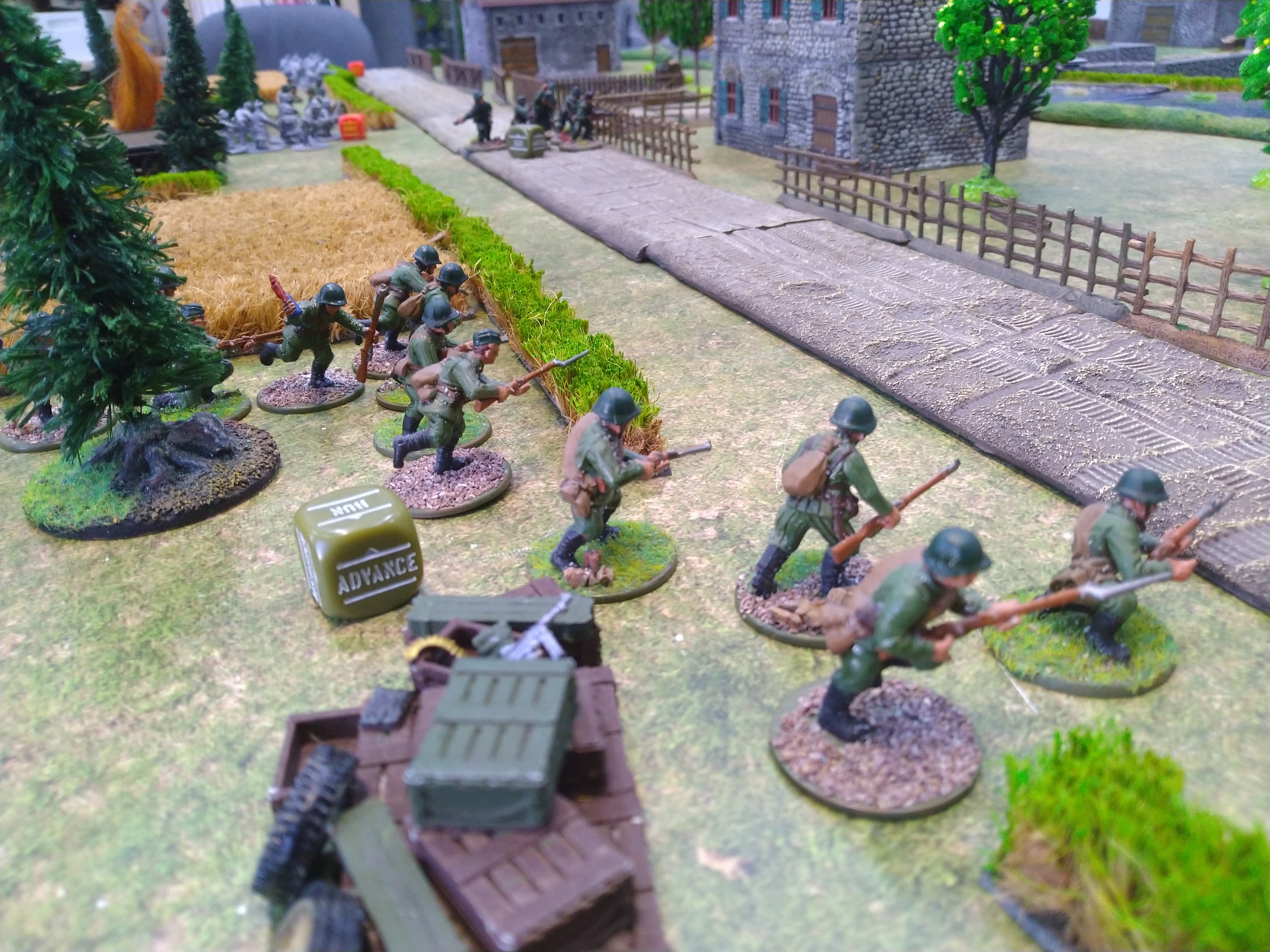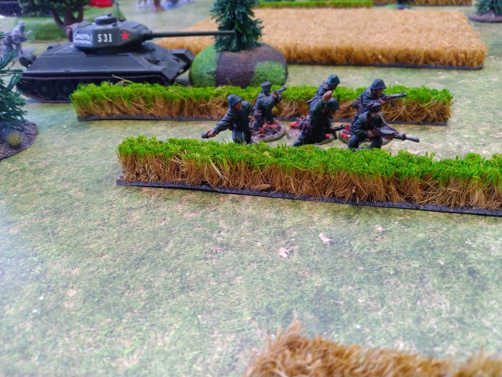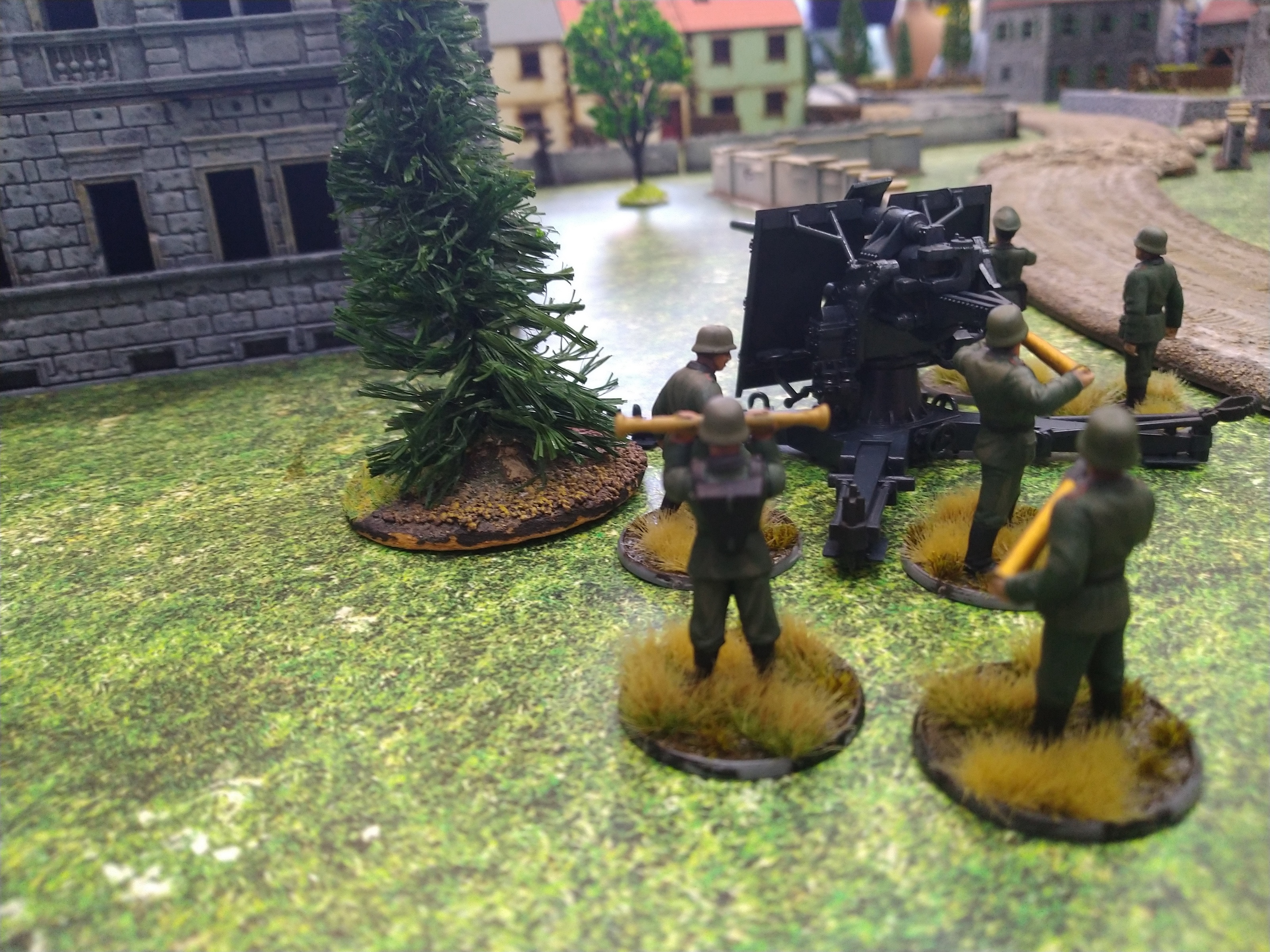 W ostatnią środę zagraliśmy w Bolterze z Karolem (Niemcy) i Frankiem (Związek Radziecki) scenariusz, w którym oddziały Armii Czerwonej powinny zająć ważny most, by zatrzymać konwój niemieckich ciężarówek próbujących się ewakuować. Armia Czerwona nacierała przez tereny leśne. Niemcy byli wystawieni w mieście oraz po radzieckiej stronie wystawienia, jako tylna straż. Graliśmy na około 2,000 punktów na stronę. Głównym zadanie dla Armii Czerwonej było kontrolowanie mostu do czwartej tury, Niemcy mieli za zadanie niedopuścić do tego.