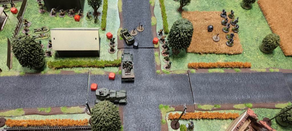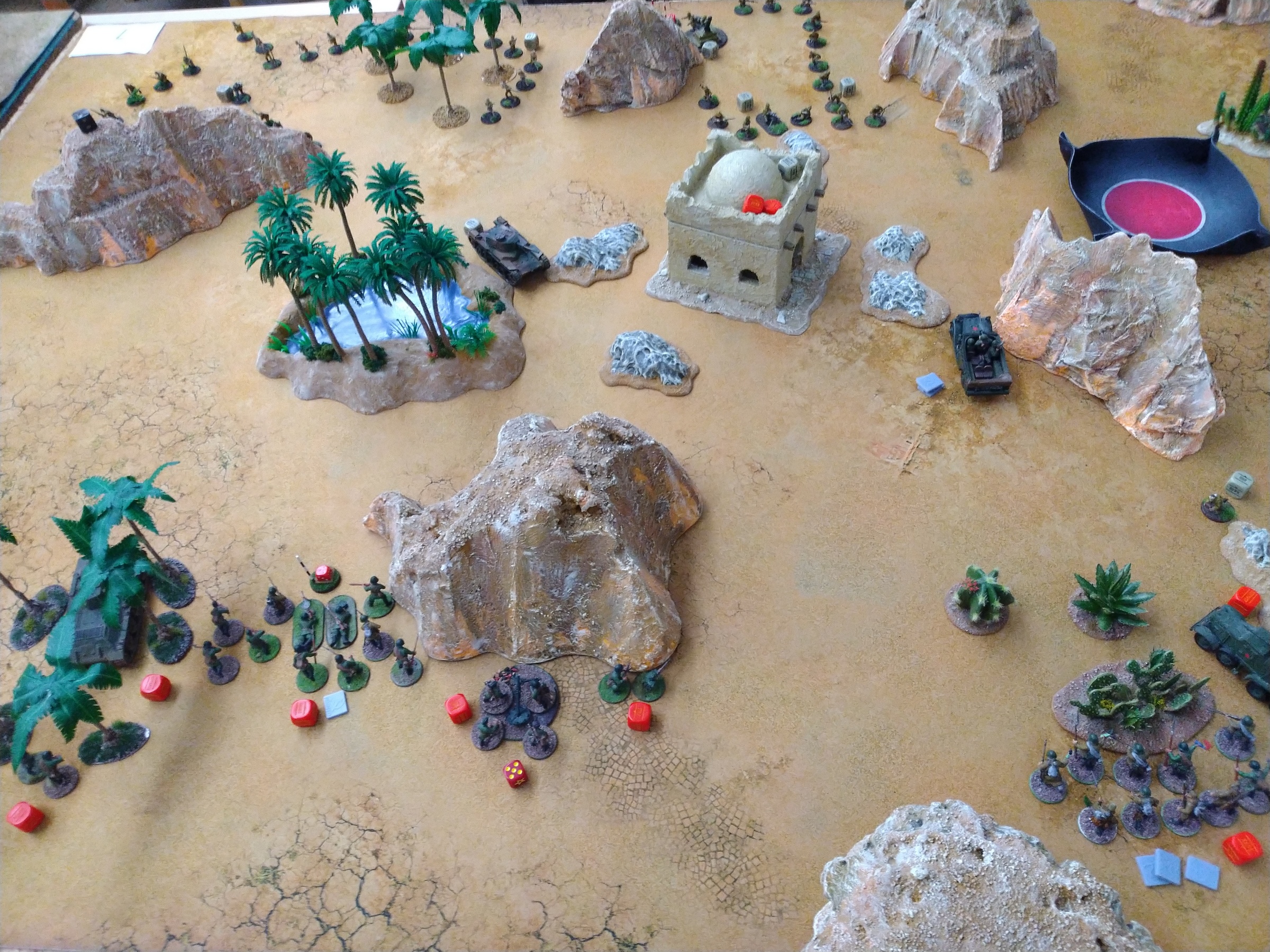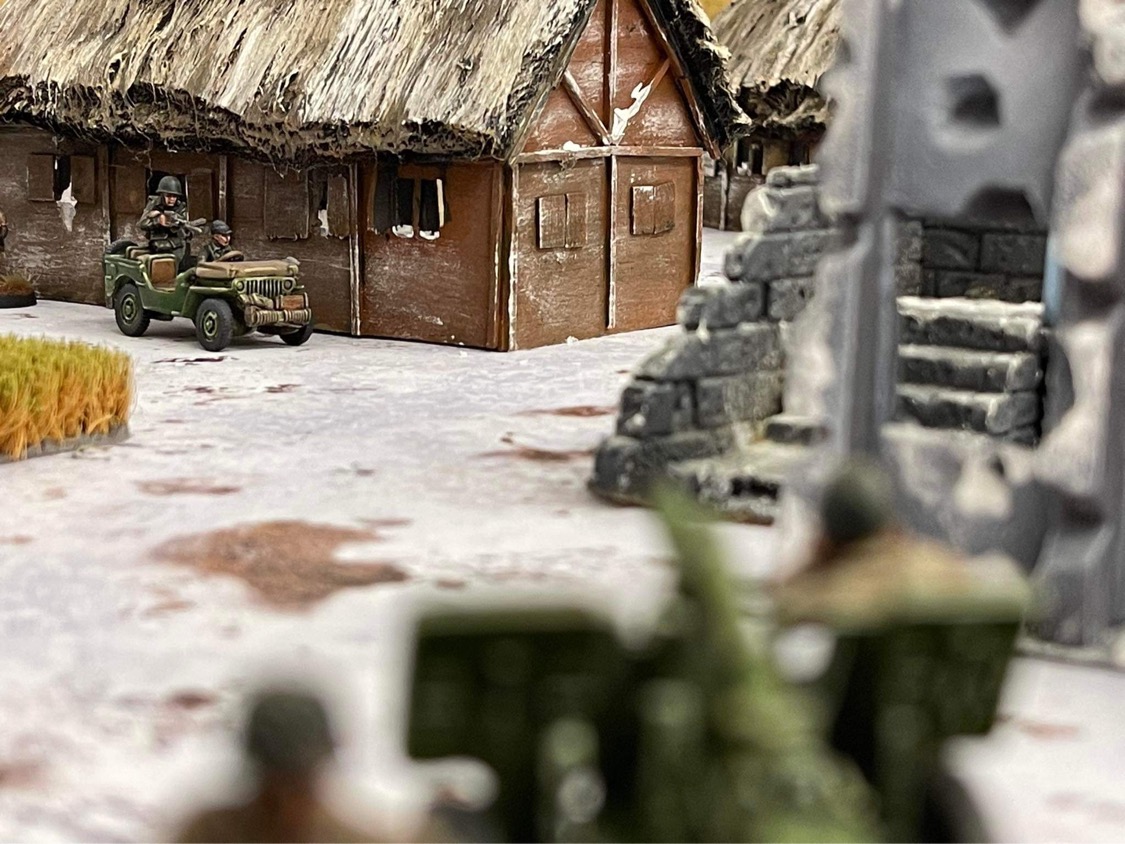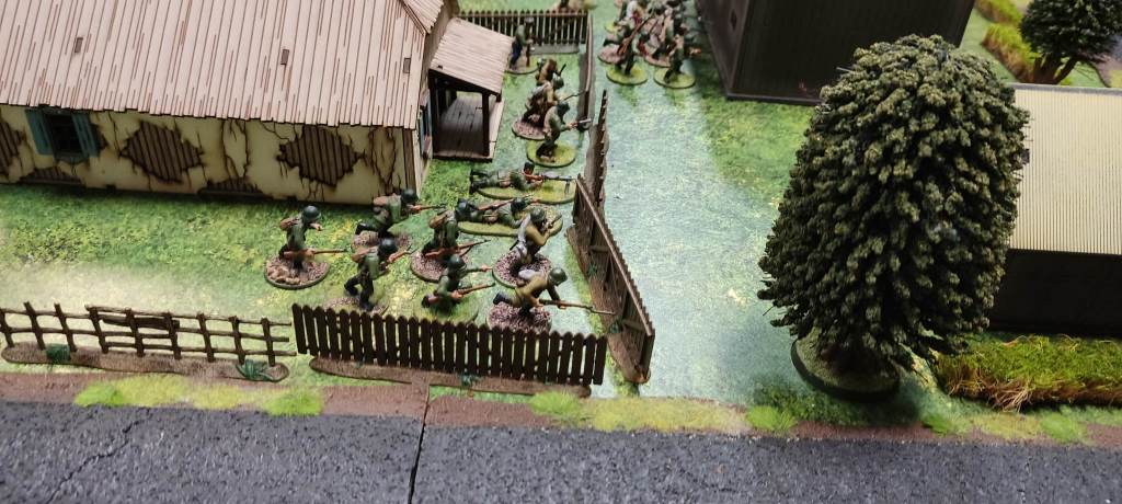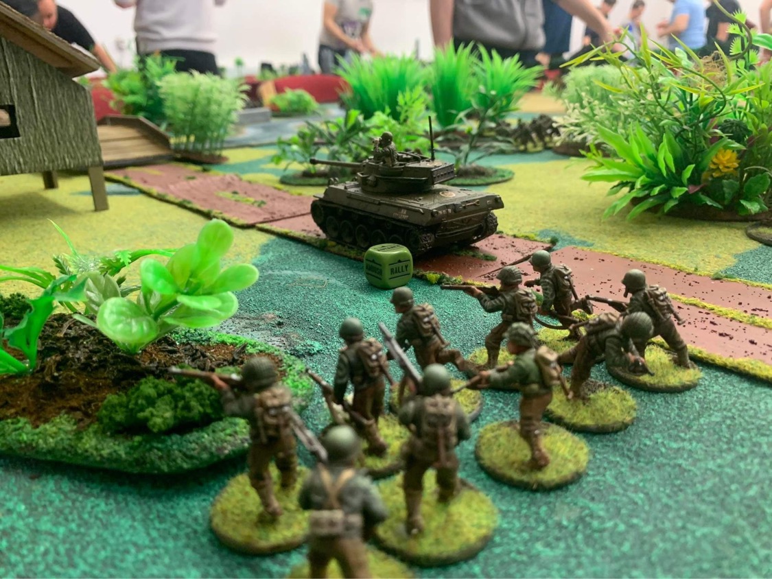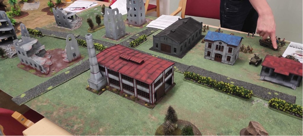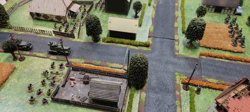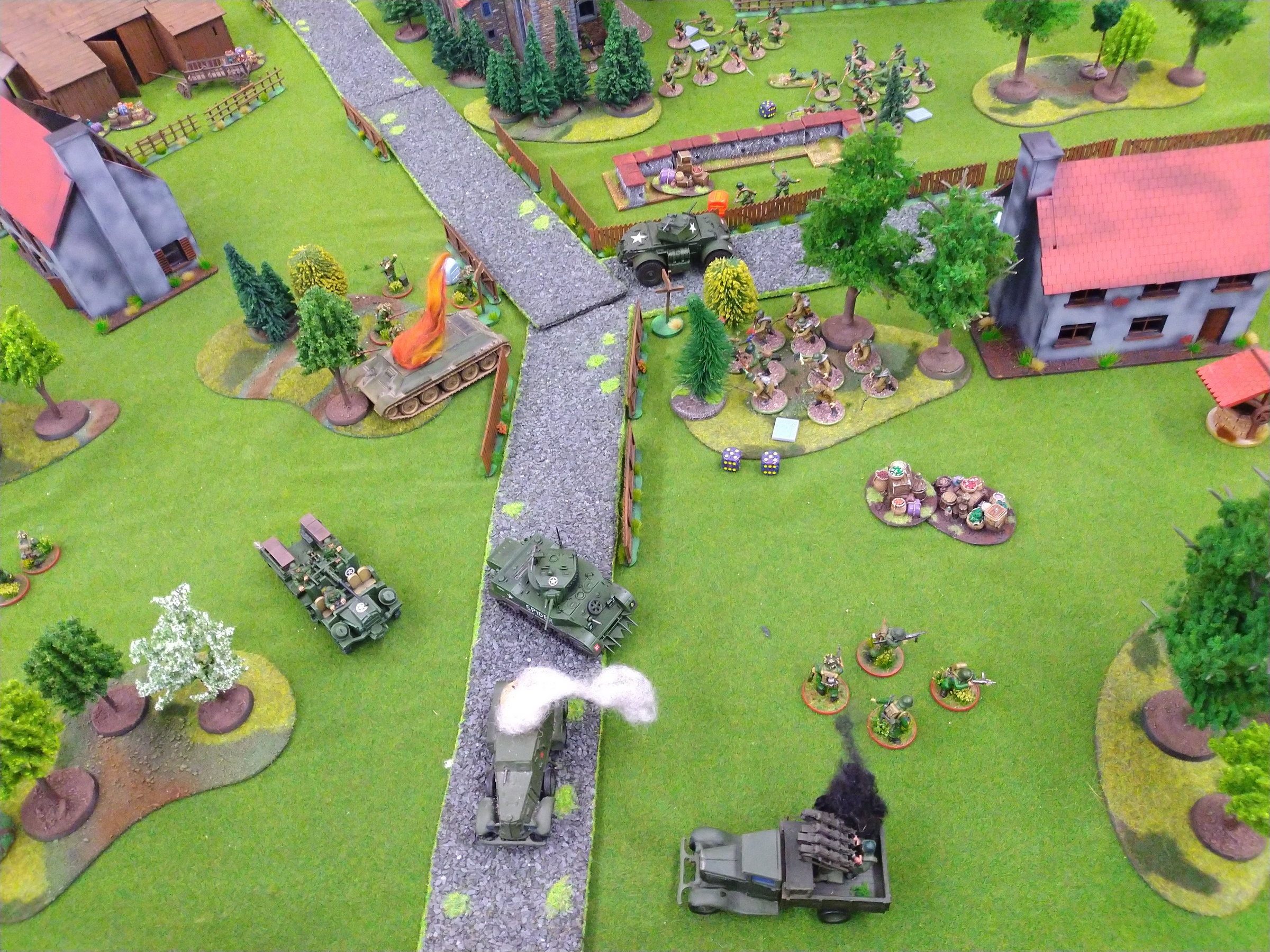 Gaz-AA, famous T-34, free infantry squad, HQ, LMG squad, BA-6, M3-White Scout Car with veterans and flamer, another LMG squad. heavy mortar with spotter. Hidden sniper.Many different things happend. Politruk Popow and German junior officer felt together fighting across fence.