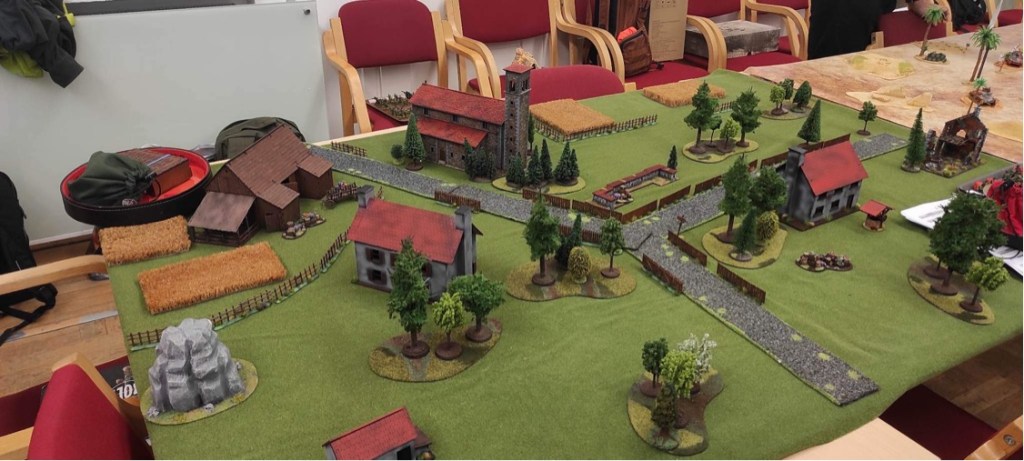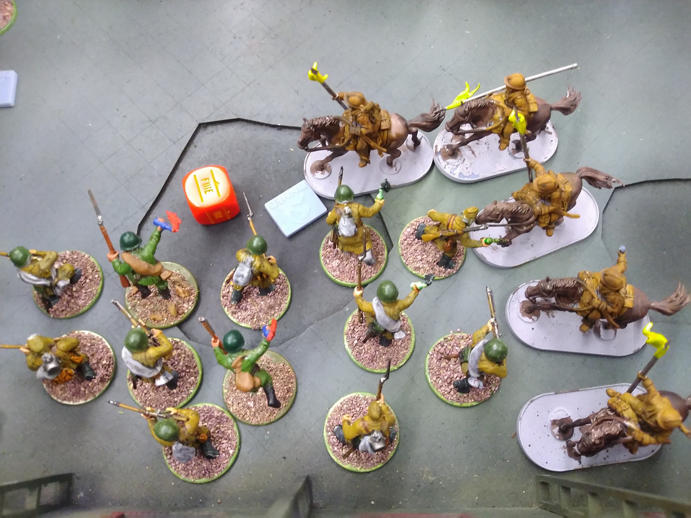 Great prelection with description of situation, participants and equipment, thank you Mr Piotr!I was listening in area, where great tosts and non-alcoholic drinks are served.Romanians of general Łukasz.German squad on the other table.Albanians, part of Italian forces.Red Army on the other side. Female soldiers painted by Bartosz.Not my table, still my Red Army comrades advancing against Germans and they allies.Forza Italia!Zis-6 burning from hidden gun…Romanian PZL ‚Karaś’ plane dropped bomb on T-34 destroying it in advance.Cavalry charge of brave sons of ancient Roma and cossacks from the other side.Katyusha shoots another salvo.Ju-52 found appropriate target for her bombs.Germans and Hungarians waiting for incoming wave of Red Army soldiers.PZL ‚Karaś’ dropping another bomb, this time without hit.Closer to line of brave defenders.Italian light tanks countercharged on left flank.Brave charge of general Danielo Italian cavalry.Another T-34 knocked out behind trees.Hoooraaa! Red Armists charged.They charge was repelled by Italian troops.T-70 immobilised – this happend to many tanks on both sides.