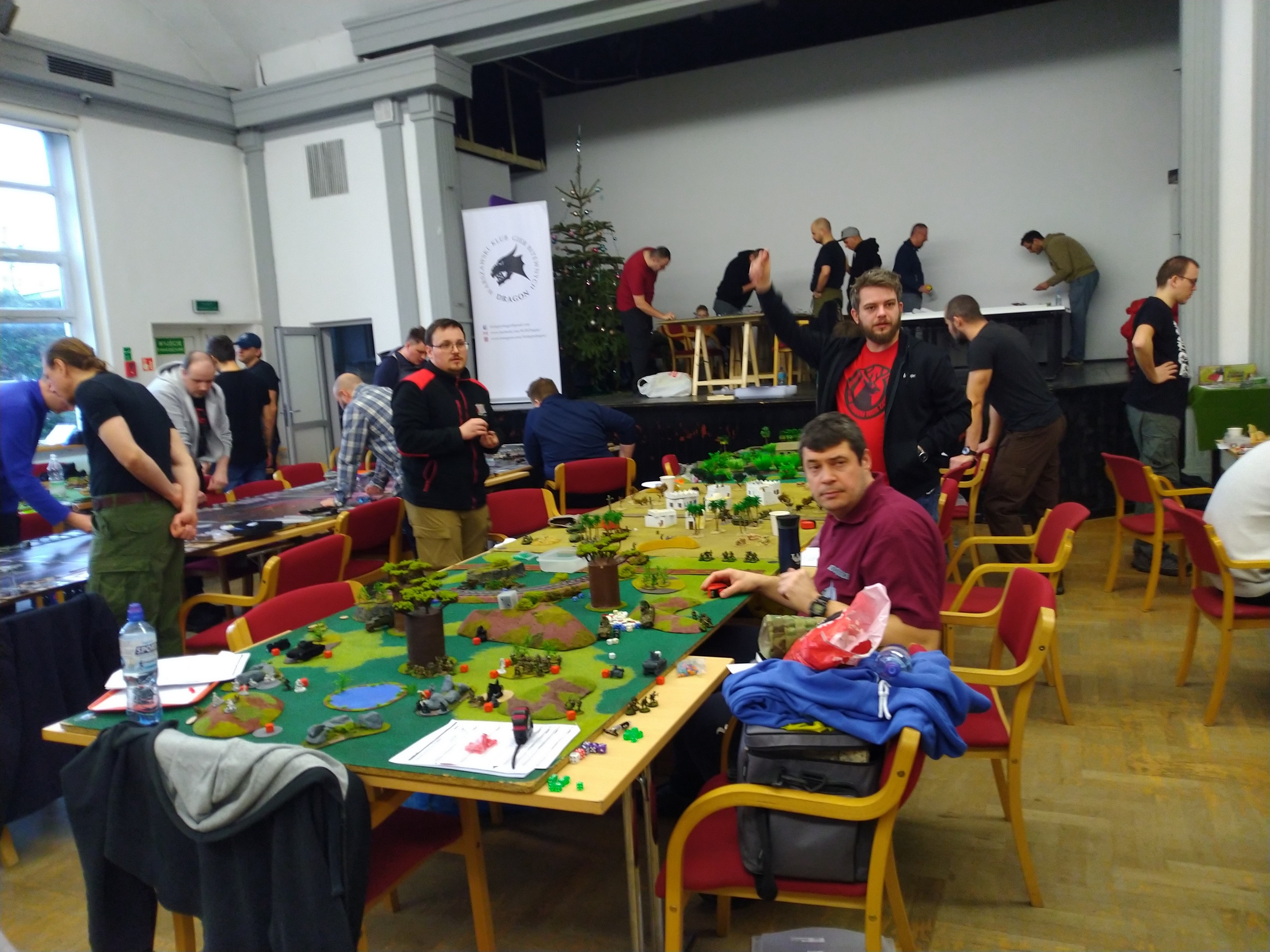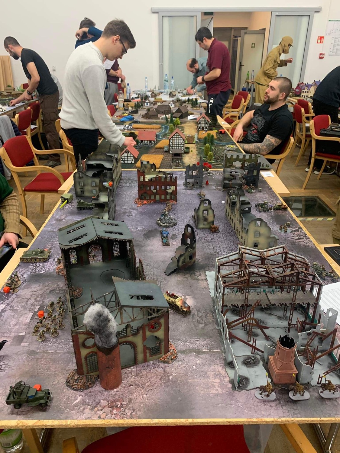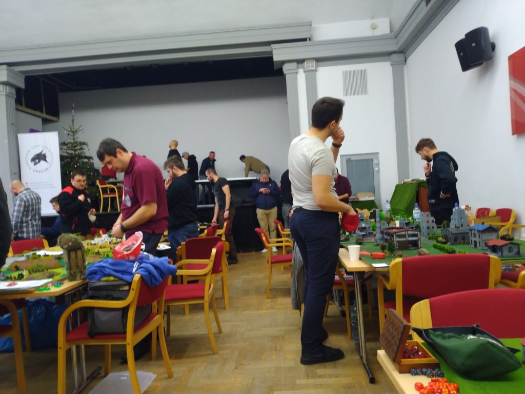 Spirit of Warlord Games was here. Duch Warlord Games tu był.What can I say, many beautiful tables! Co mogę rzec, wiele pięknych stołów.I was there during my first game against Filip Canadians. Byłem tutaj w trakcie mojej pierwszej gry przeciwko Kanadyjczykom Filipa. I was there too, in our fight for Mandżuria with Jarem Japanese! Tutaj też byłem, w naszej walce o Mandżurię z Japonią Jaremy.Table from Ostrów Wielkopolski. Stół przywieziony do Warszawy przez Ostrów Wielkopolski. So it begun – Łukasz playing at the entrance. Tak więc zaczęło się – Łukasz grający przy wejściu.I see me, Kuba, Kuba my last ‚enemy’ and Łukasz. Widzę siebie, Kubę, Kubę – mojego ostatniego ‚przeciwnika’ i Łukasza.My first battle against Filip’s Canadians. Moja pierwsza gra przeciwko Kanadyjczykom Filipa. Fubar!Canadians reserves came into battle. Kanadyjskie posiłki wkraczją do bitwy.I had simple Soviet plan. Miałem prosty, Sowiecki plan.Which was destroyed after artillery barrage. Który został zniszczony po artyleryjeskiej nawałnicy. 21:5 for Filip. 21:5 dla Filipa. Jarema and me have luck, to play second battle on all three tournaments we were. Jarema ze mną mamy to szczęście, by w trzech turniejach w których grałem zawsze grać naszą drugą grę.10:6 victory belonged to Jarema. 10:6 zwycięstwo należało do Jaremy.My last battle against Kuba playing Poles 1939. Moja ostatnia bitwa przeciw Polsce 1939 Kuby.My comrades from Wrocław visible on this photo. Moi towarzysze widoczni na zdjęciu. Beginning of the End. Początek końca.From this time, scenes not from my table. Od tego momentu sceny nie z mojego stołu.Łukasz Japanese. Japończycy Łukasza.Awards! Nagrody!Me in green. Ja w zielonym.All participants were winners! Wszyscy uczestnicy byli wygranymi!