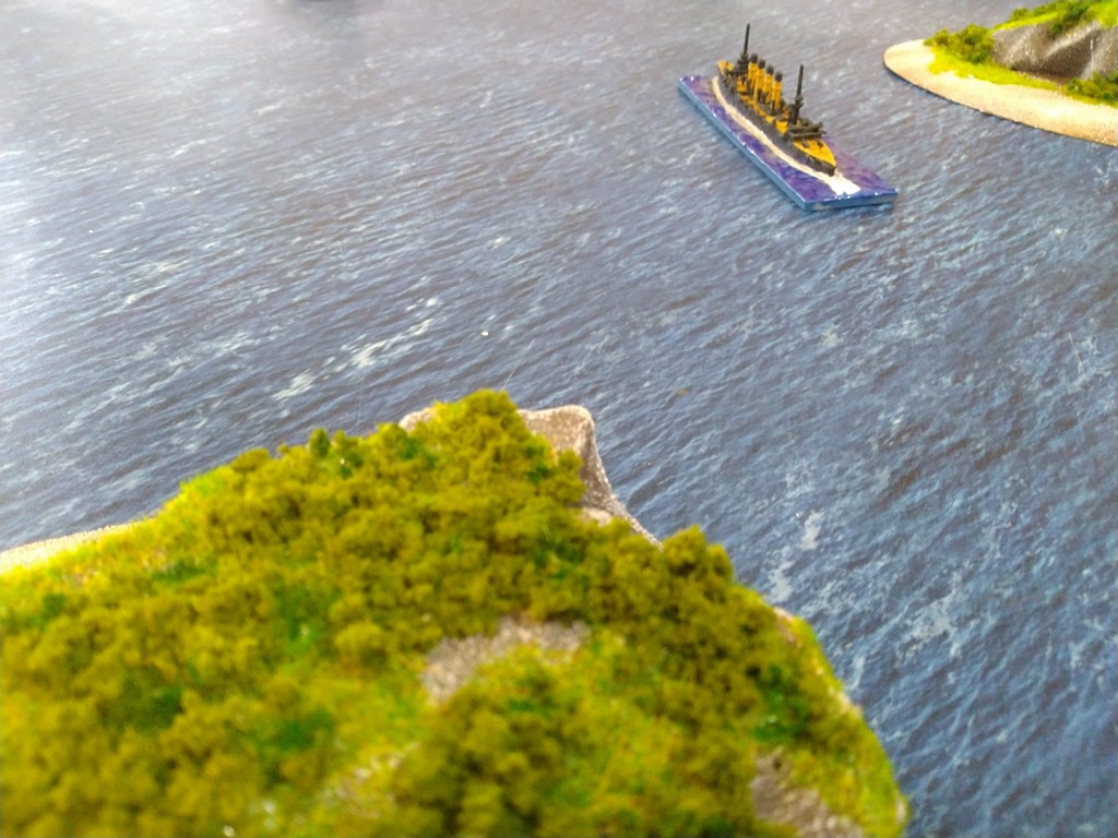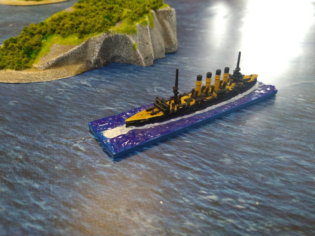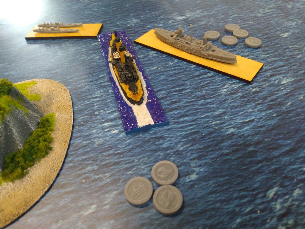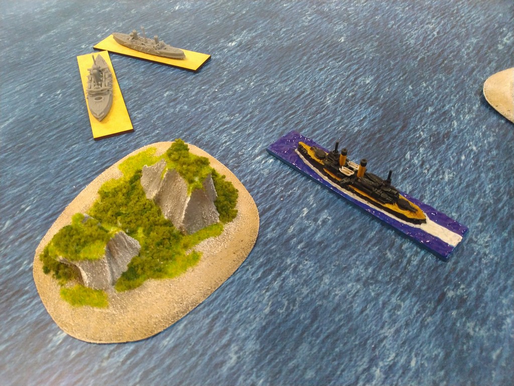 Borodino class and Varyag. Next to Varyag you can see orders for this turn and next turn.Varyag move around island.Novik and two groups of Japanese torpedo boats.Love those terrains, bring life to the table on great level.Mikasa, Nisshin, two torpedo boats and Borodino on right.Novik opens fire on one group of torpedo boats.Critical hit, crew of torpedo boats swim to the island.Artillery duel beetwen Varyag and Nisshin.Lucky shoot exploded in ammunition storage, Varyag sunk in a moment.Borodino bravely goes forward.Aurora getting close to second group of torpedo boats.Ramming thru.Aurora got some water and fire.Lucky shoot on Mikasa, Aurora destroyed main ammo storage.Fires and water aboard warships of both sides.Ramming island by Japanese cruiser.