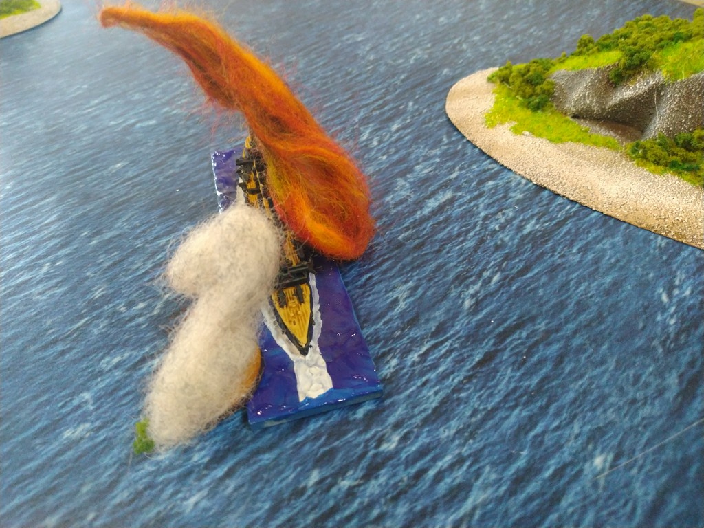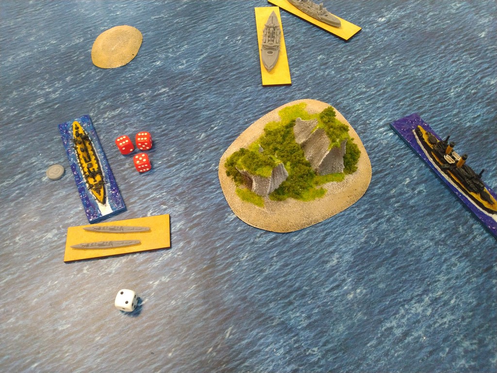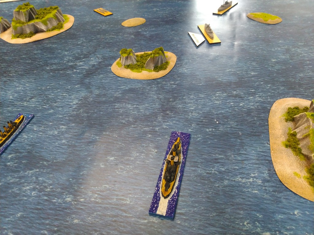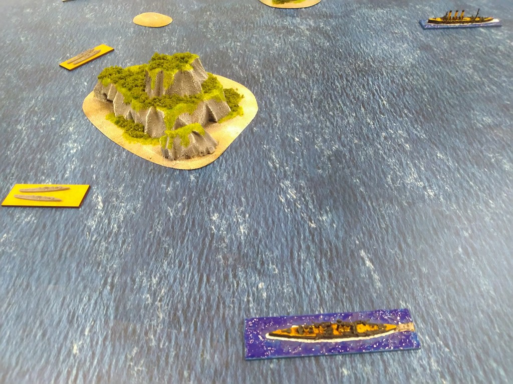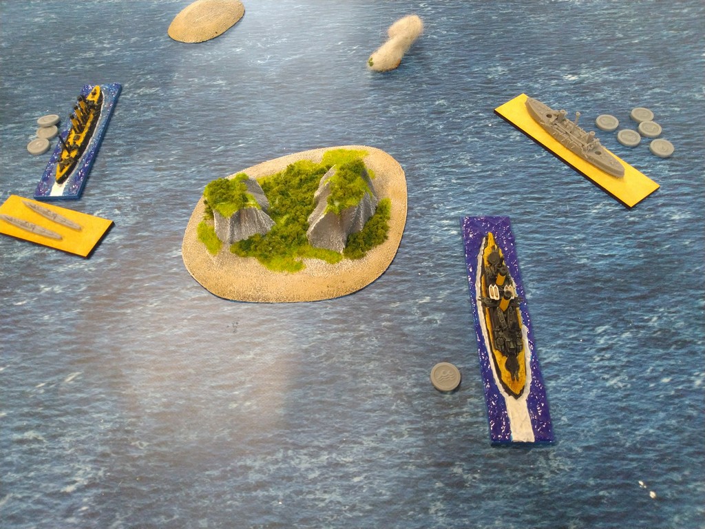 Borodino class and Varyag. Next to Varyag you can see orders for this turn and next turn.Varyag move around island.Novik and two groups of Japanese torpedo boats.Love those terrains, bring life to the table on great level.Mikasa, Nisshin, two torpedo boats and Borodino on right.Novik opens fire on one group of torpedo boats.Critical hit, crew of torpedo boats swim to the island.Artillery duel beetwen Varyag and Nisshin.Lucky shoot exploded in ammunition storage, Varyag sunk in a moment.Borodino bravely goes forward.Aurora getting close to second group of torpedo boats.Ramming thru.Aurora got some water and fire.Lucky shoot on Mikasa, Aurora destroyed main ammo storage.Fires and water aboard warships of both sides.Ramming island by Japanese cruiser.
