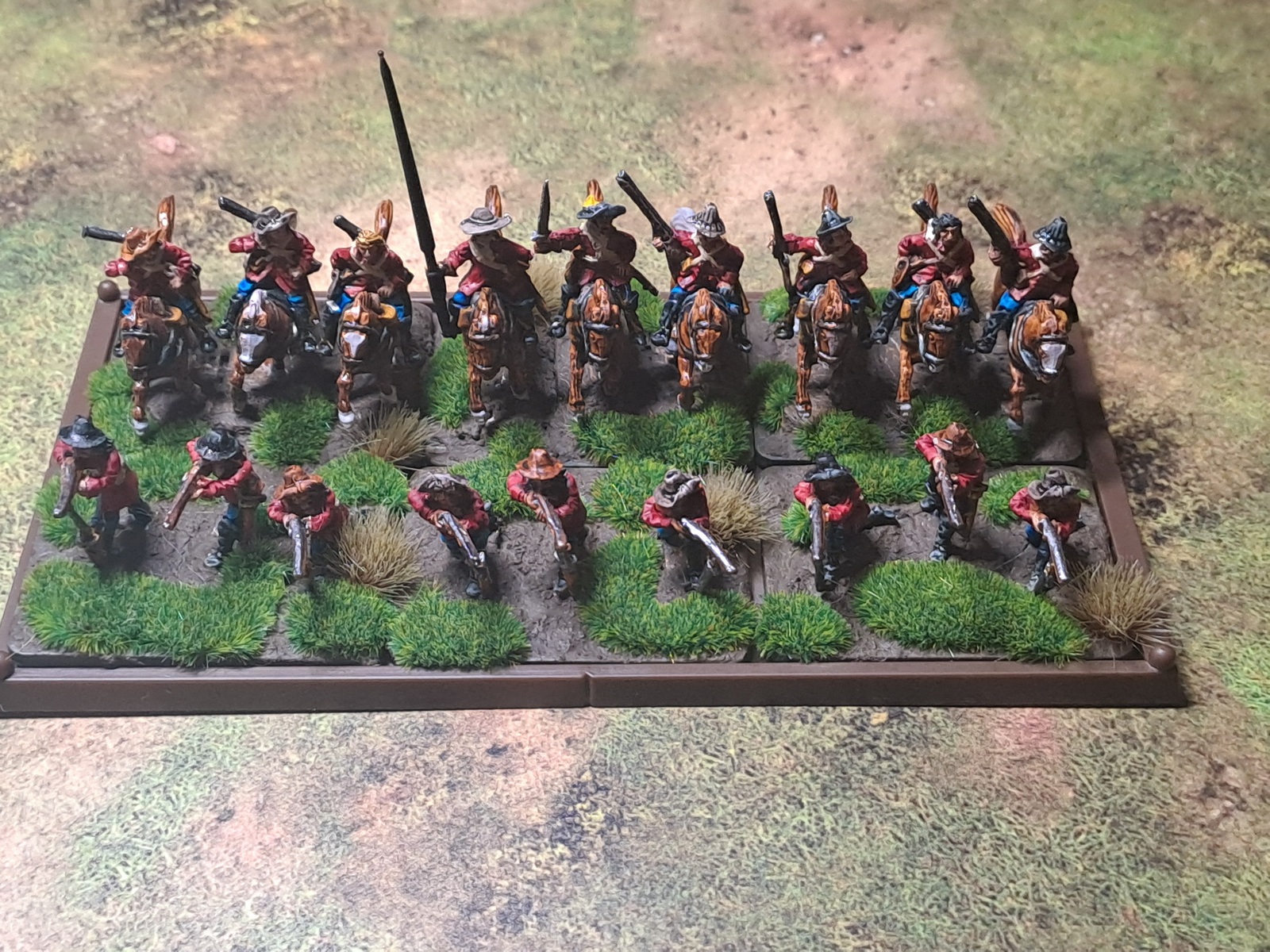 🇵🇱 Wczoraj udało mi się ukończyć pierwszy oddział dragonów do rozpoczętej armii Korony Rzeczypospolitej. Najemni dragoni których będę używał jako polskich, oczywiście kolejny oddział w drodze i są to dragoni którzy byli w zestawie startowym. Póki co oddział jest bez sztandaru, bo żaden z załączonych w pudełku mi do nich nie pasował. Gra „Ogniem i Mieczem” do której są przeznaczone te modele jest wydawana przez polską firmę Wargamer.