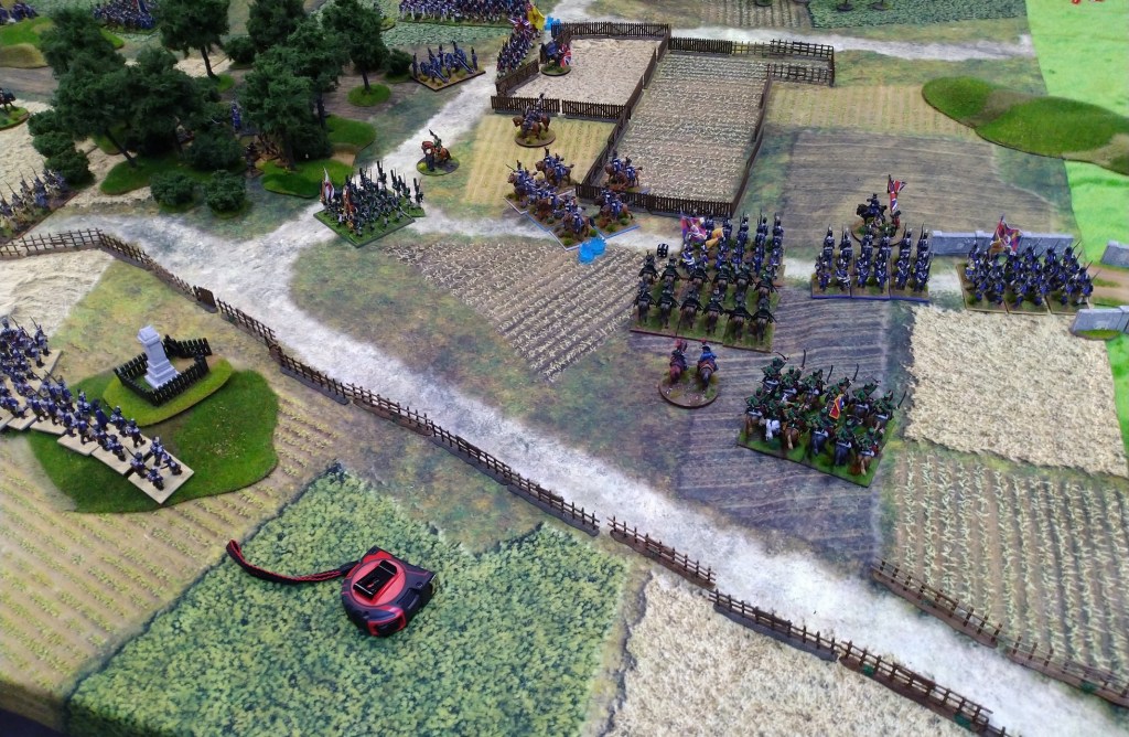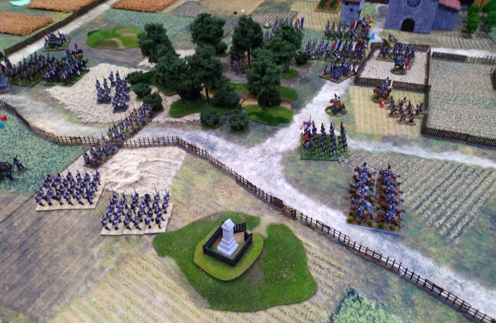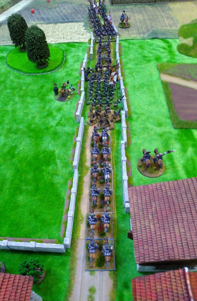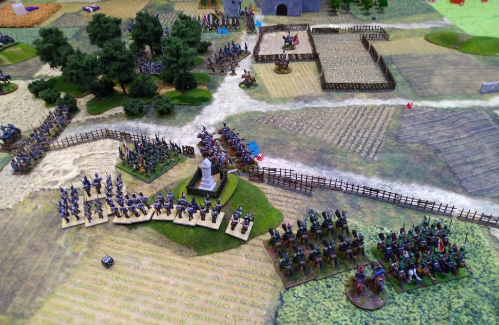 Uhlans charged by Spanish counter charged and won. In the middle Austrians took positions to the front and also left and right flank.