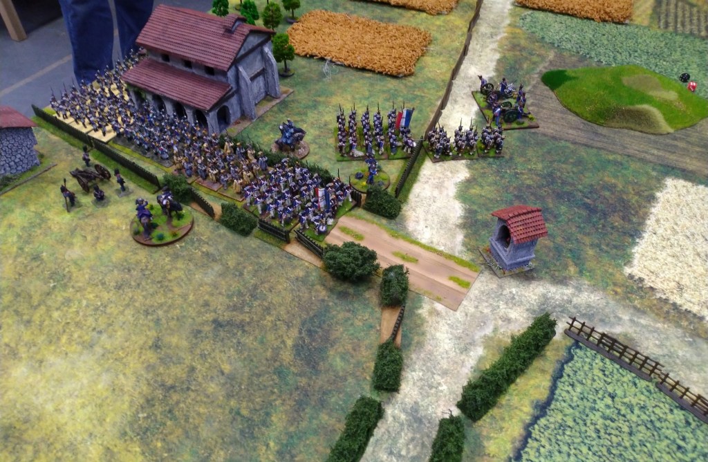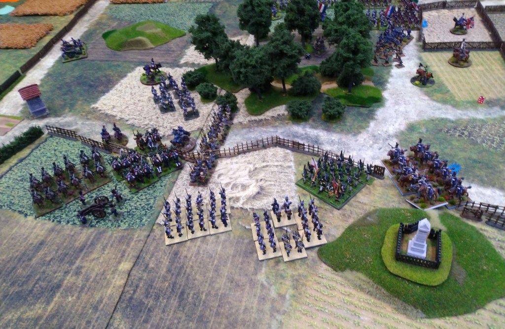 Austrians repelled French cavalry and waiting for infantry. Clash for a bridge going on.
