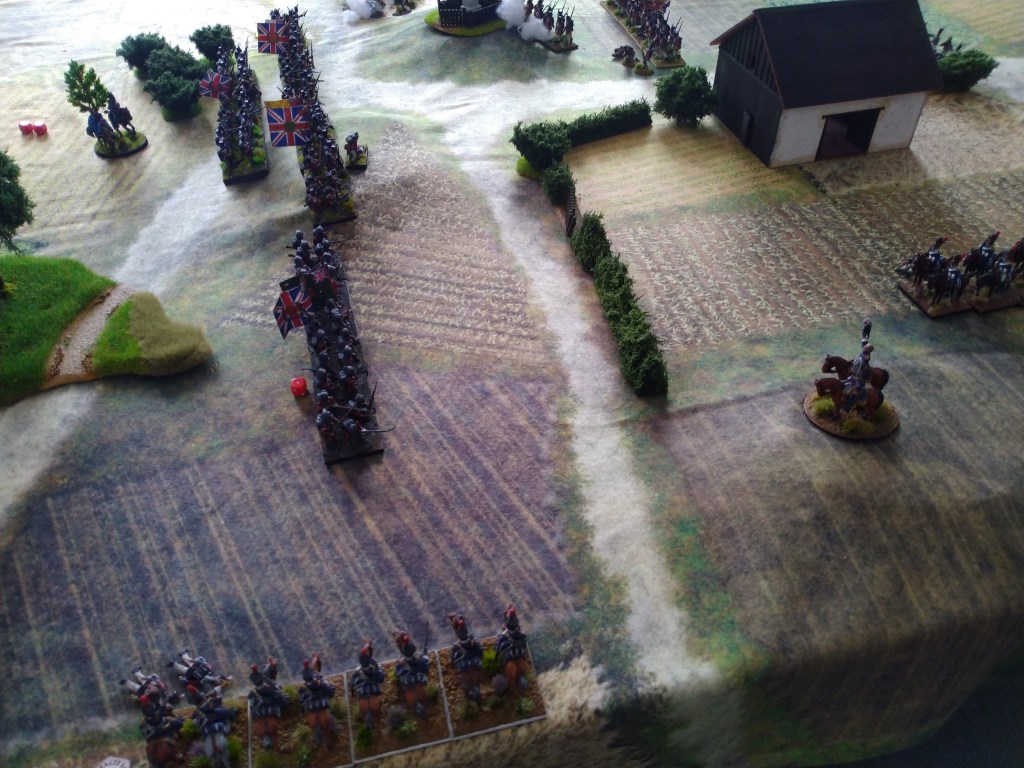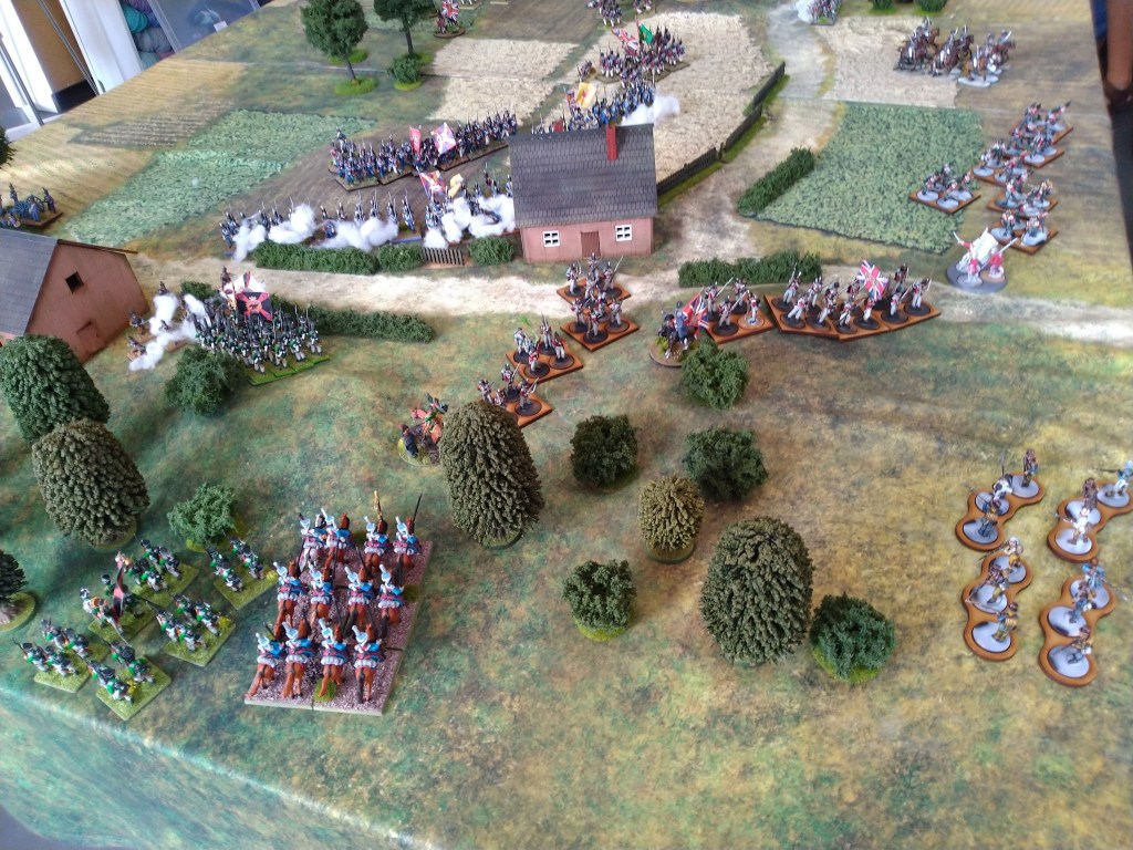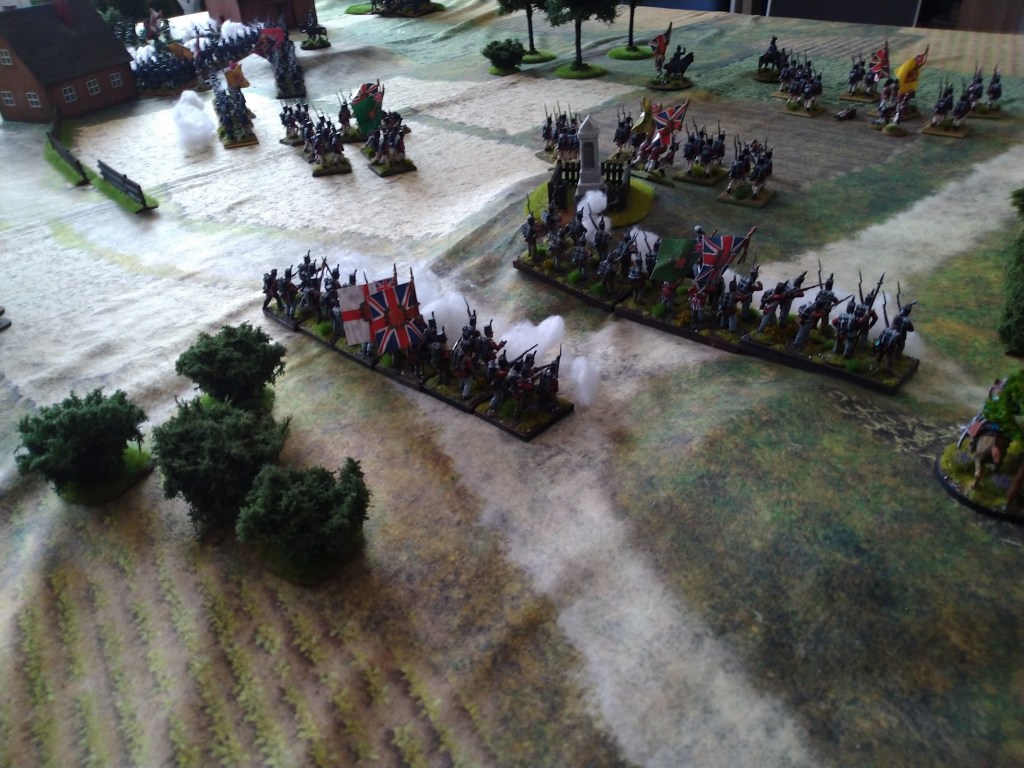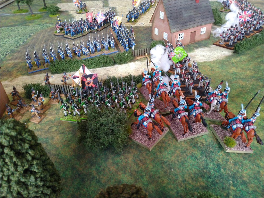 British are coming.British centre.Part of our centre were secured by Russian infantry and Polish Uhlan regiment.Left flank secured by several cavalry regiments.French securing other part of the centre.Prussian took right flank of our combined force.British left flank opposed by Prussians.Battle for a tawern and crossroads.Russian artillery ready to open fire.Chapel – silent deponent of battle.Among British were Portugal regiment.British right flank secured by cavalry and artillery.Close range fire beetwen Russian Jagers and British artillery.British seized defensive position in tavern.Prussians taking positions behind hedgehod.British slowly advancing on left flank.Cavalry charged on British cavalry.British cavalry after short clash turned tail and fled.Polish uhlans in full speed charged British cannon battery…… and in advance galloped toward British sharpshooters.One of the Russian batallions had enough and retreated.British cavalry regrouped into squares.In act of bravery uhlans charged British square.Left flank secured and British reorganized to defend against massed cavalry regiments.