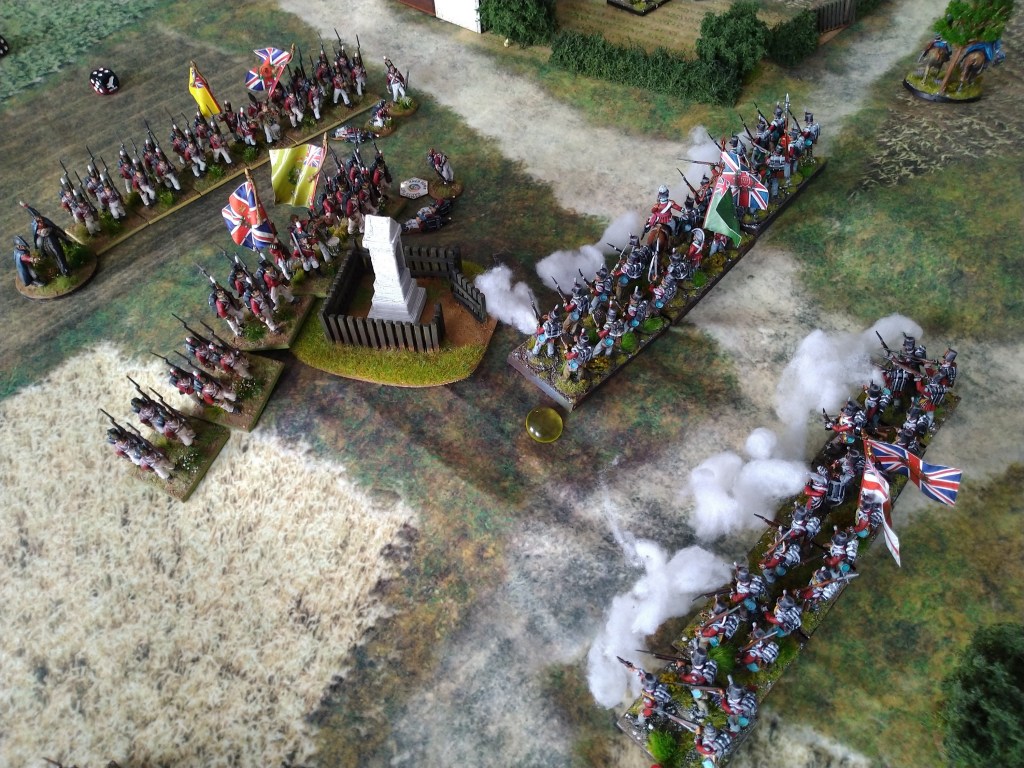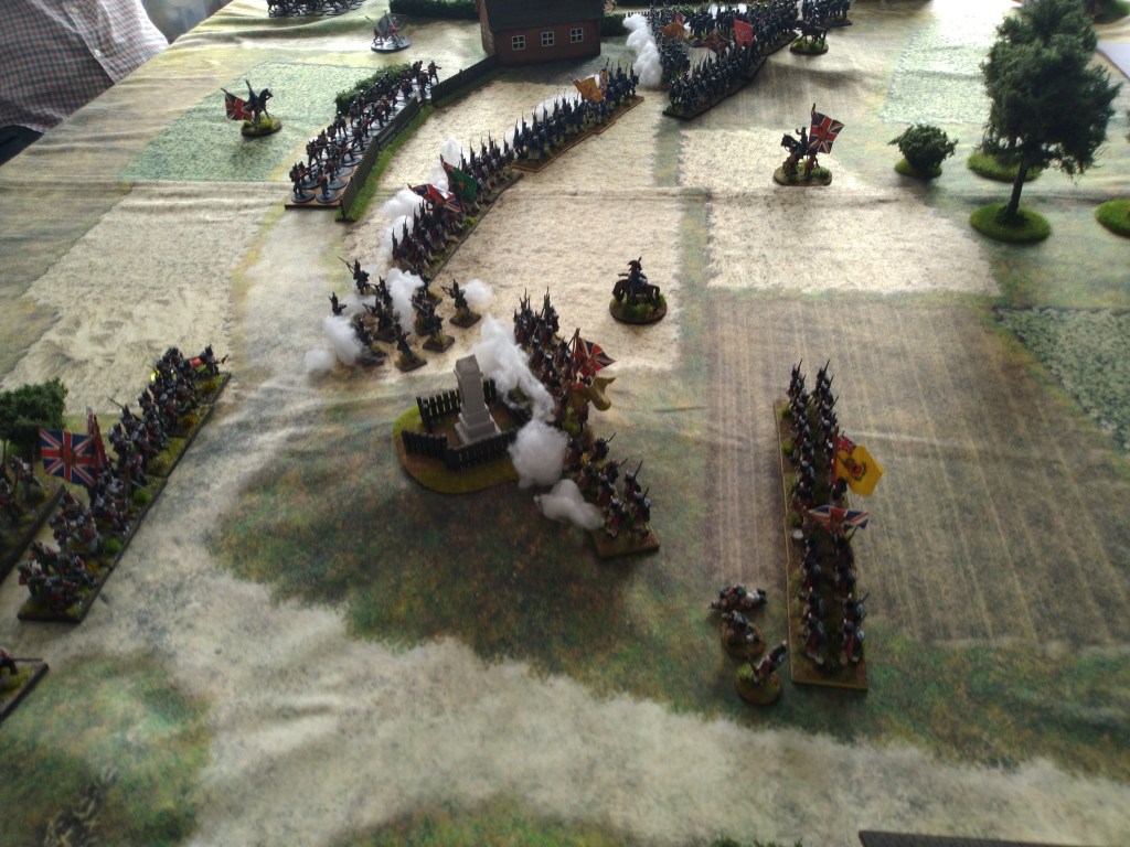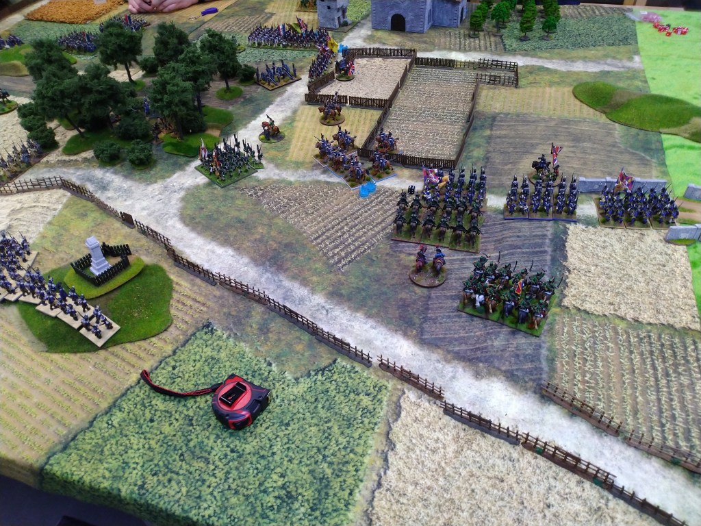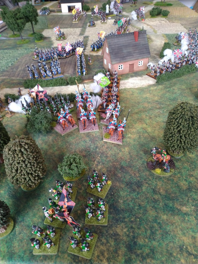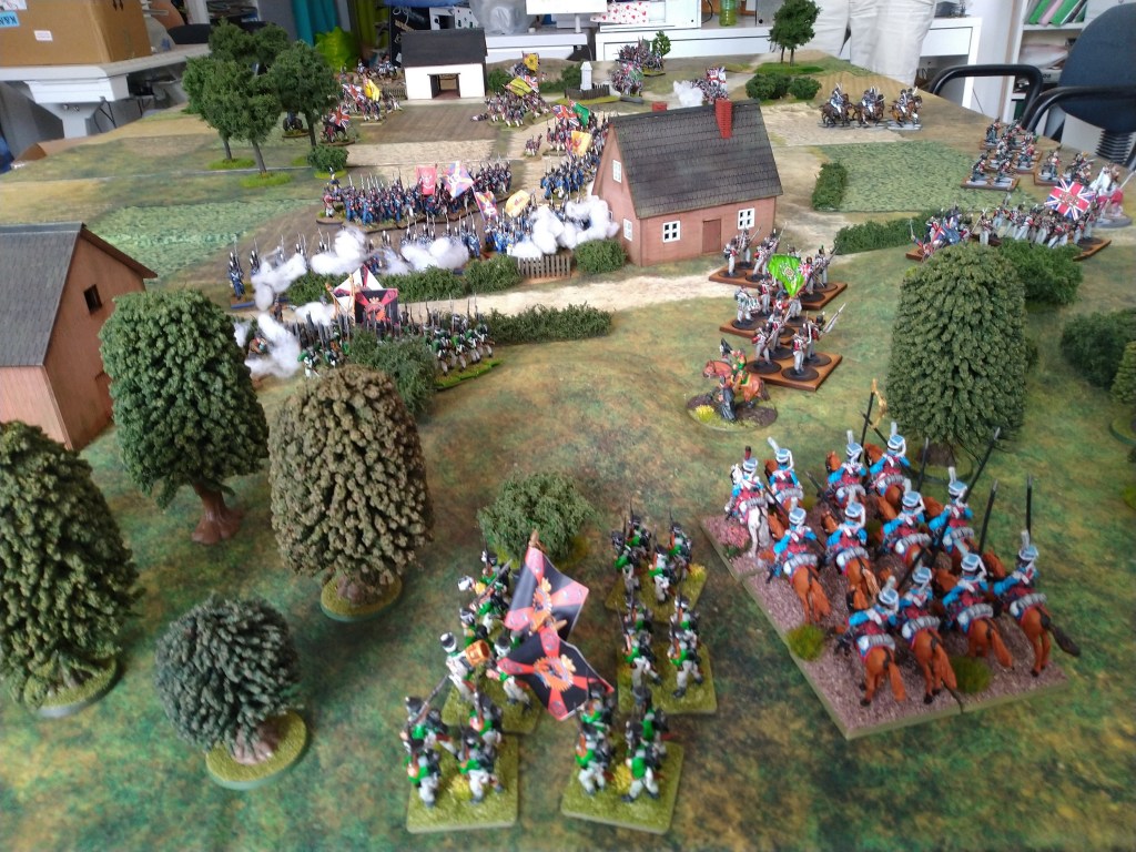 British are coming.British centre.Part of our centre were secured by Russian infantry and Polish Uhlan regiment.Left flank secured by several cavalry regiments.French securing other part of the centre.Prussian took right flank of our combined force.British left flank opposed by Prussians.Battle for a tawern and crossroads.Russian artillery ready to open fire.Chapel – silent deponent of battle.Among British were Portugal regiment.British right flank secured by cavalry and artillery.Close range fire beetwen Russian Jagers and British artillery.British seized defensive position in tavern.Prussians taking positions behind hedgehod.British slowly advancing on left flank.Cavalry charged on British cavalry.British cavalry after short clash turned tail and fled.Polish uhlans in full speed charged British cannon battery…… and in advance galloped toward British sharpshooters.One of the Russian batallions had enough and retreated.British cavalry regrouped into squares.In act of bravery uhlans charged British square.Left flank secured and British reorganized to defend against massed cavalry regiments.