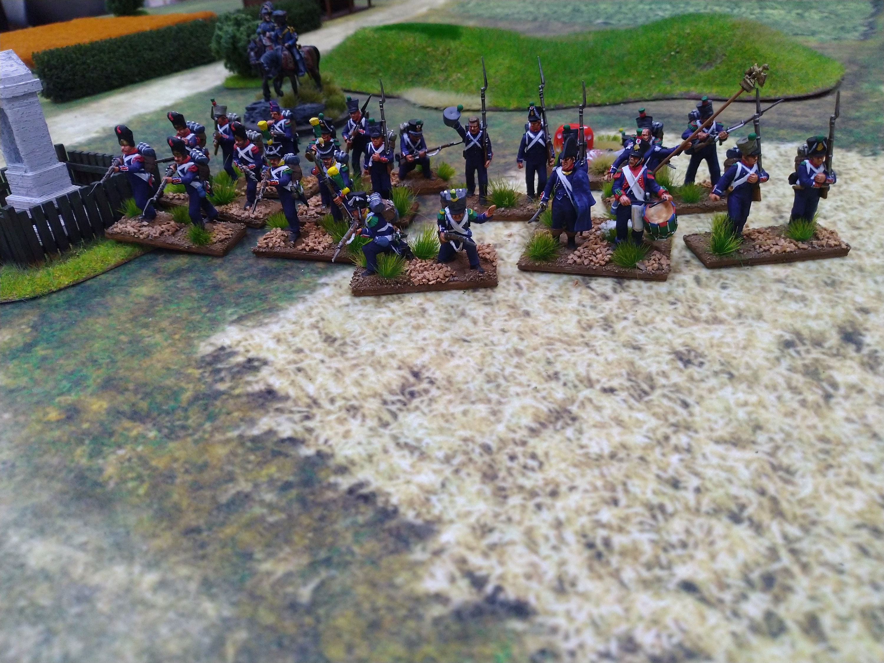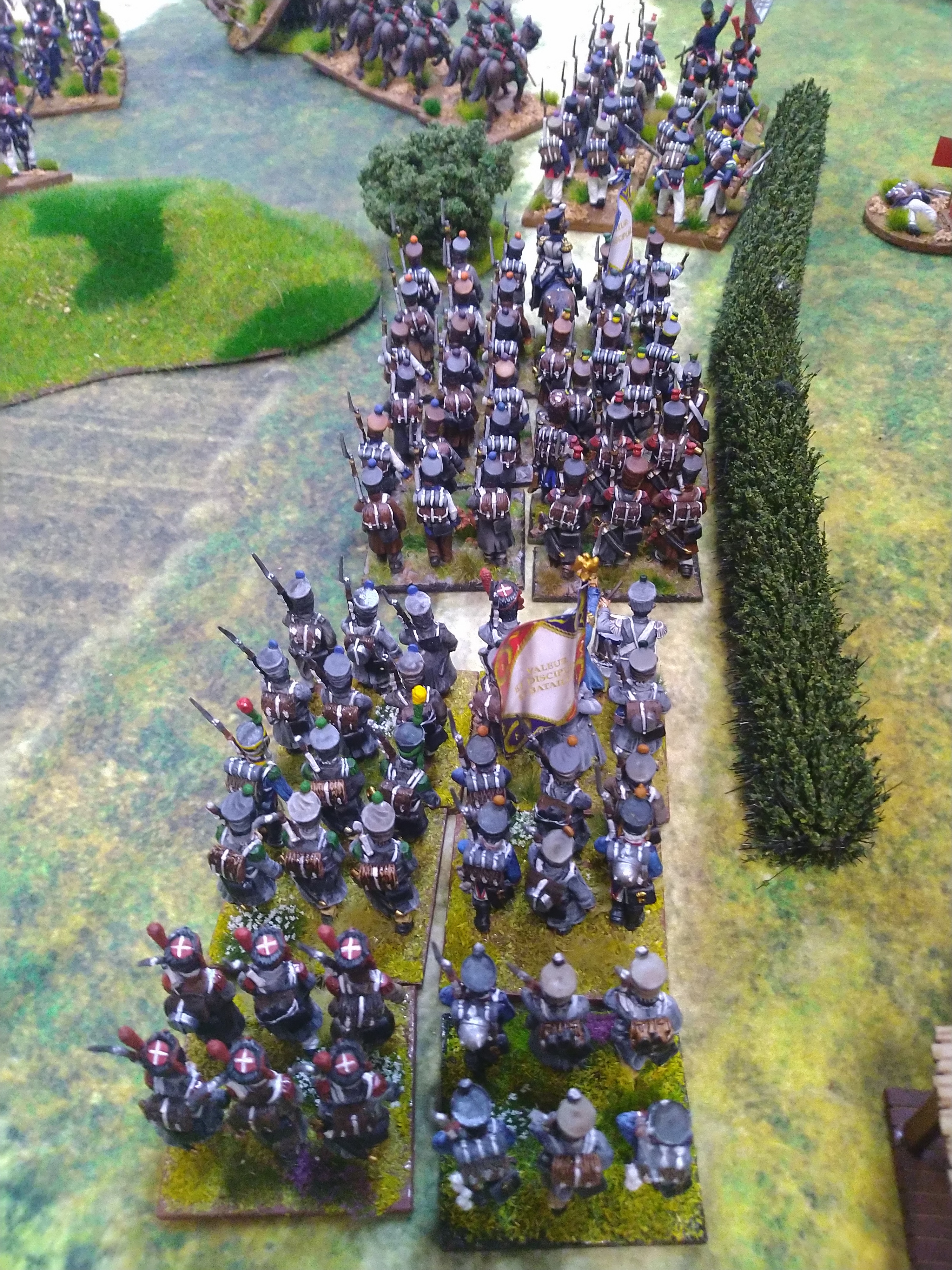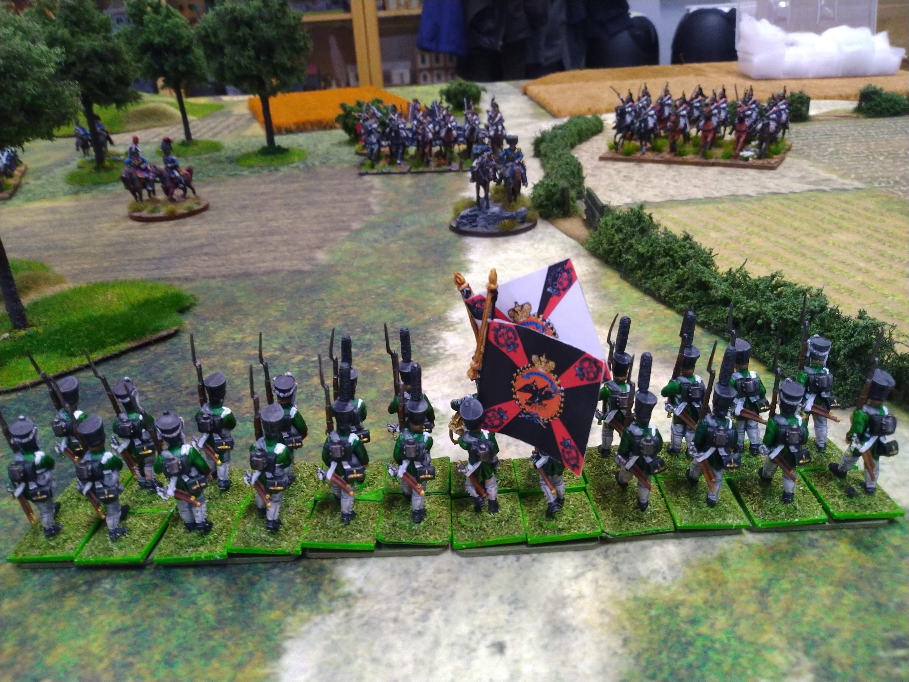 Russians in the column. Rosjanie w kolumnie marszowej.French and Polish line. Francuska i Polska linia.Prussians waiting for some more paint. Prusacy czekający na więcej farby.Russians and Polish Uhlans held flank. Rosjanie i Polscy ułani utrzymali skrzydło.