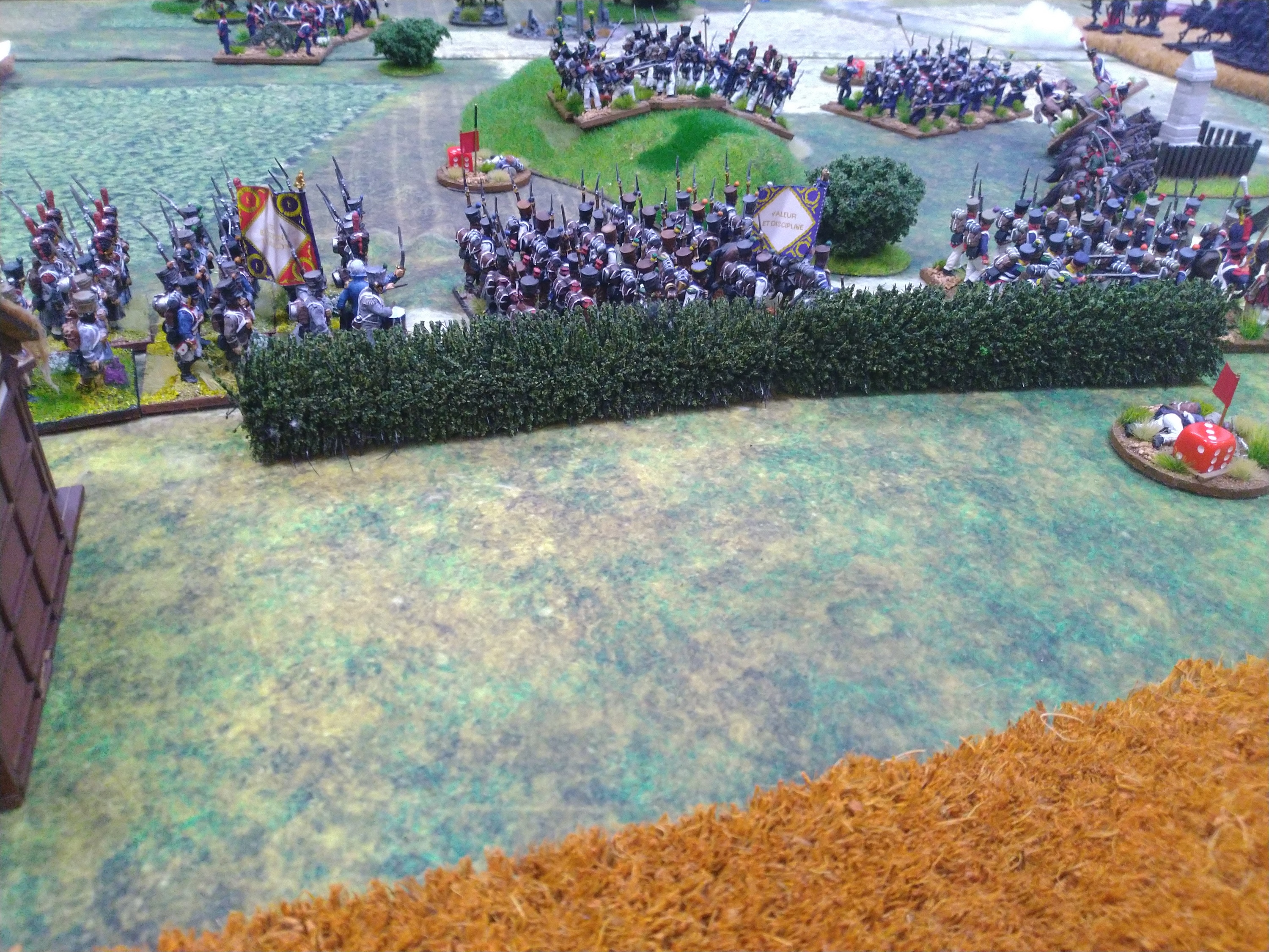 Adams Polish Vistula Legion.Russians advance to take enemy guns.French column during march.All on one. Single Russian battalion stood they ground.French cavalry ride on the British wing.Russians battalions marched on the left and right with artillery support.French cavalry charged on Russian artillery.Artillerist runned away for they lives.Some hand to hand combat in the middle.I thought it’s the end of my batallion, but…… but it was end of one French unit which turn it tail and fled.
