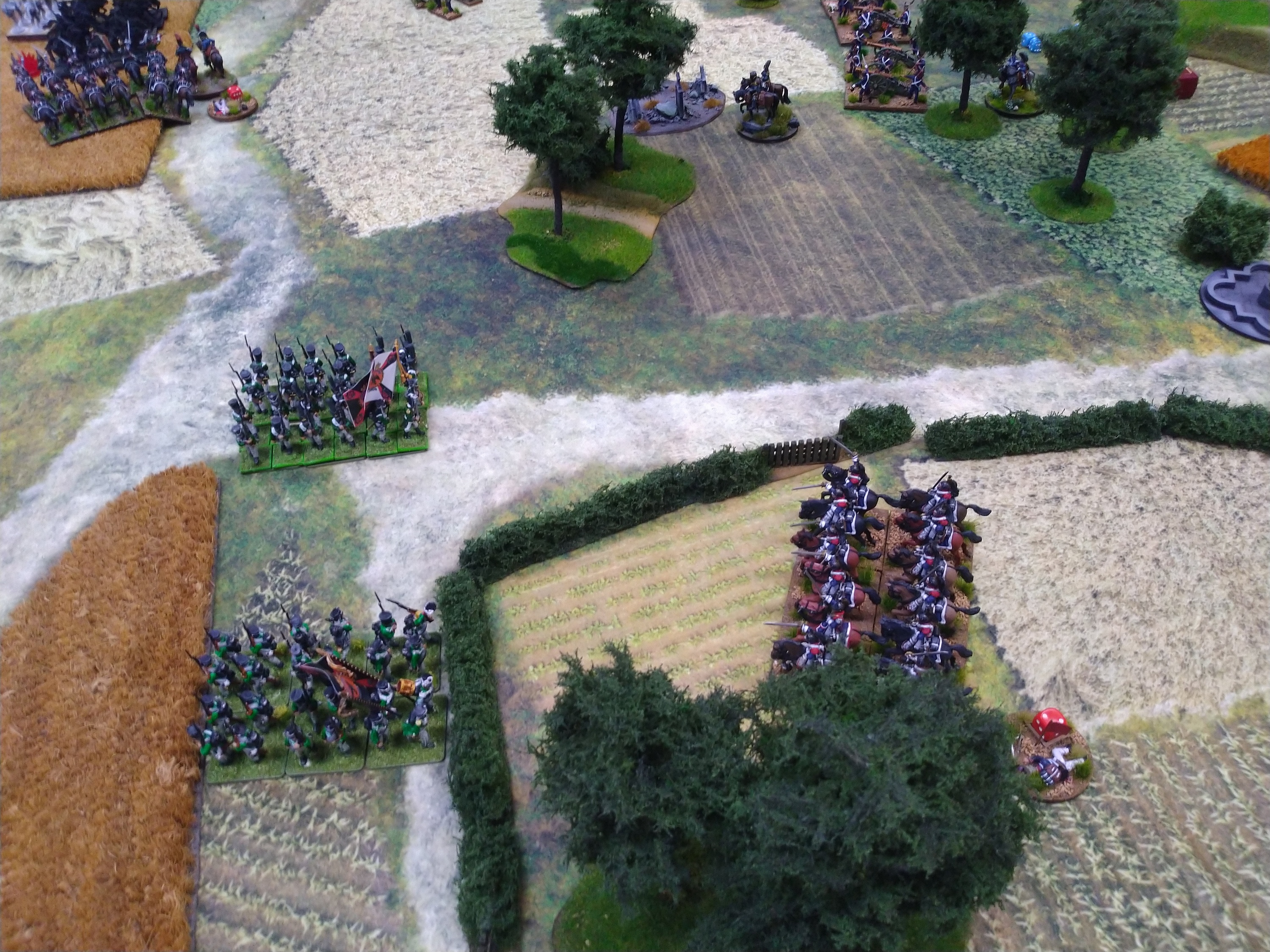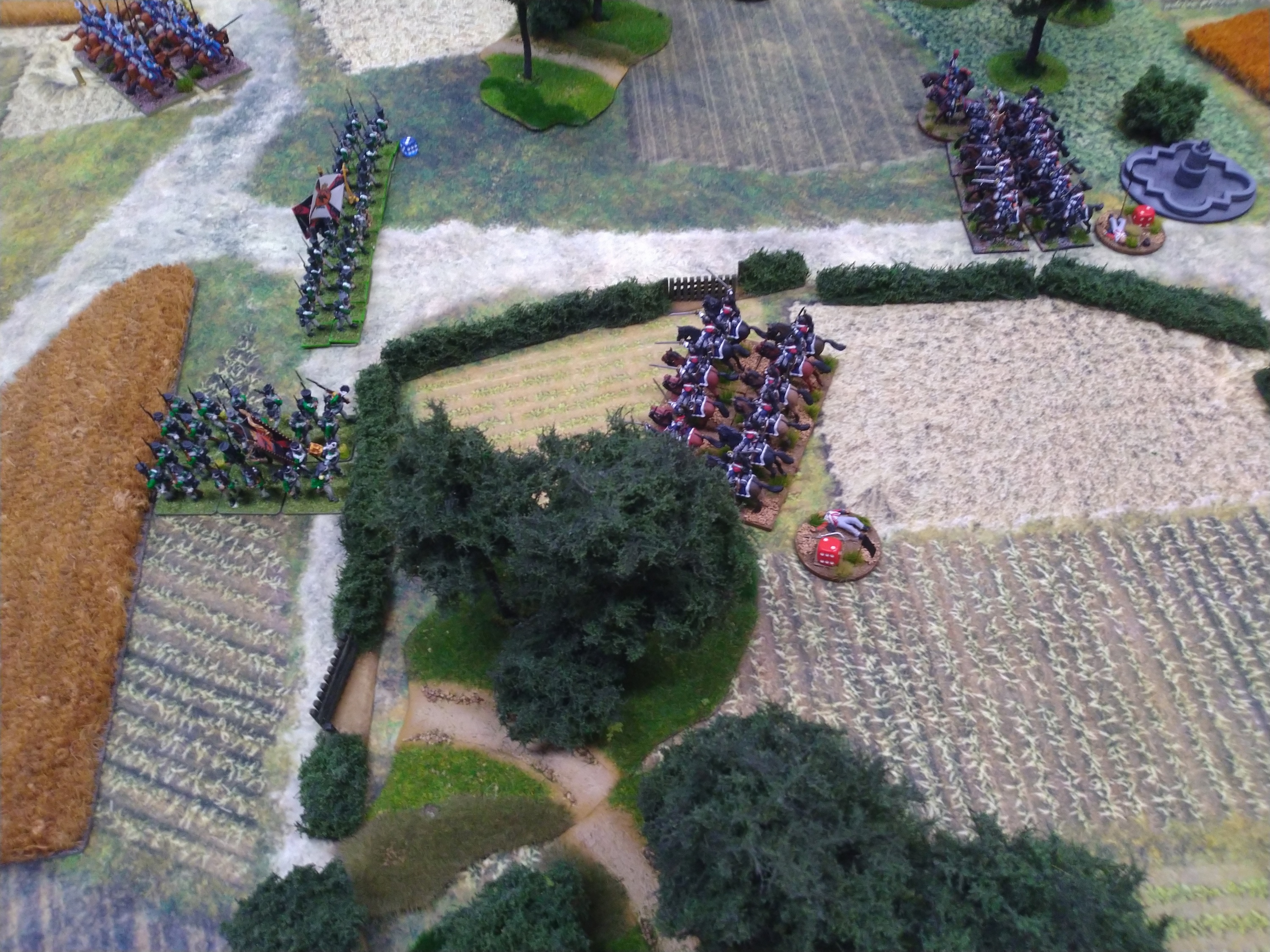 Part of the table we hasn’t used.Cavalry charges, Polish Uhlans in Tzar service vs Prussian HussarsLancers broken in combat.