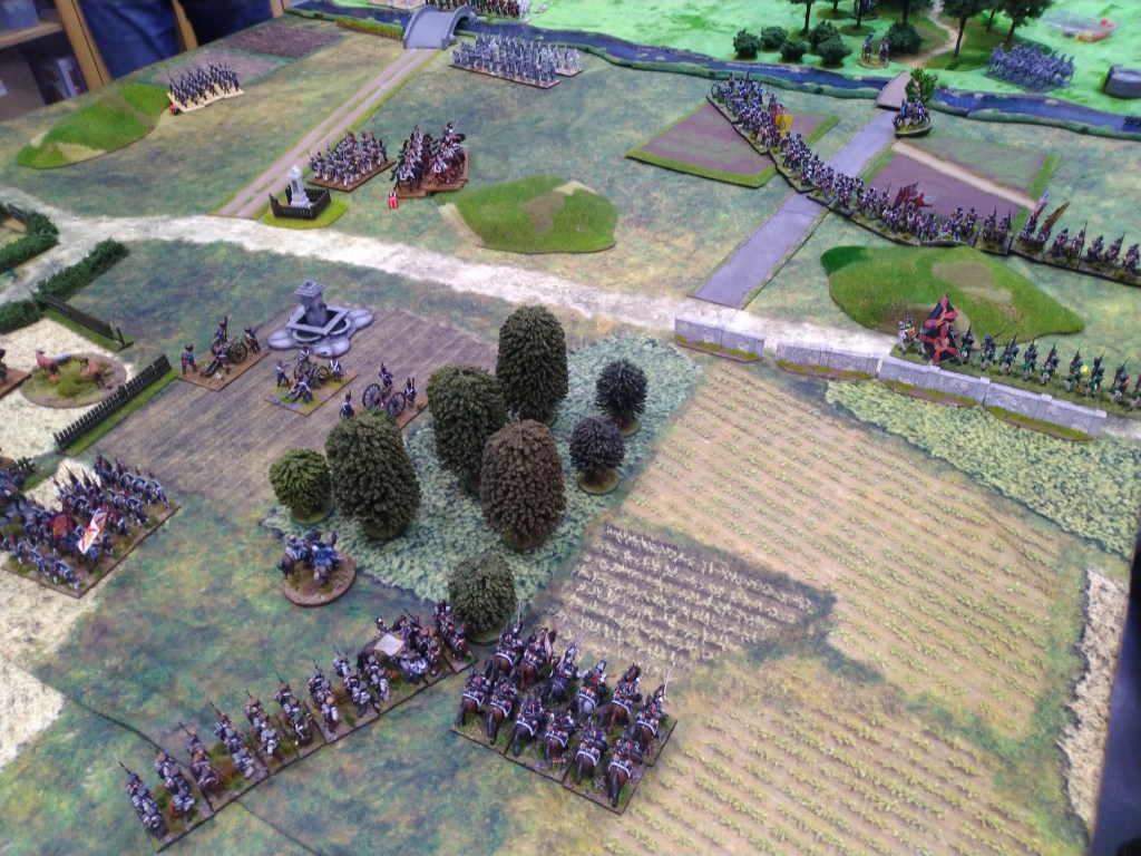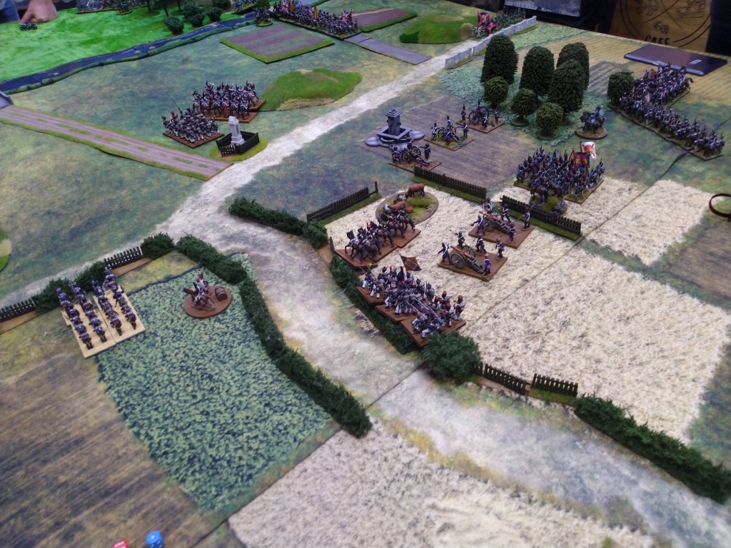 Today we played our monthly game in General d’Armee – there were only three of us, me, my ally Rafał and Tomek who took opposite side. We had four brigades per side – three infantry brigades and one cavalry, both sides had two batteries of guns attached to infantry batallions.