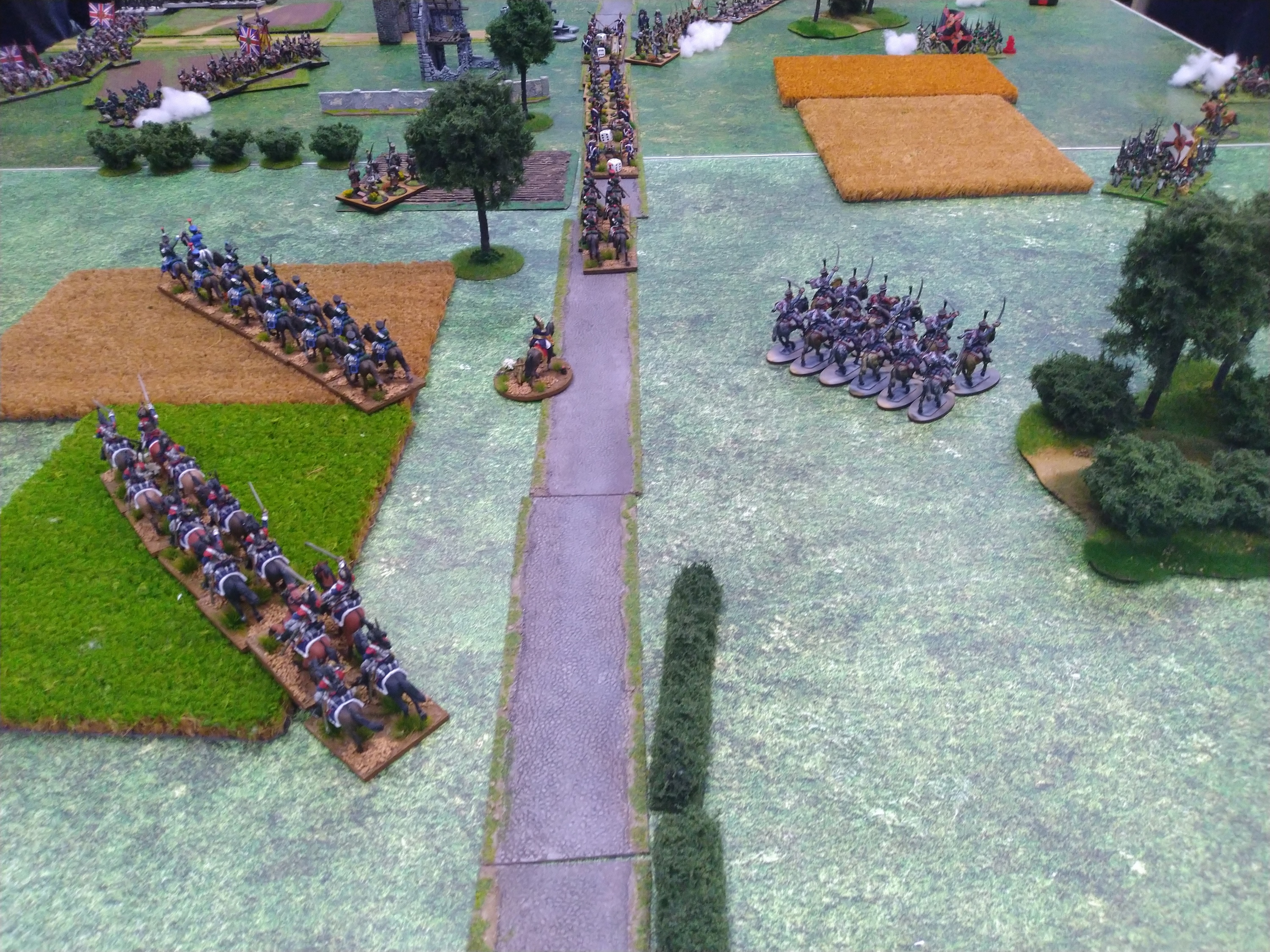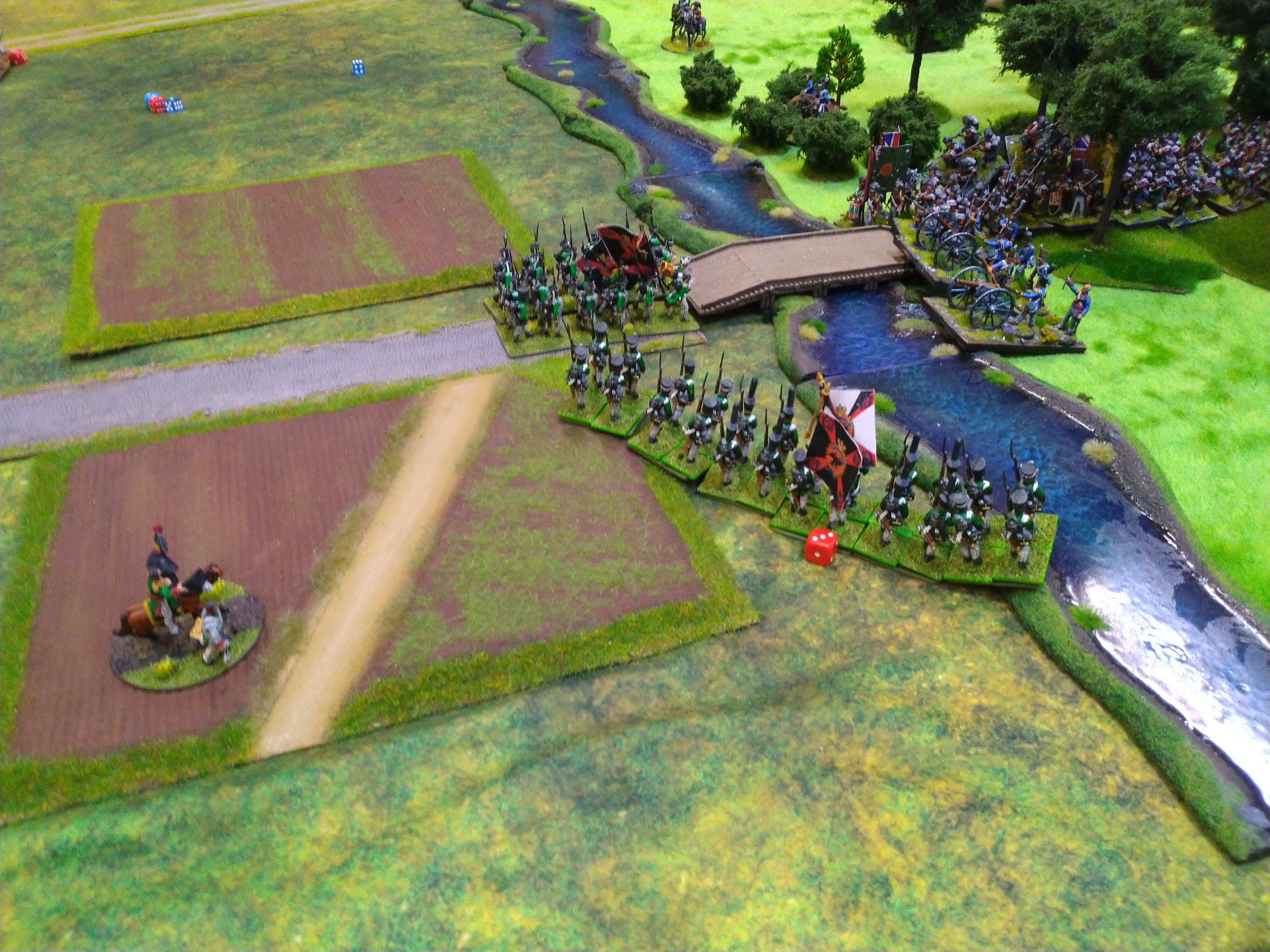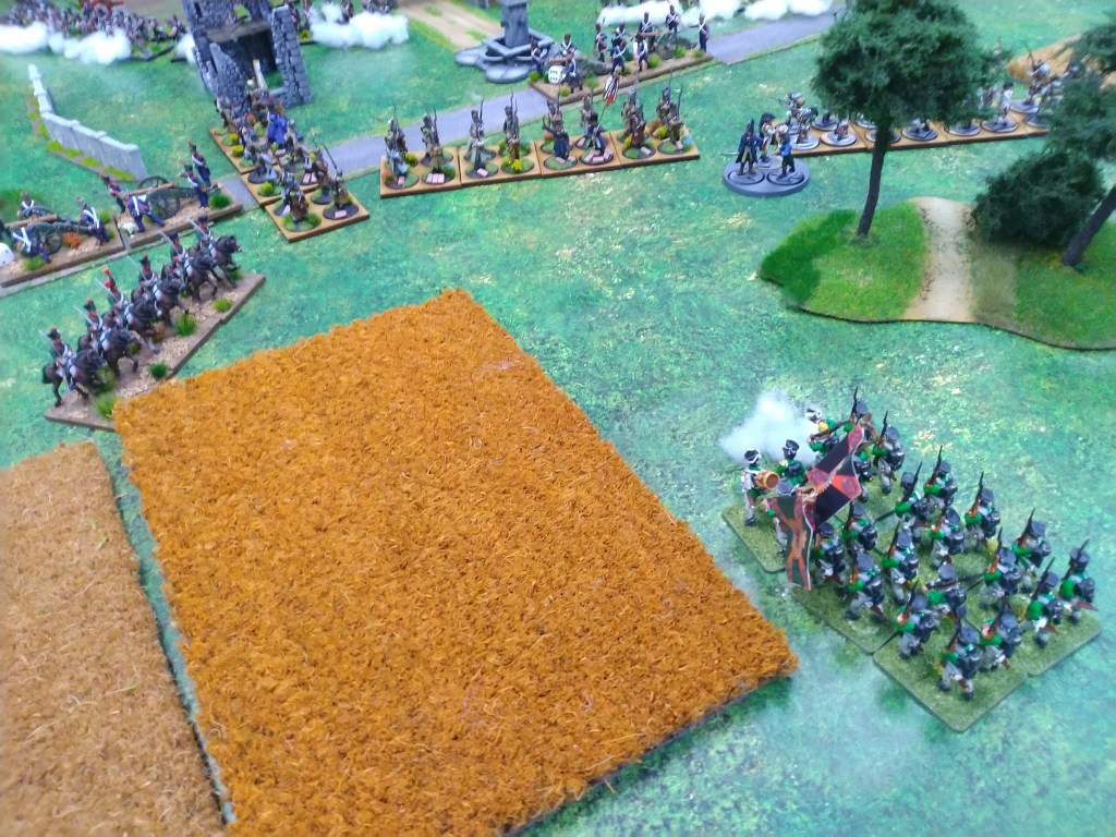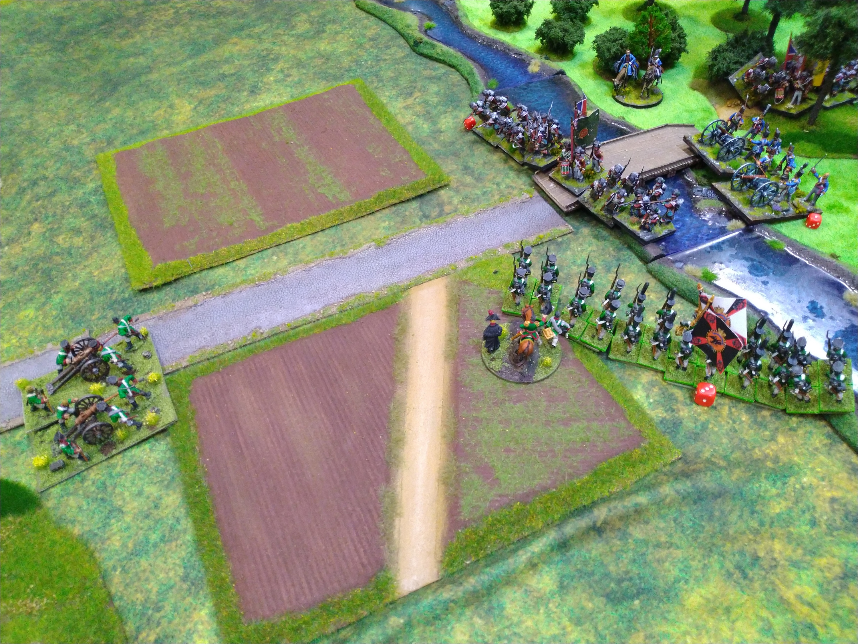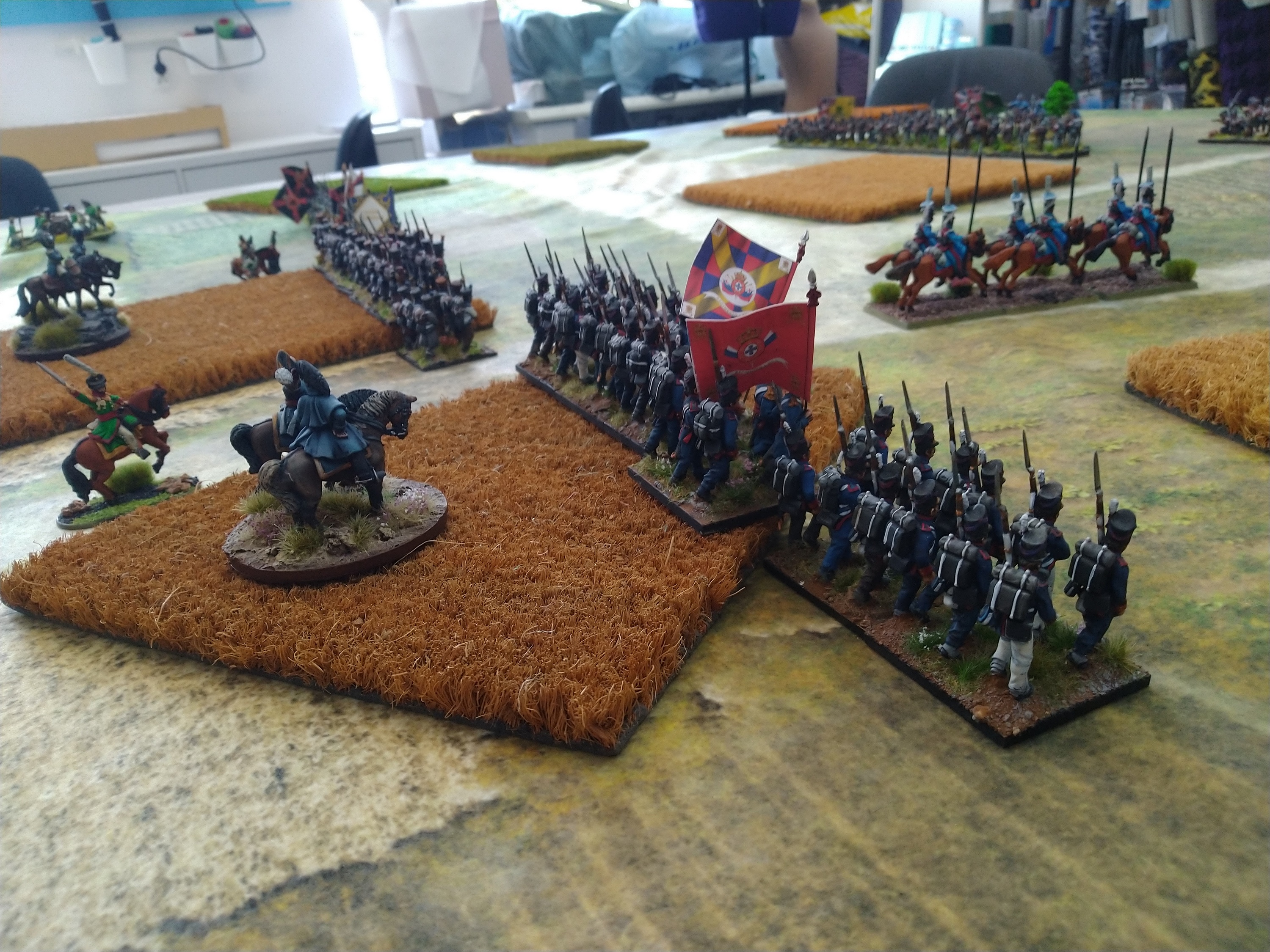 Adams Polish Vistula Legion.Russians advance to take enemy guns.French column during march.All on one. Single Russian battalion stood they ground.French cavalry ride on the British wing.Russians battalions marched on the left and right with artillery support.French cavalry charged on Russian artillery.Artillerist runned away for they lives.Some hand to hand combat in the middle.I thought it’s the end of my batallion, but…… but it was end of one French unit which turn it tail and fled.
