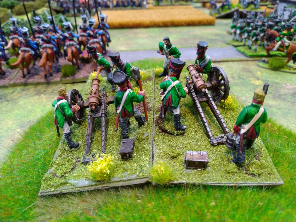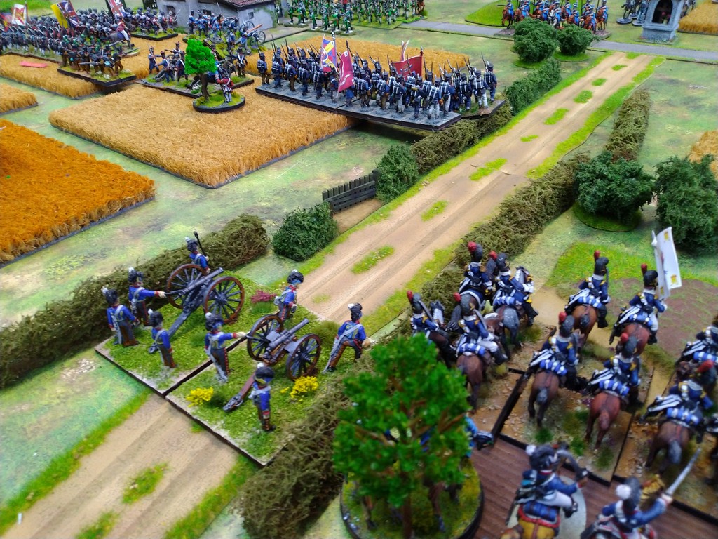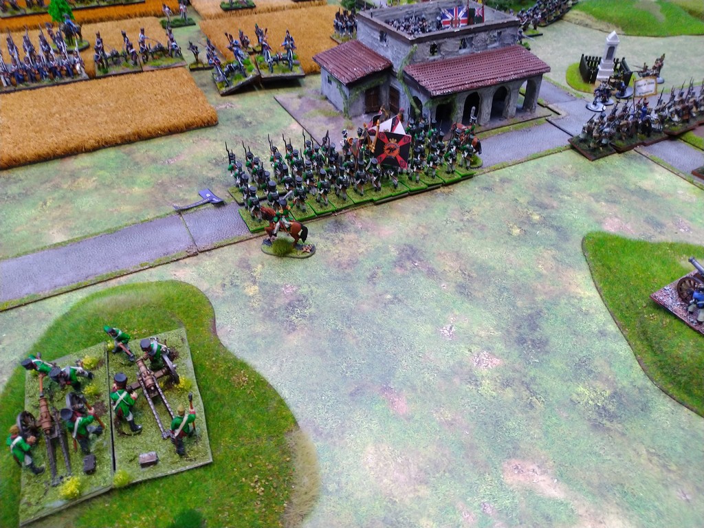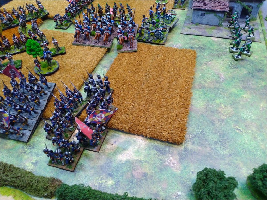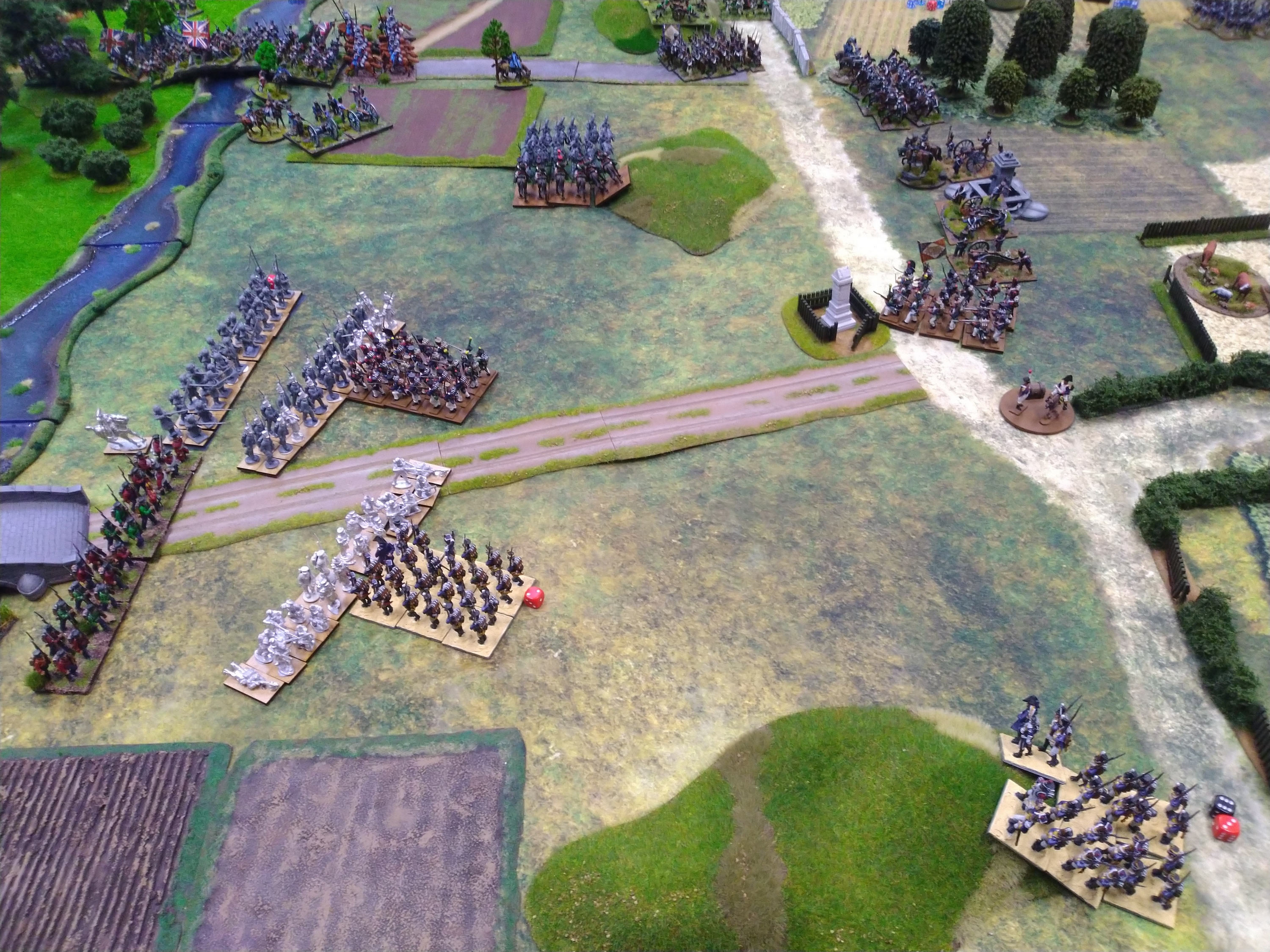 Adams Polish Vistula Legion.Russians advance to take enemy guns.French column during march.All on one. Single Russian battalion stood they ground.French cavalry ride on the British wing.Russians battalions marched on the left and right with artillery support.French cavalry charged on Russian artillery.Artillerist runned away for they lives.Some hand to hand combat in the middle.I thought it’s the end of my batallion, but…… but it was end of one French unit which turn it tail and fled.