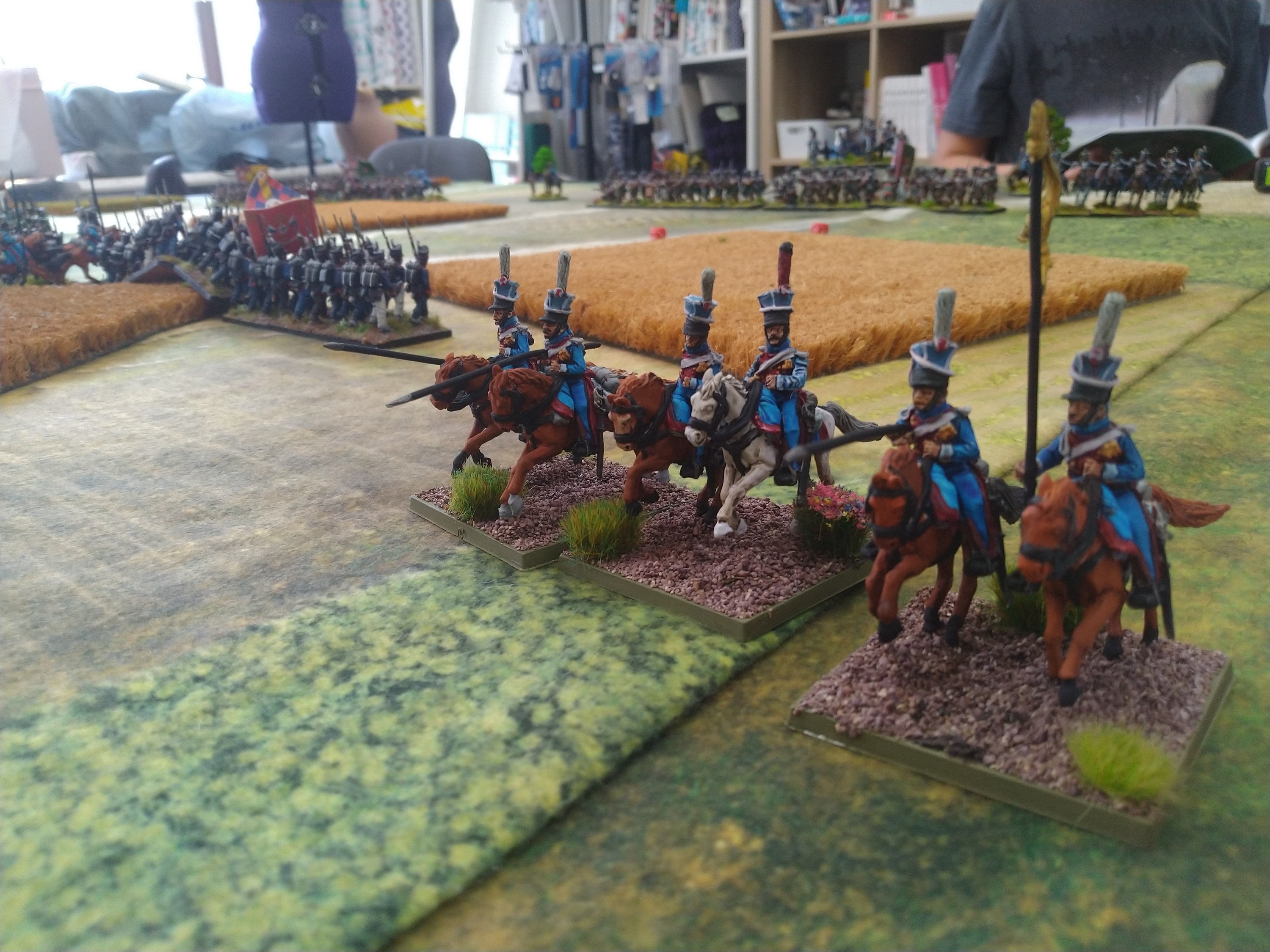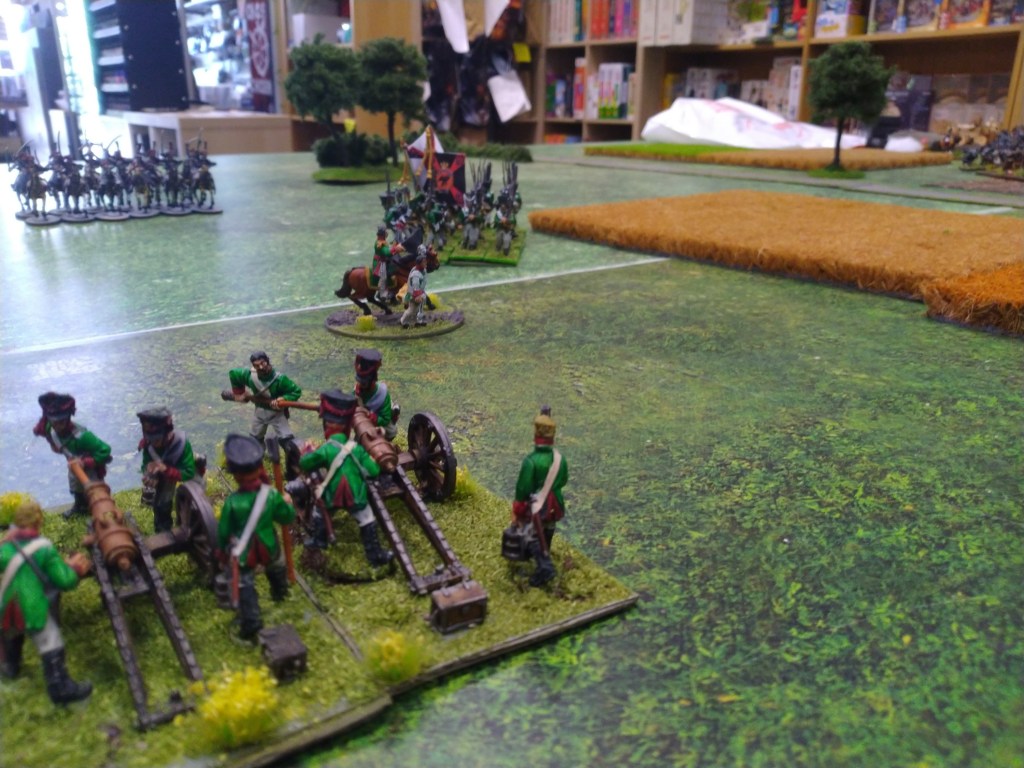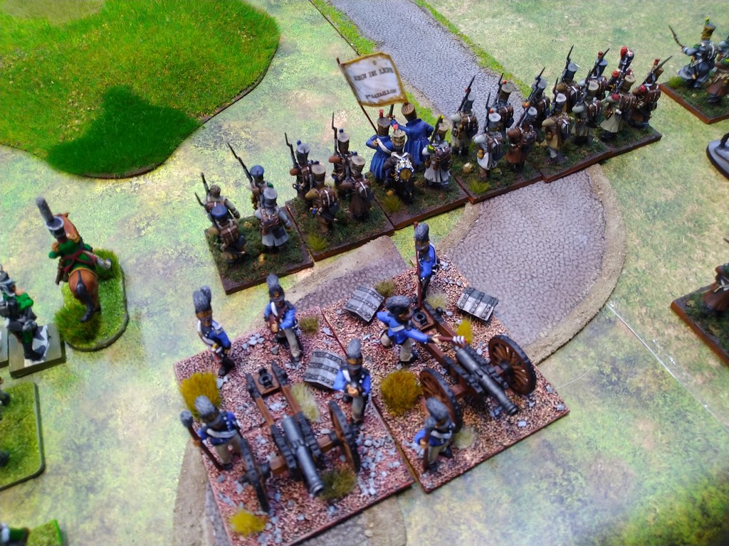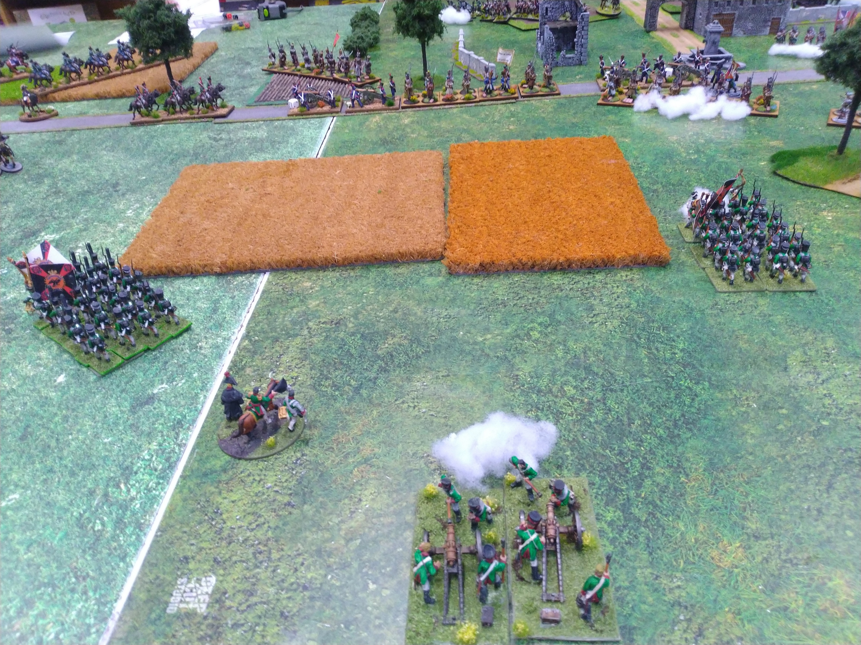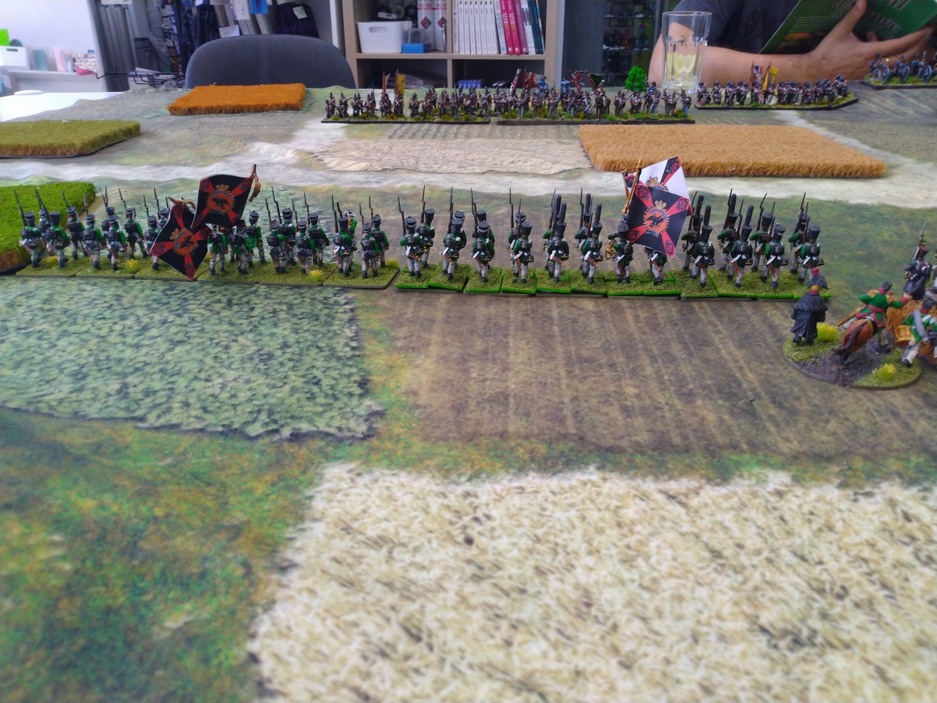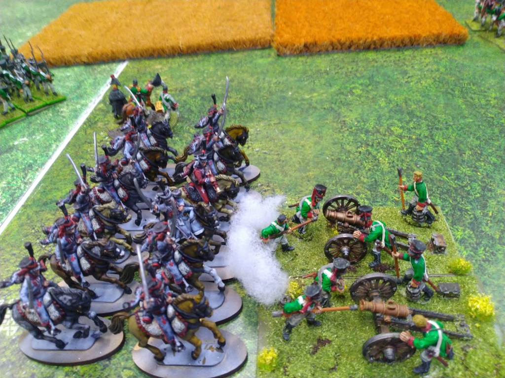 Adams Polish Vistula Legion.Russians advance to take enemy guns.French column during march.All on one. Single Russian battalion stood they ground.French cavalry ride on the British wing.Russians battalions marched on the left and right with artillery support.French cavalry charged on Russian artillery.Artillerist runned away for they lives.Some hand to hand combat in the middle.I thought it’s the end of my batallion, but…… but it was end of one French unit which turn it tail and fled.