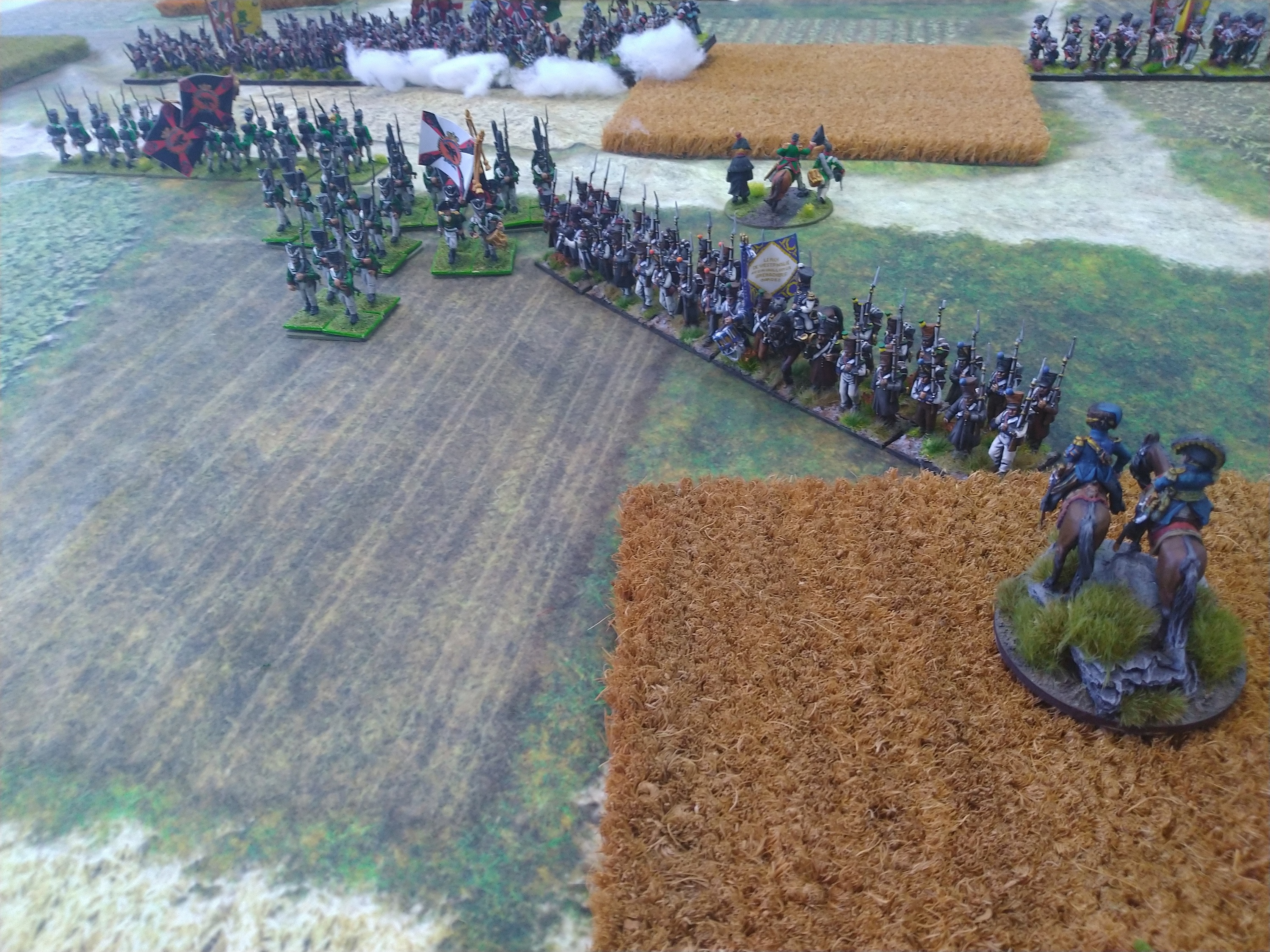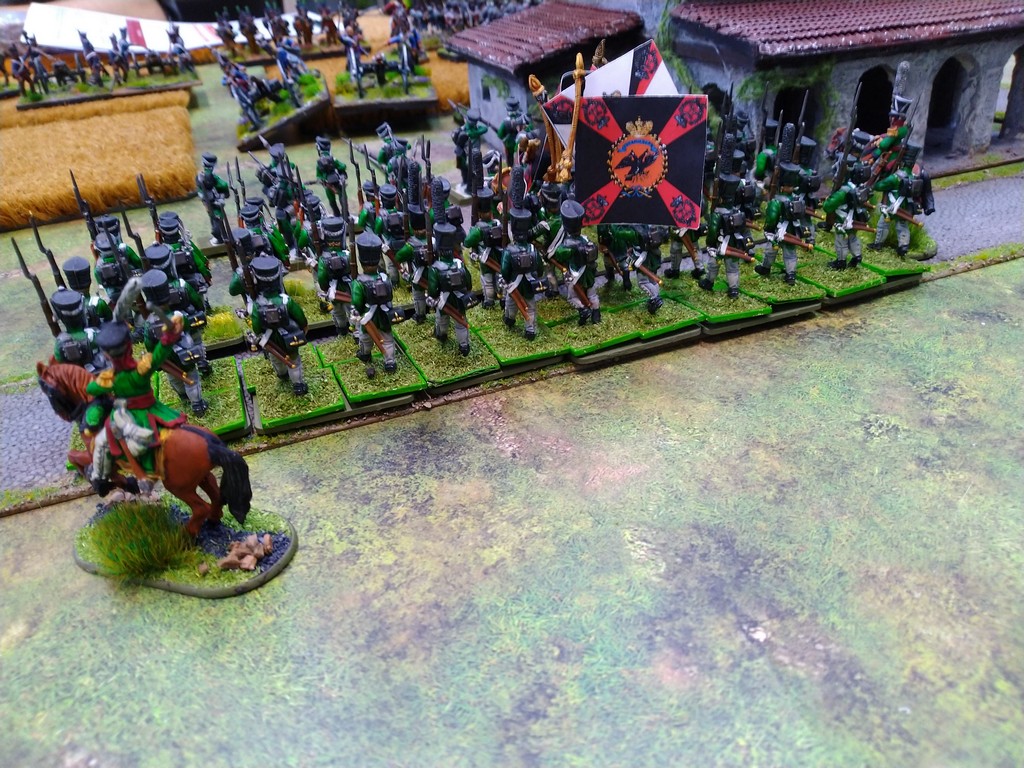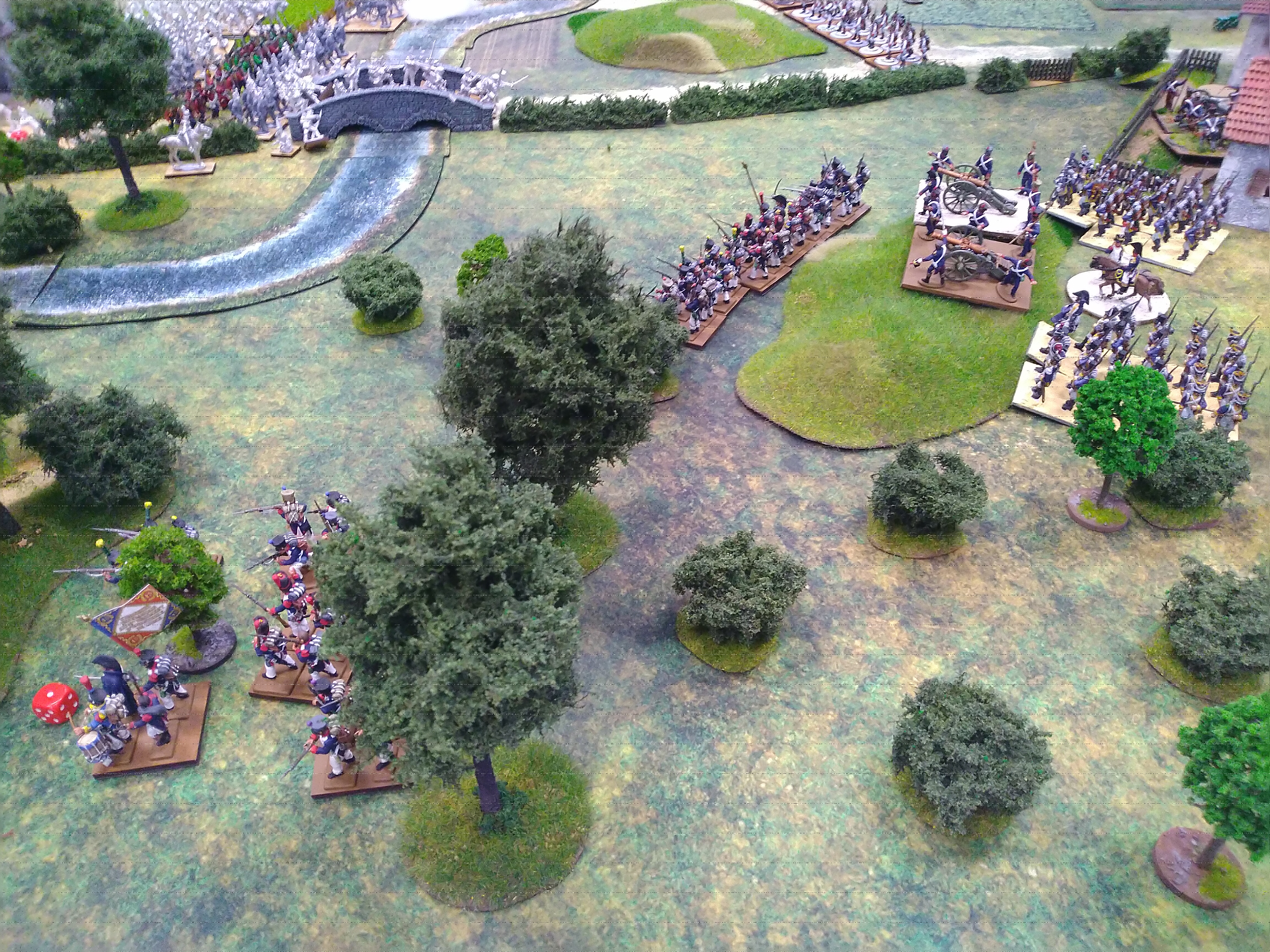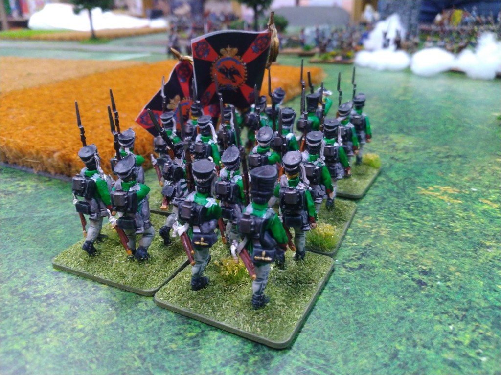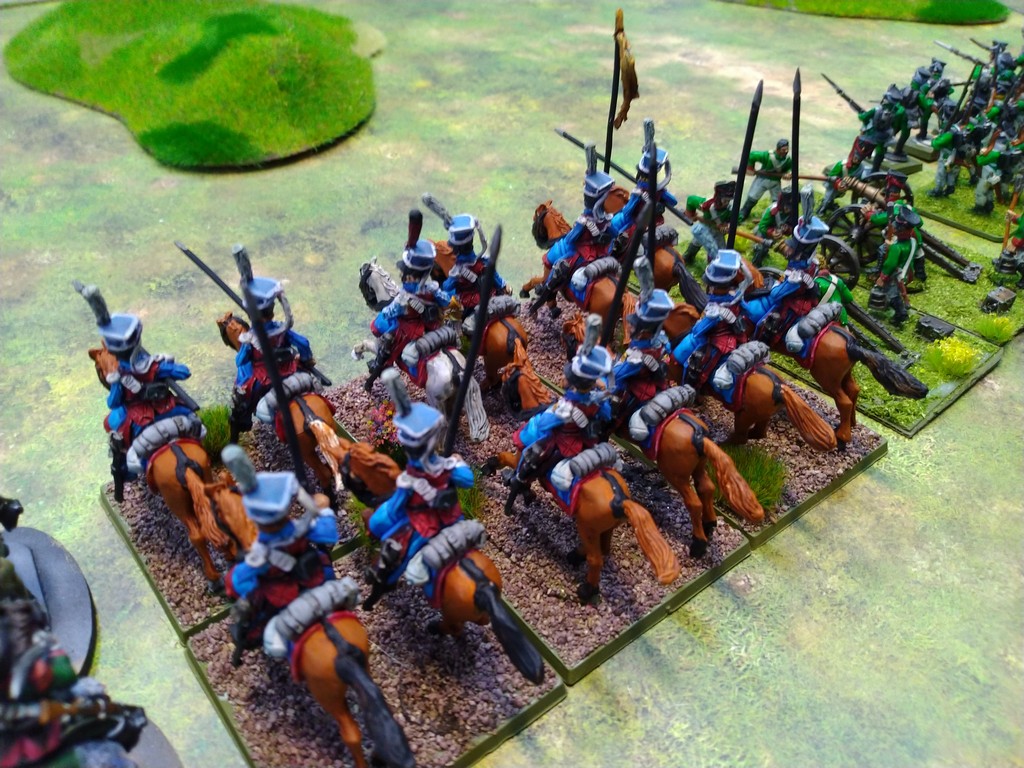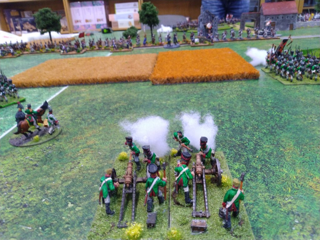 Adams Polish Vistula Legion.Russians advance to take enemy guns.French column during march.All on one. Single Russian battalion stood they ground.French cavalry ride on the British wing.Russians battalions marched on the left and right with artillery support.French cavalry charged on Russian artillery.Artillerist runned away for they lives.Some hand to hand combat in the middle.I thought it’s the end of my batallion, but…… but it was end of one French unit which turn it tail and fled.