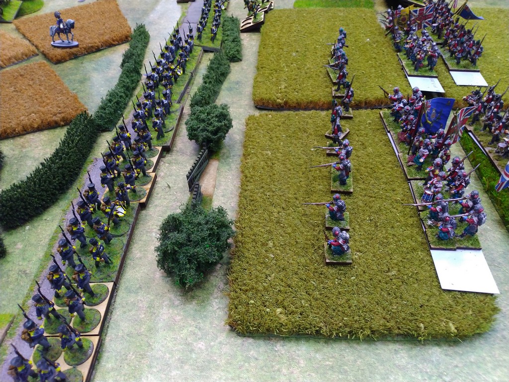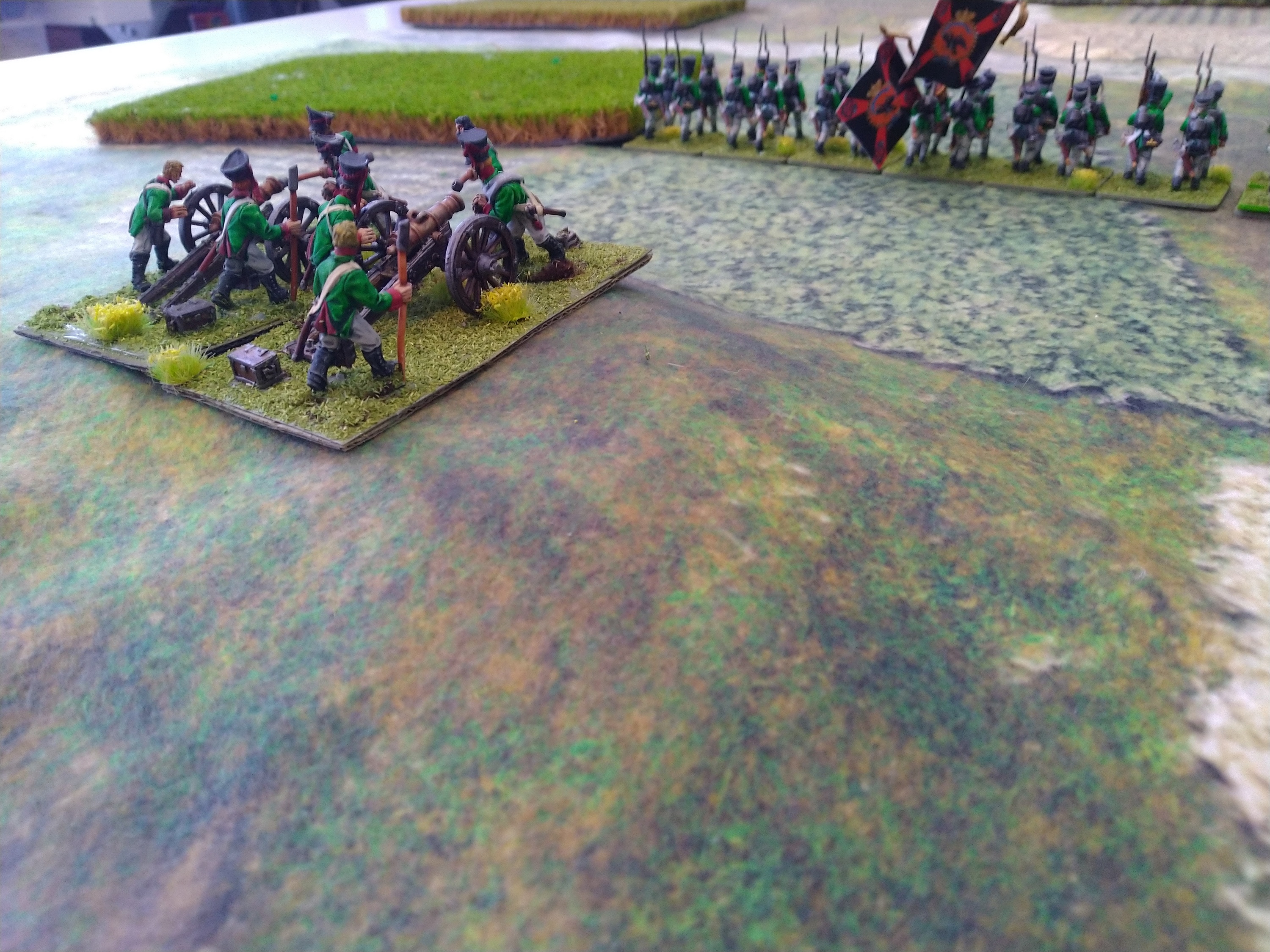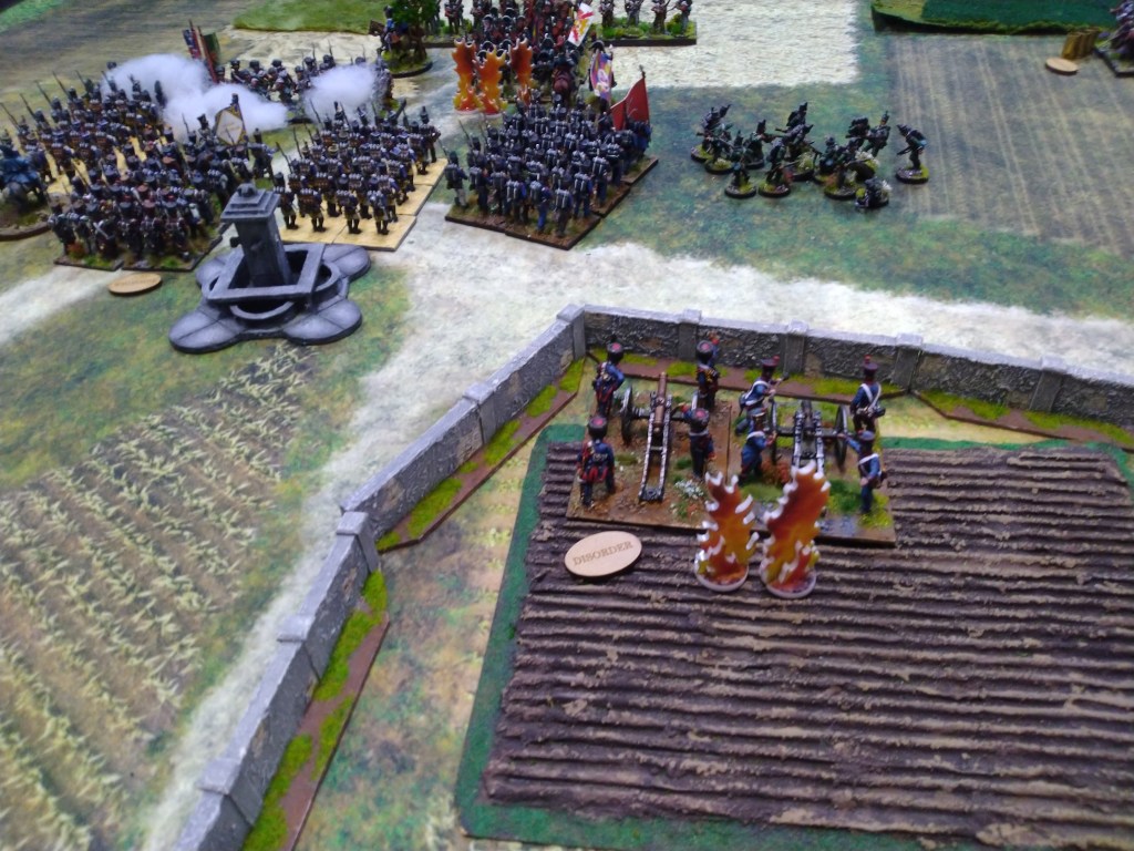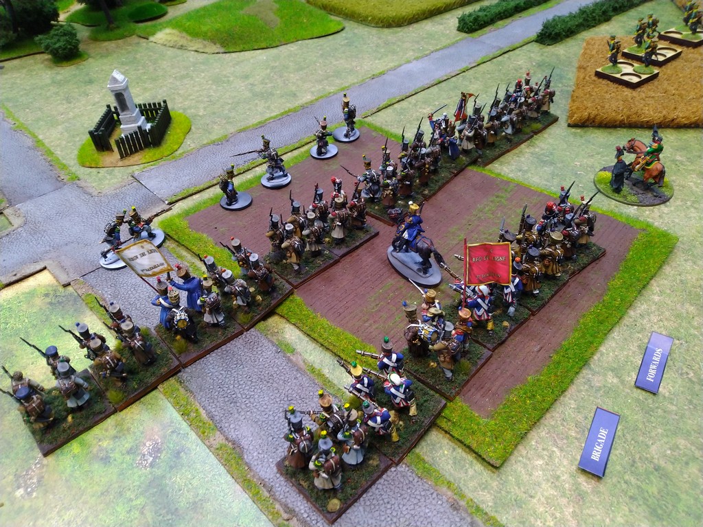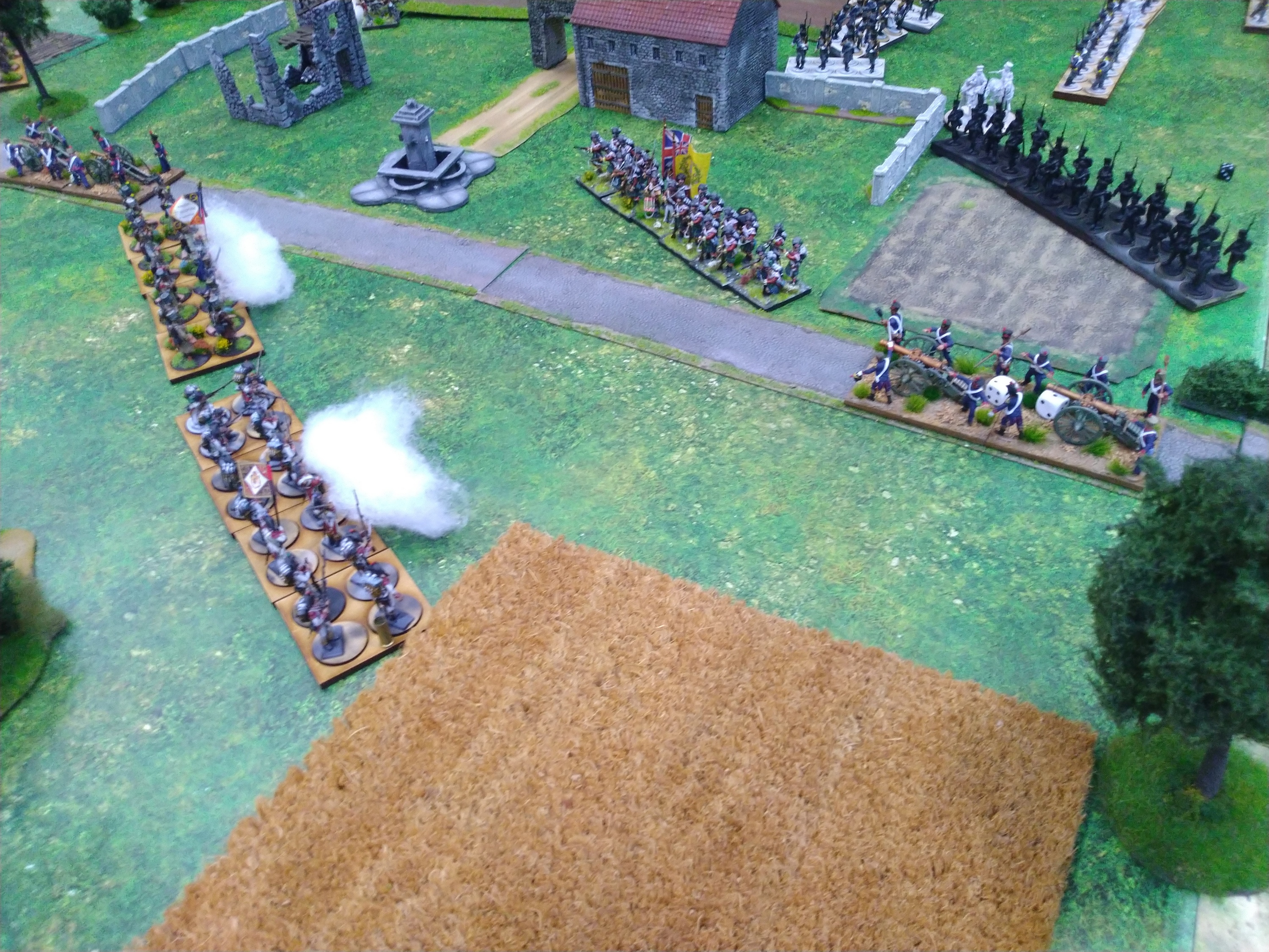 Adams Polish Vistula Legion.Russians advance to take enemy guns.French column during march.All on one. Single Russian battalion stood they ground.French cavalry ride on the British wing.Russians battalions marched on the left and right with artillery support.French cavalry charged on Russian artillery.Artillerist runned away for they lives.Some hand to hand combat in the middle.I thought it’s the end of my batallion, but…… but it was end of one French unit which turn it tail and fled.