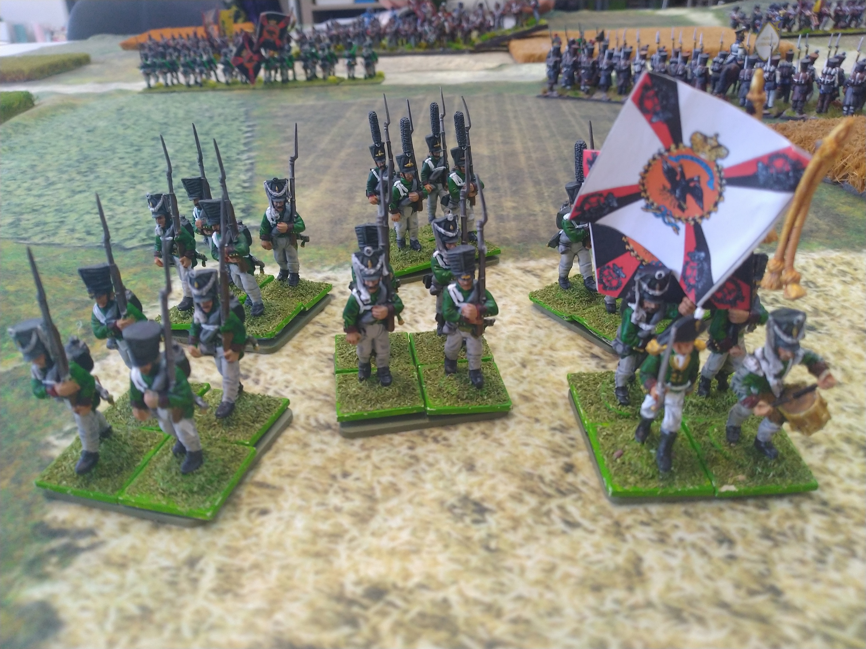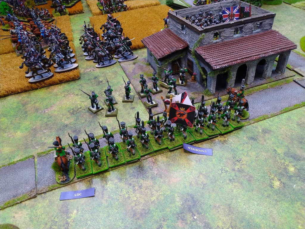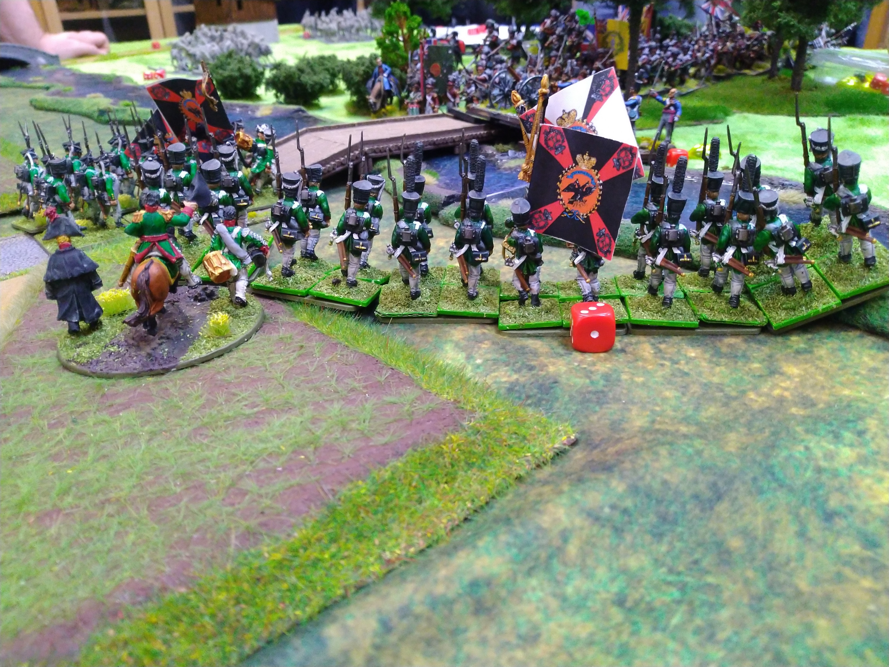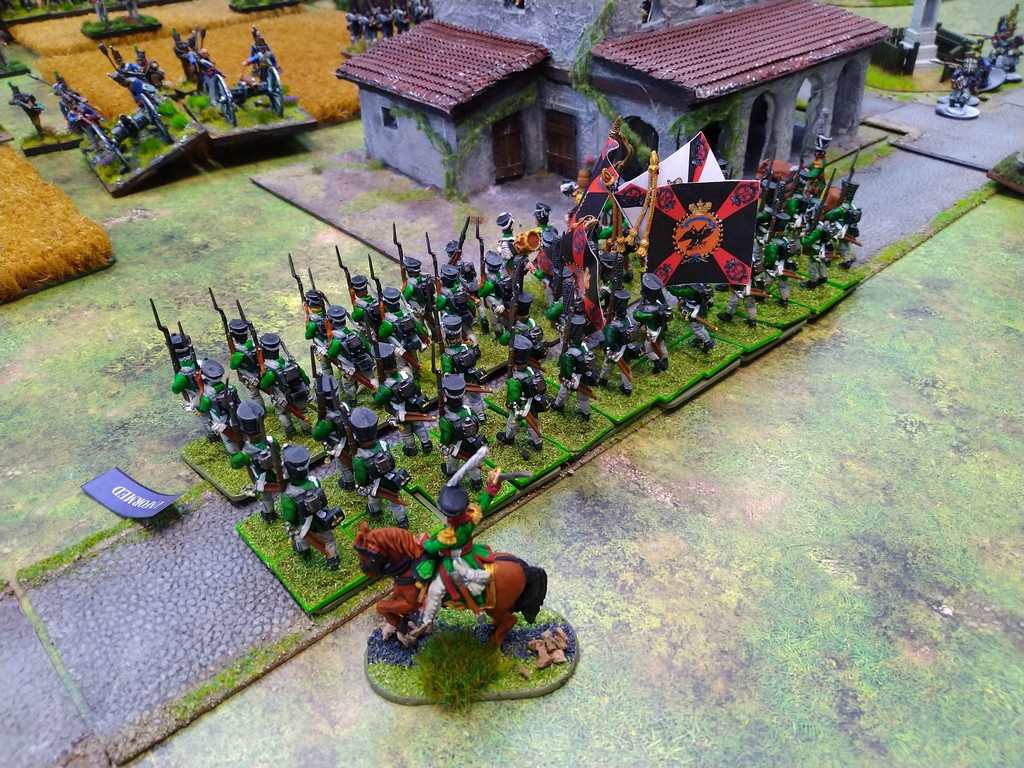 Württemberg on right flank of French coalition.French in the middle and left flank of French coalition.Russian infantry brigade in the middle. Russian in the middle and United Kingdom on right.French Hussars.Württemberg advance when Russian brigade stay and watch.British advance towards French.95th took positions in the forest.French advance towards British. Russian artillery open fire, but black powder was wet – someone sabotaged it before battle started. Russian brigade composed of Polish Uhlans recruited from Polish nobility and Don Cossacs arrived.French took village „Badrolls” before Russians were able to secure it.Russians Jagers opened fire on advancing Württemberg troops.Polish-Cossacks cavalry tried to change situation on the field.Cavalry of both sides contested on British-Russian right flank.Bayonnets fixed – Russian infantry charged Württemberg batallion. Beautiful Kris Württemberg. Russian infantry advance to mere village „Badrolls” – symbol of British and Russian defeat. Russian batallion took ground after winning in hand to hand combat. A lot of fire and French were still in the famous now village. Situation in the middle where both sides shell each other with artillery. French cuirassiers charged Russian batallion and…… broke it in one charge.Russian infantry prepare to stand they ground against heavy French cavalry. Even though soldiers as Russian infantry was weren’t able to held they ground and did step back, artillery limbered.Cavalry clash on Allied right flank.Shattered Russian brigade still fight.Polish uhlans vs French cuirassiers.Retreat of British hussars. Moment when I losed my infantry brigade, as they morale went pretty low.Plus one more brigade was broken.My allied general Tomas held his ground, but enemy took all key positions.