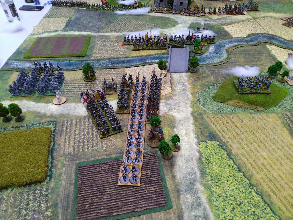 Summary: – it was good game – we played around 3,5 hours. – I missed few photos, as Grzesiek cavalry brigade was looking for a ford and they charged on Damians cavalry, routing them.