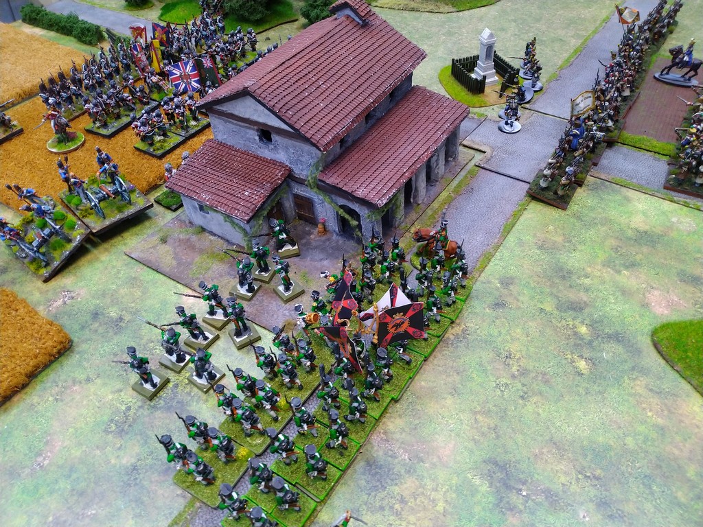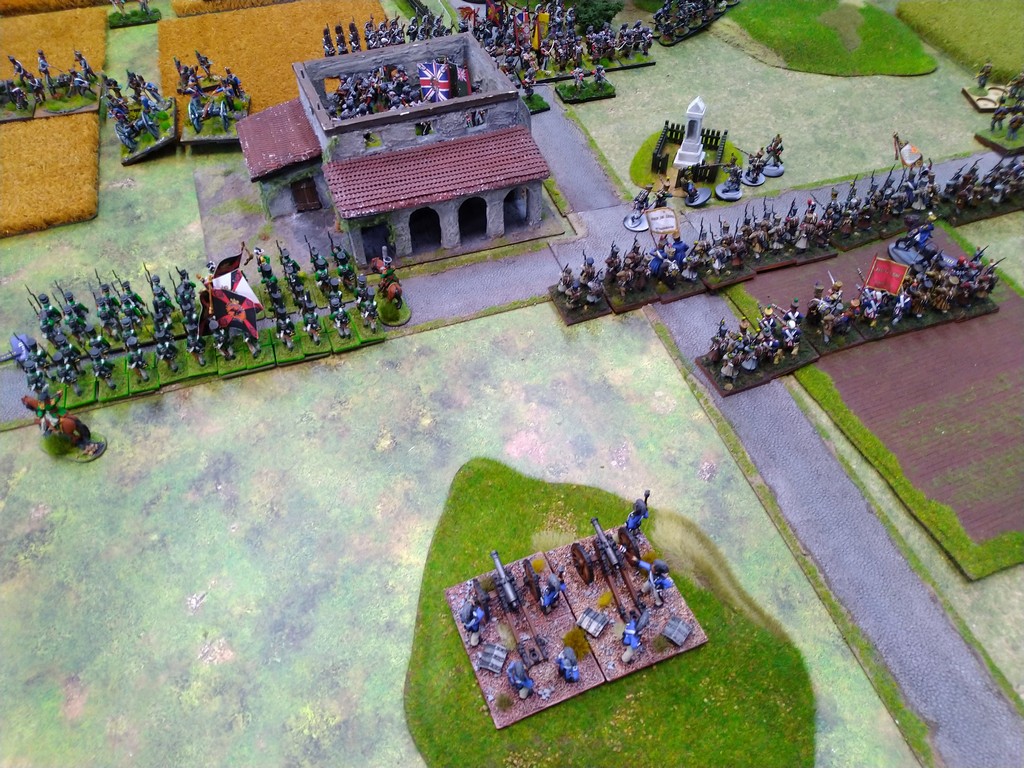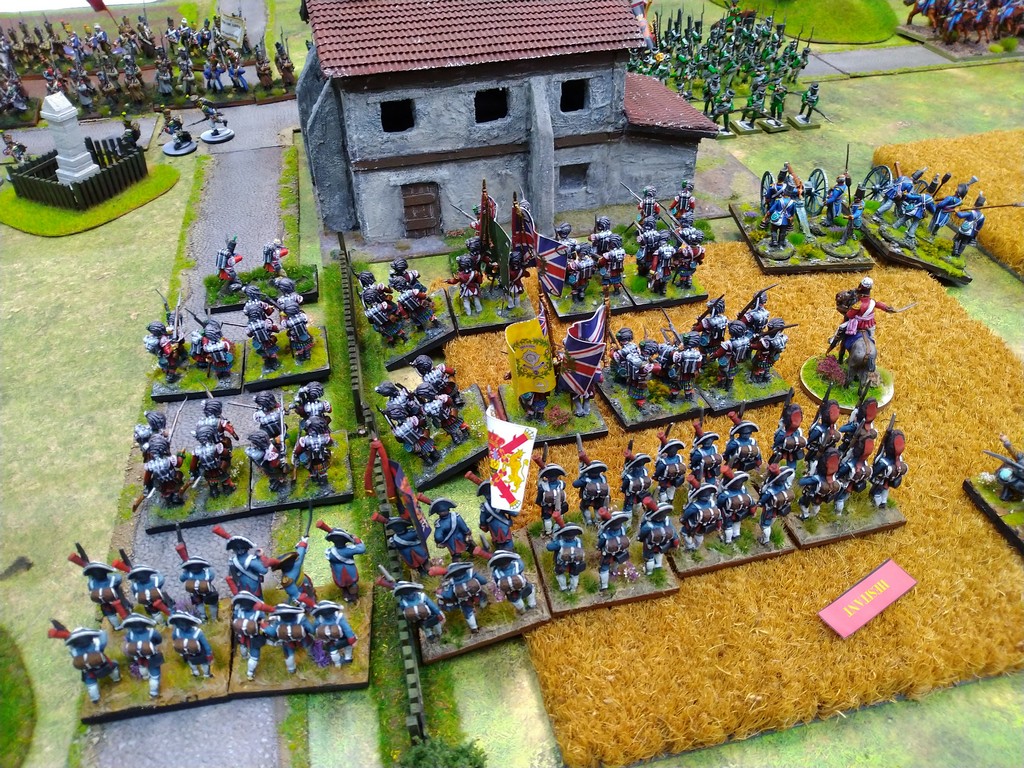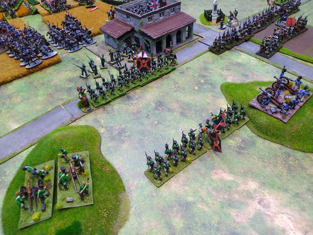 British are coming.British centre.Part of our centre were secured by Russian infantry and Polish Uhlan regiment.Left flank secured by several cavalry regiments.French securing other part of the centre.Prussian took right flank of our combined force.British left flank opposed by Prussians.Battle for a tawern and crossroads.Russian artillery ready to open fire.Chapel – silent deponent of battle.Among British were Portugal regiment.British right flank secured by cavalry and artillery.Close range fire beetwen Russian Jagers and British artillery.British seized defensive position in tavern.Prussians taking positions behind hedgehod.British slowly advancing on left flank.Cavalry charged on British cavalry.British cavalry after short clash turned tail and fled.Polish uhlans in full speed charged British cannon battery…… and in advance galloped toward British sharpshooters.One of the Russian batallions had enough and retreated.British cavalry regrouped into squares.In act of bravery uhlans charged British square.Left flank secured and British reorganized to defend against massed cavalry regiments.