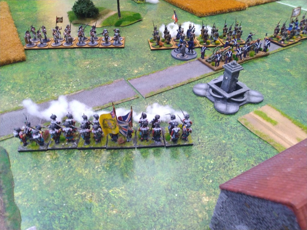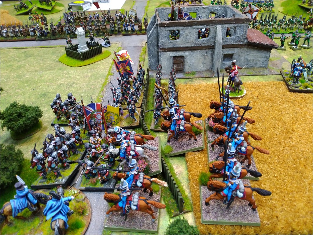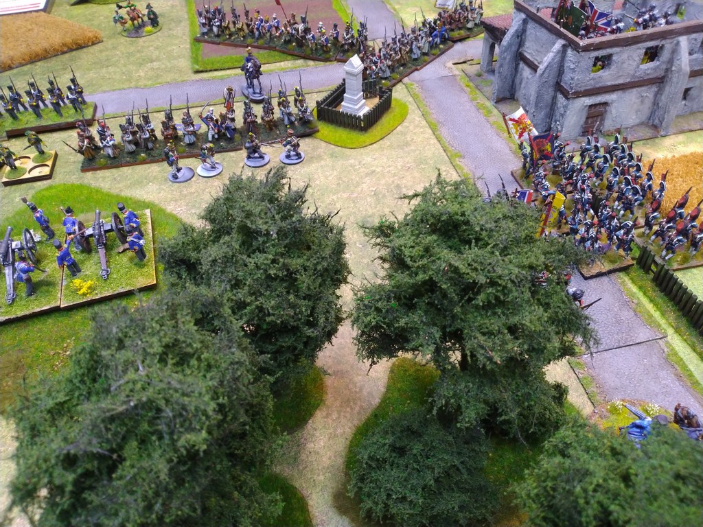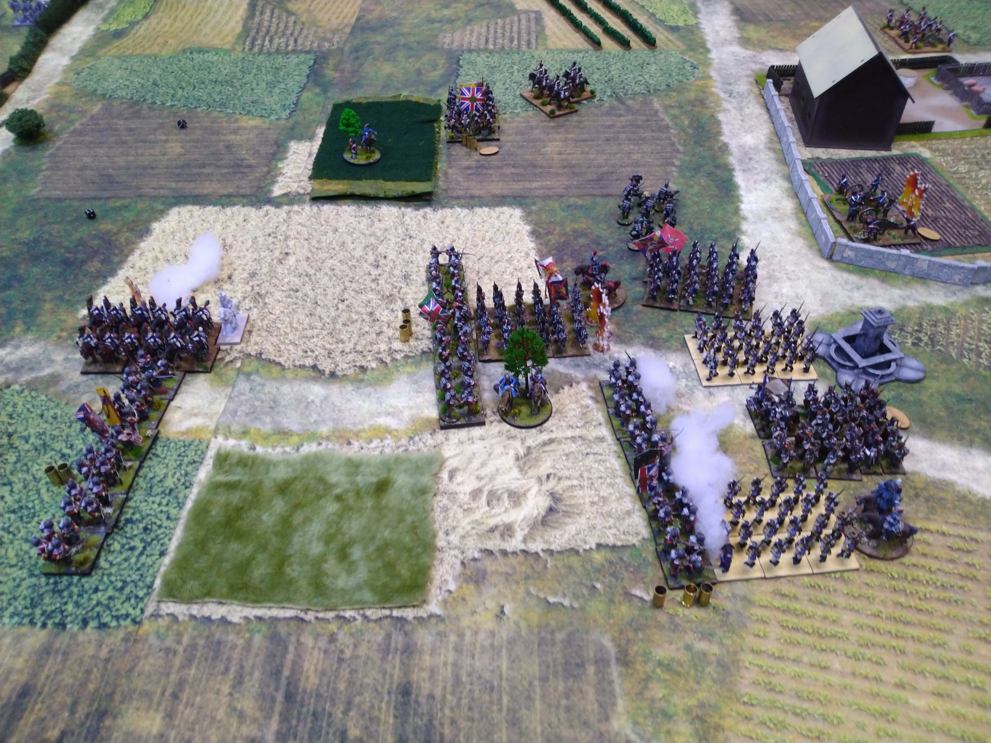 British are coming.British centre.Part of our centre were secured by Russian infantry and Polish Uhlan regiment.Left flank secured by several cavalry regiments.French securing other part of the centre.Prussian took right flank of our combined force.British left flank opposed by Prussians.Battle for a tawern and crossroads.Russian artillery ready to open fire.Chapel – silent deponent of battle.Among British were Portugal regiment.British right flank secured by cavalry and artillery.Close range fire beetwen Russian Jagers and British artillery.British seized defensive position in tavern.Prussians taking positions behind hedgehod.British slowly advancing on left flank.Cavalry charged on British cavalry.British cavalry after short clash turned tail and fled.Polish uhlans in full speed charged British cannon battery…… and in advance galloped toward British sharpshooters.One of the Russian batallions had enough and retreated.British cavalry regrouped into squares.In act of bravery uhlans charged British square.Left flank secured and British reorganized to defend against massed cavalry regiments.