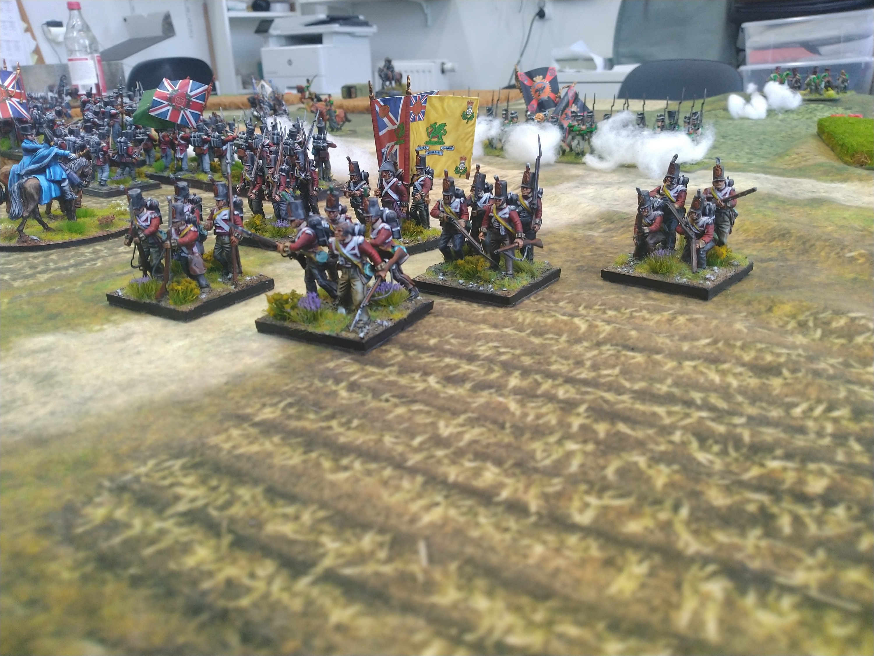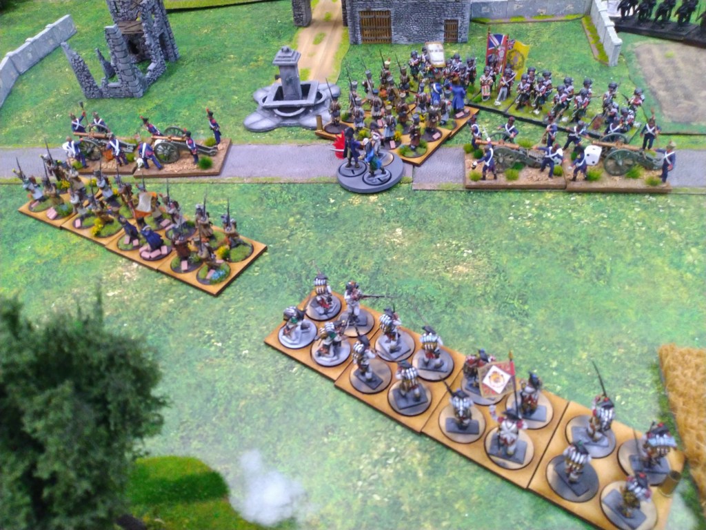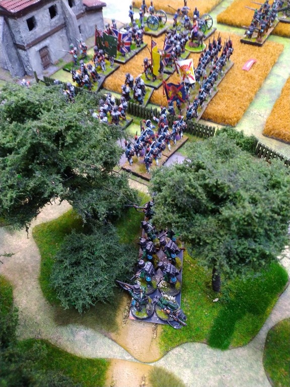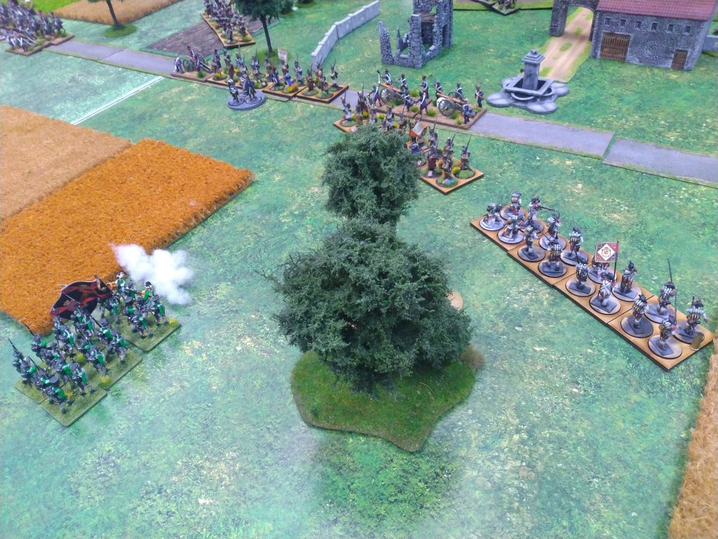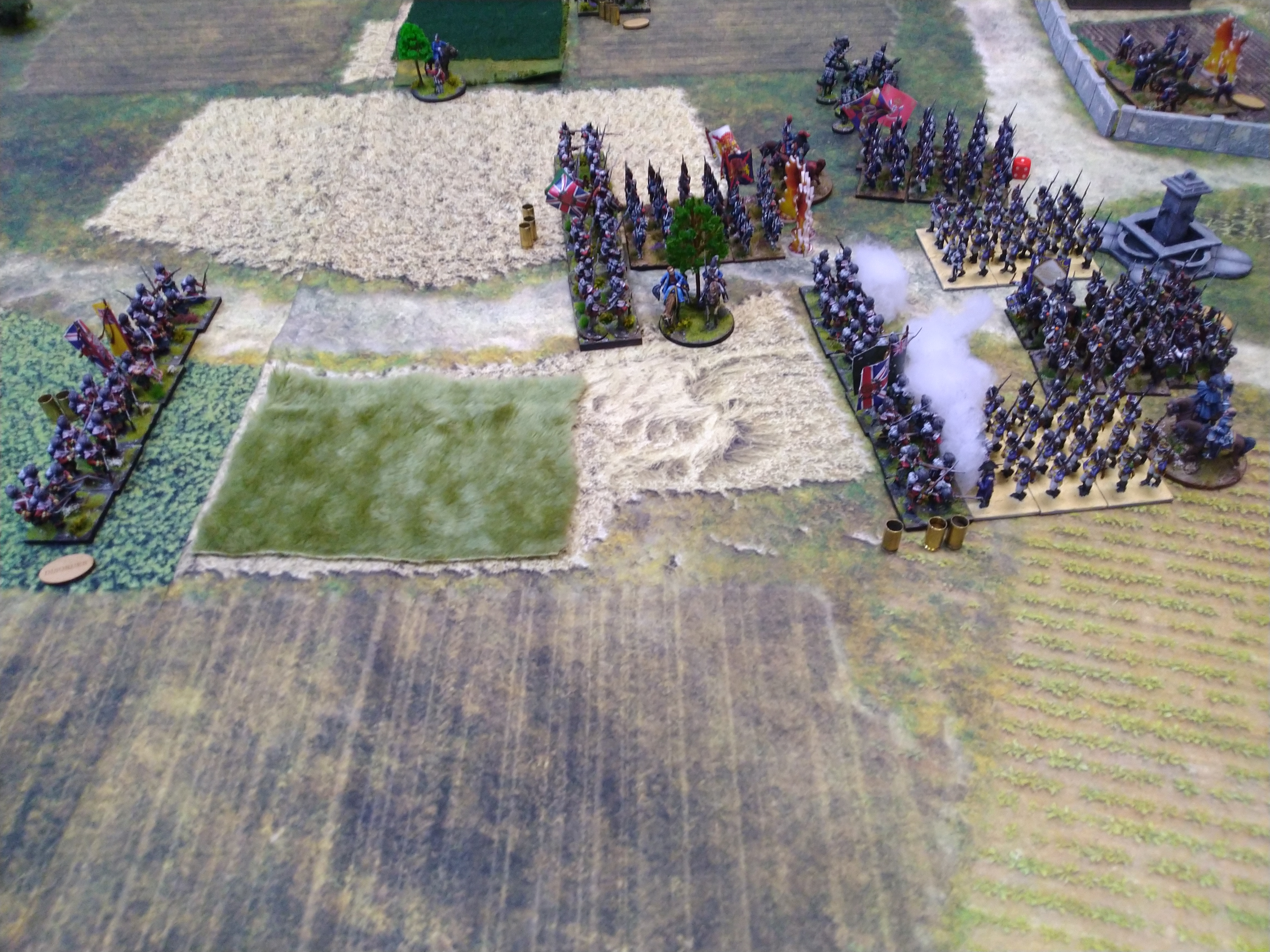 Infantry in line move slower.Cavalry rode ahead.Several lucky cannonballs panicked Polish Uhlans.British against Russians.Cavalry clashes as Polish lancers countercharge British hussars.Russian batallion finally losed they nerves and fled.Another regiment of Uhlans broke hussars.One of the British batallions broke from Russian infantry and artillery fire.Another batallion broken by heavy artillery and muskeet fire.