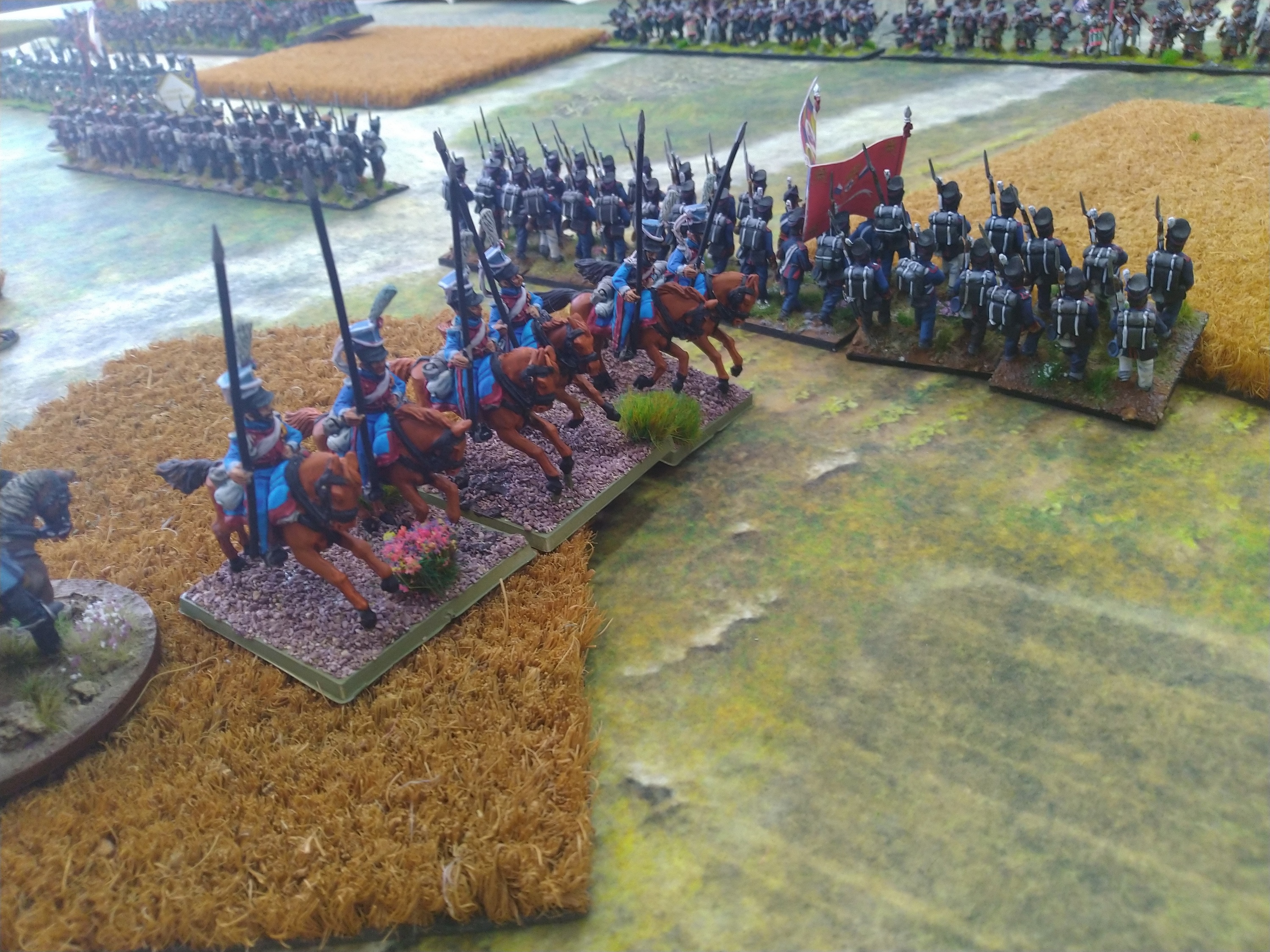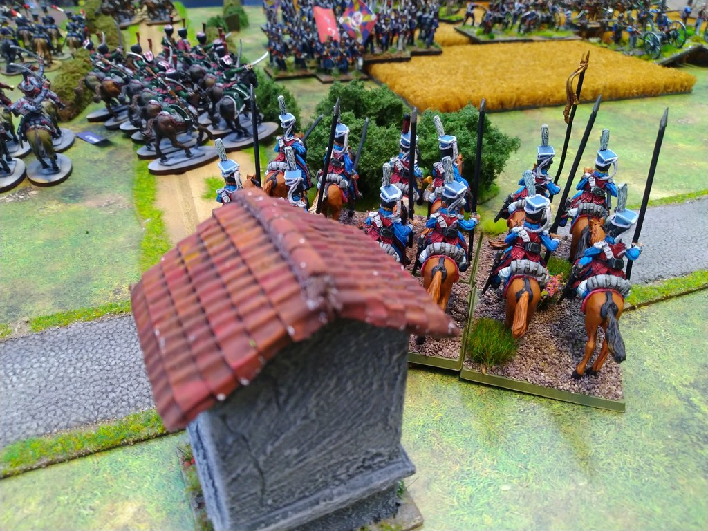 British cavalry on the flank destroyed infantry and charged uhlans on the flank.