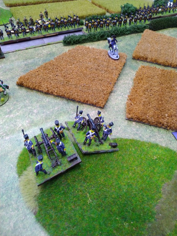When right flank had problems with understanding orders, middle and left flank on allies side moved. Artillery took hill and hid behind a fence.