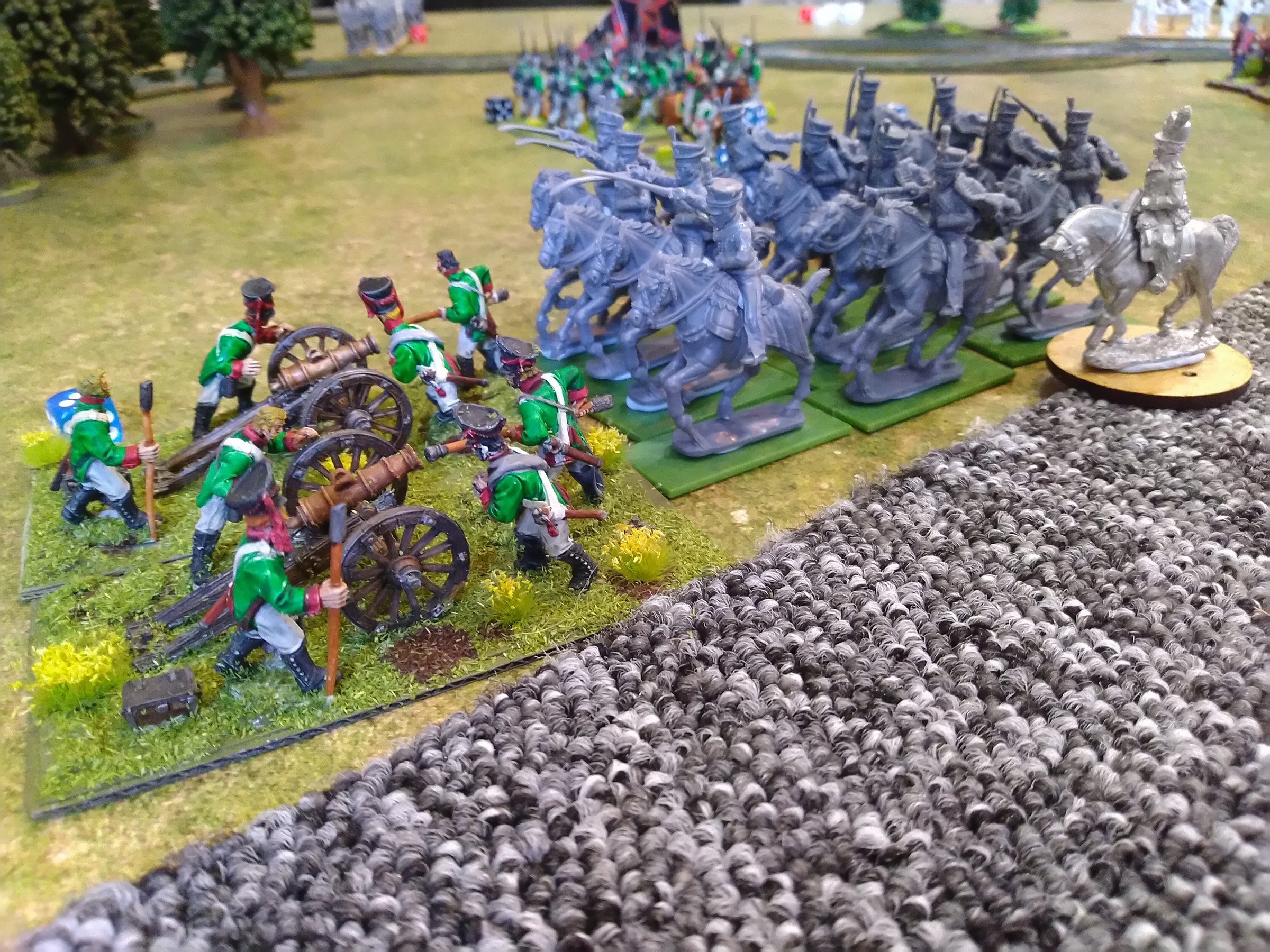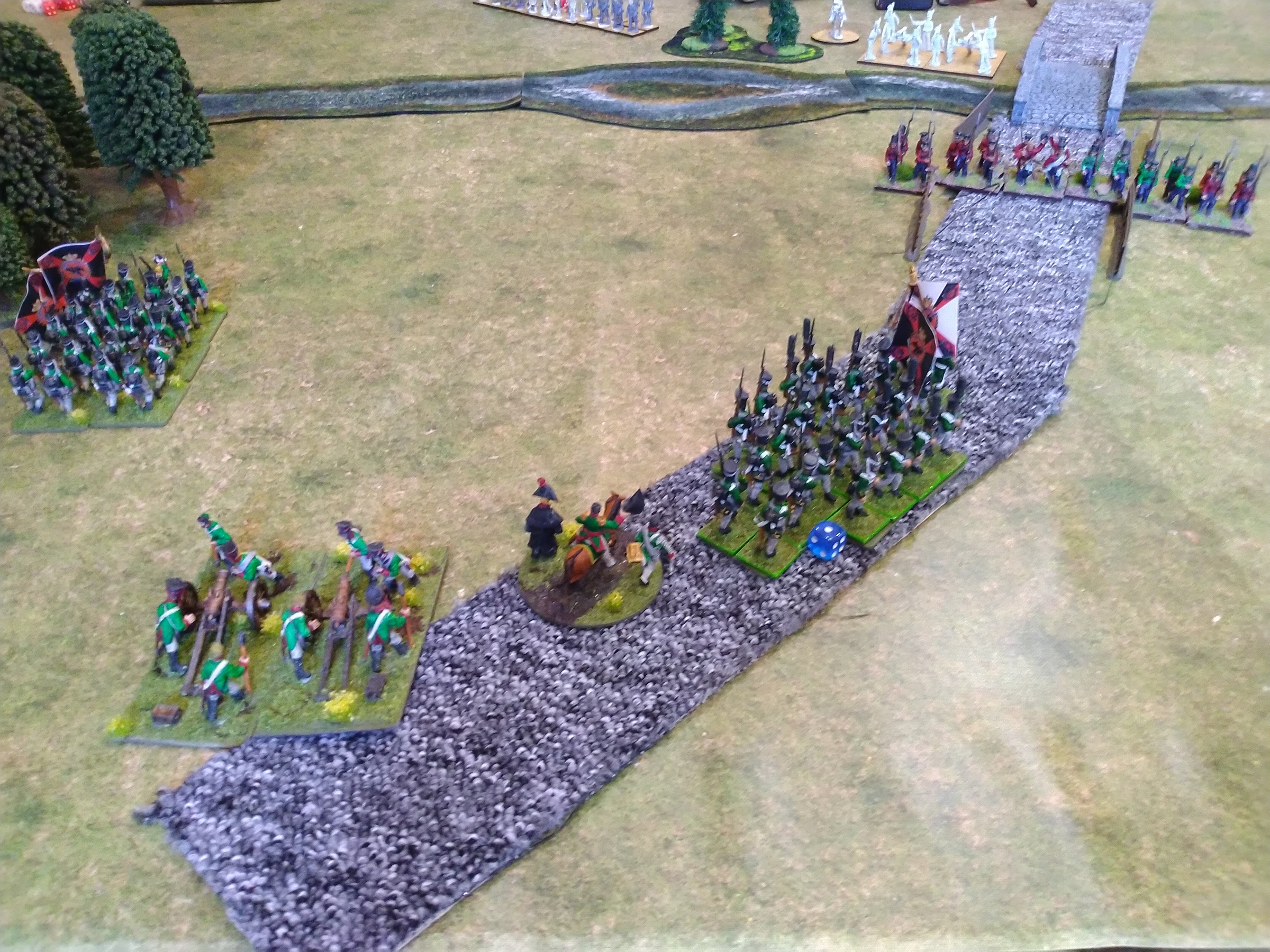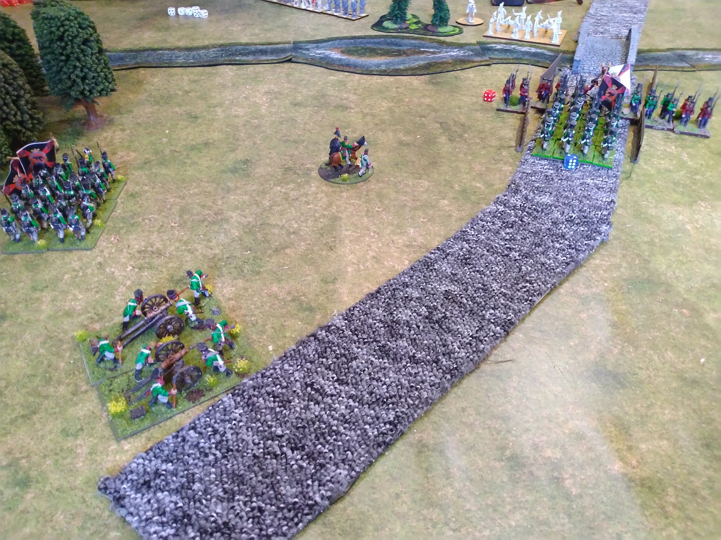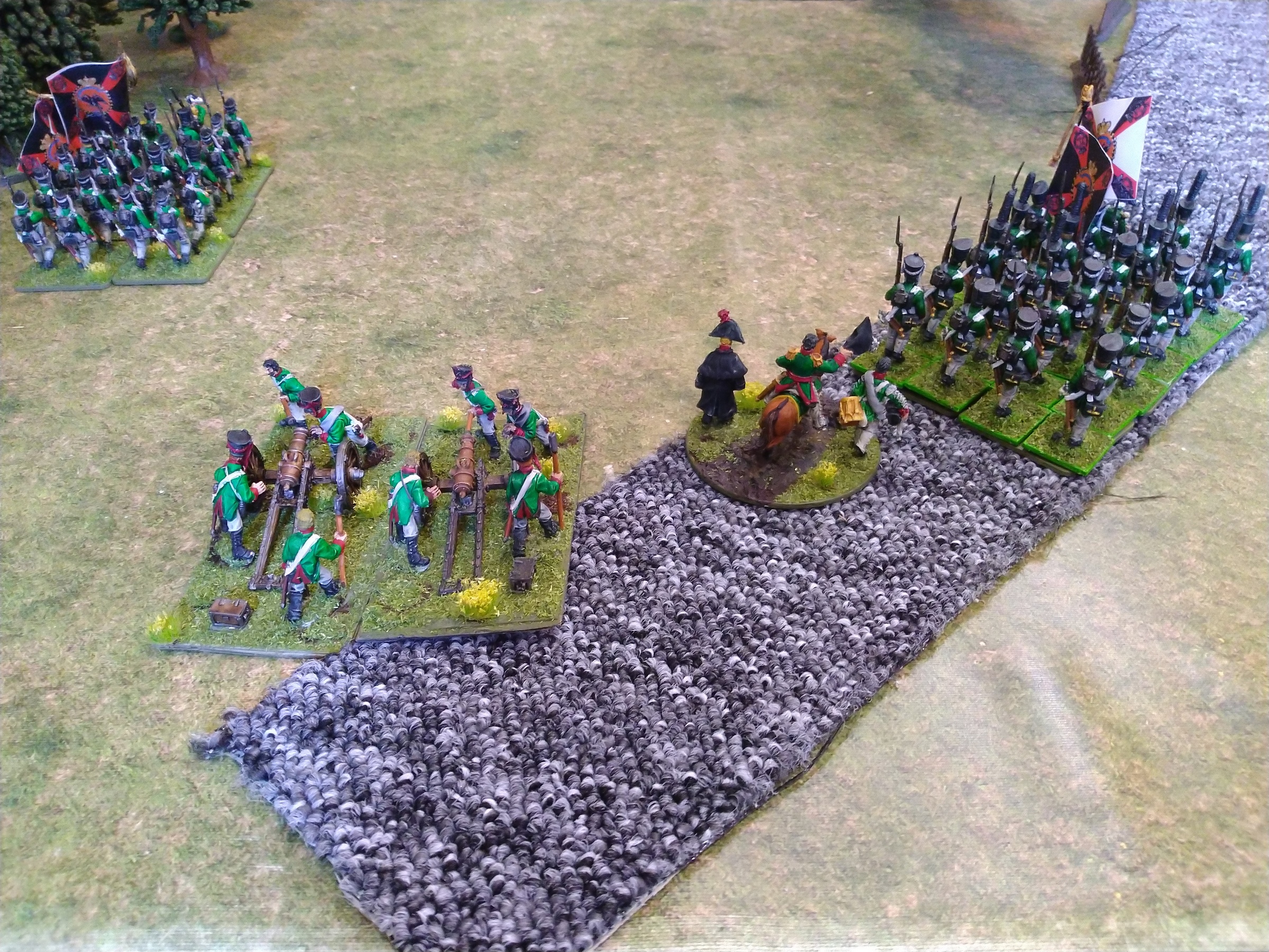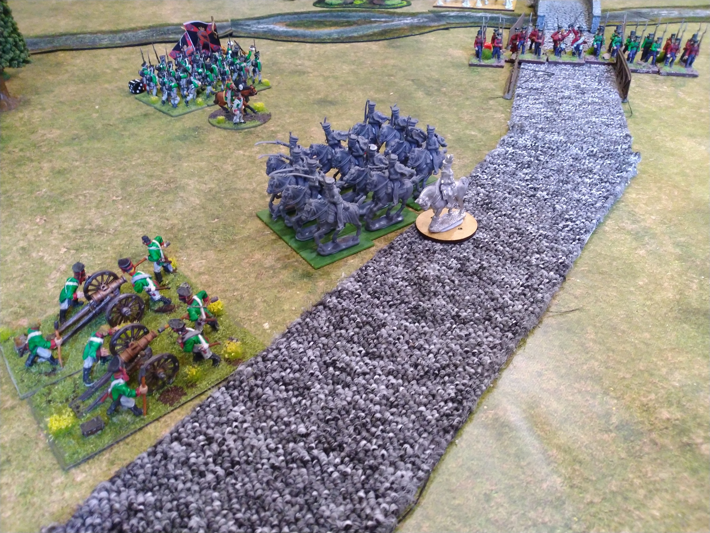 Adams Polish Vistula Legion.Russians advance to take enemy guns.French column during march.All on one. Single Russian battalion stood they ground.French cavalry ride on the British wing.Russians battalions marched on the left and right with artillery support.French cavalry charged on Russian artillery.Artillerist runned away for they lives.Some hand to hand combat in the middle.I thought it’s the end of my batallion, but…… but it was end of one French unit which turn it tail and fled.