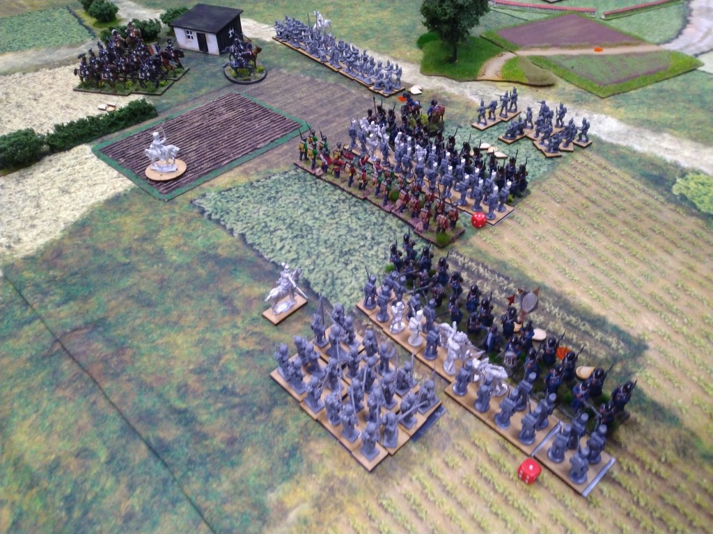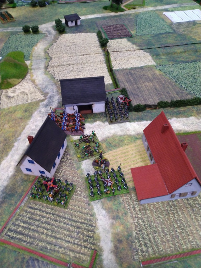 Vistulan Legion of Marian charged streltsi from back. Russian infantry survived this charge and broke Neapolitan infantry to the front.