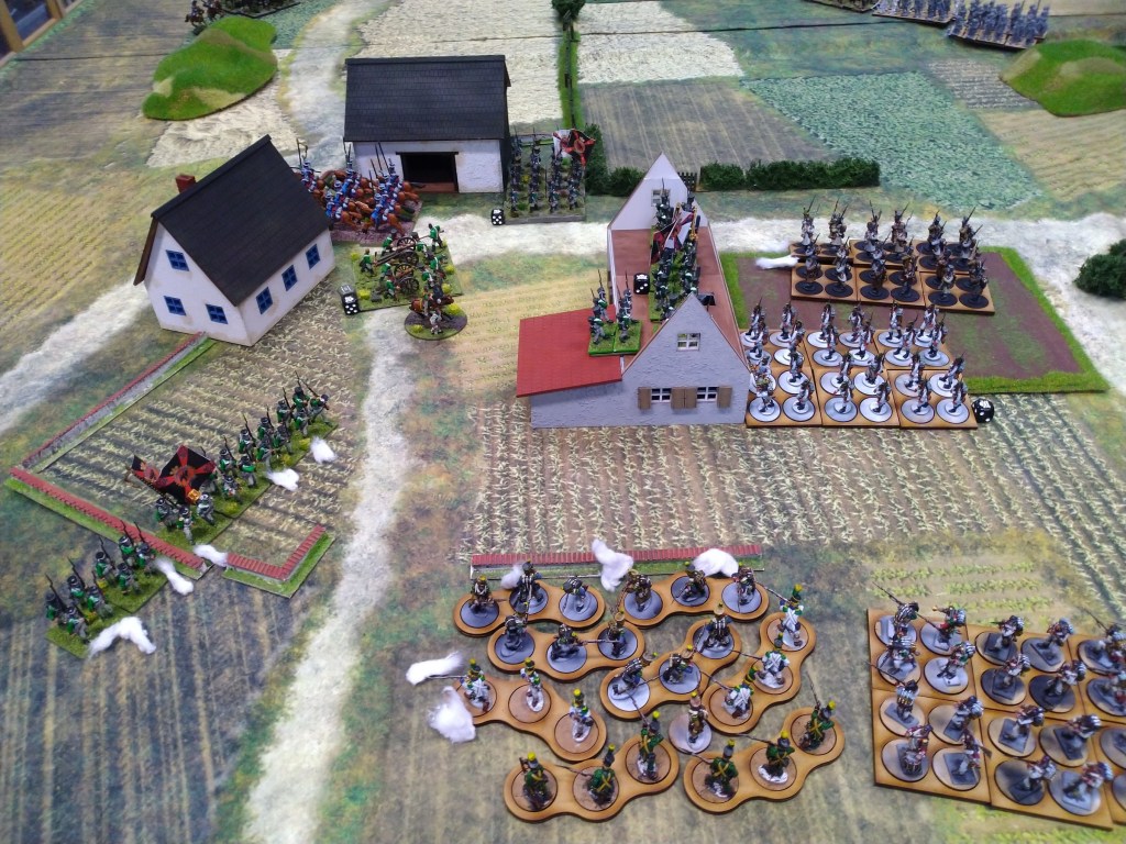 Summary: – finally German states won, after initial successes on our left flank – Prussians finally rallied and pushed back Austrians, on the right flank Württemberg marched forward and my Russians weren’t able to do anything other than trying to hold them. German states took most of the objectives and broke all of our brigades at the end of the game. – thank you for a good game Kuba, Kris and Rafał!