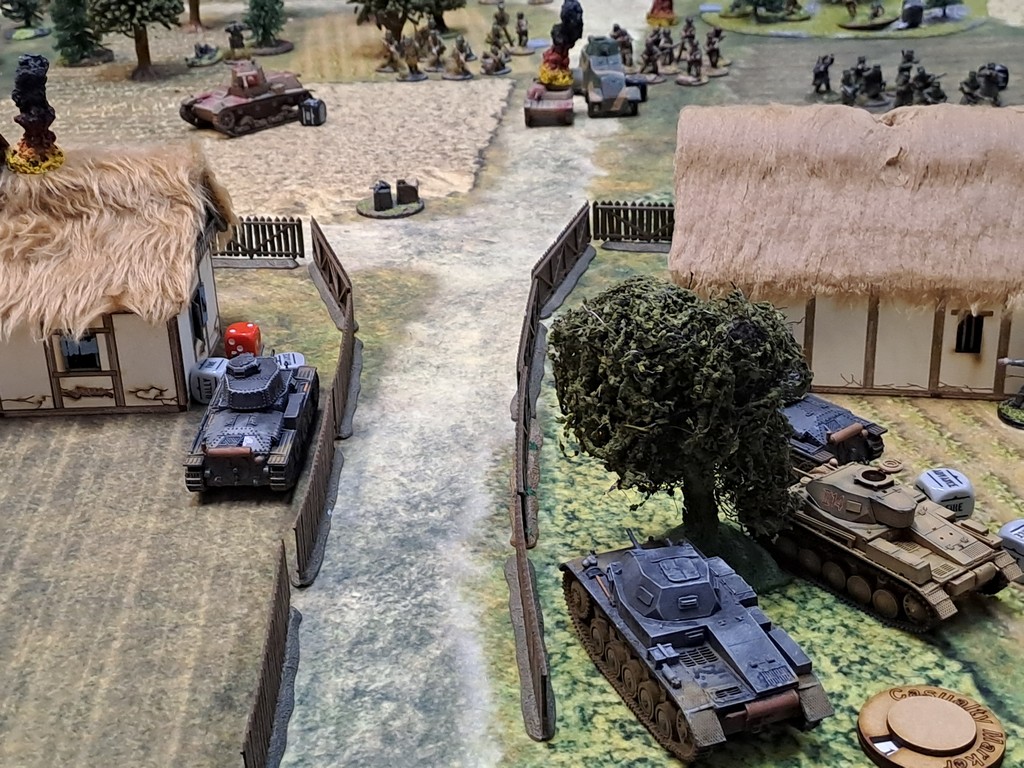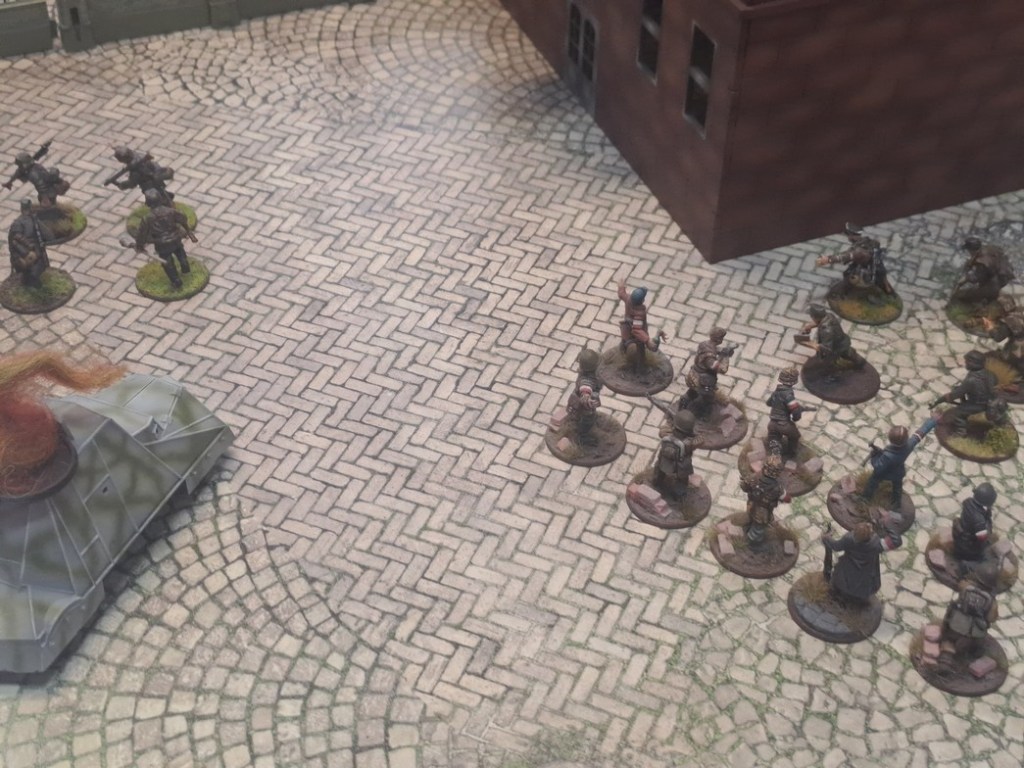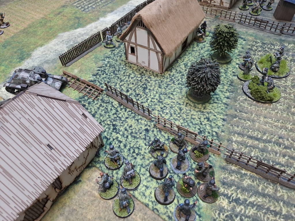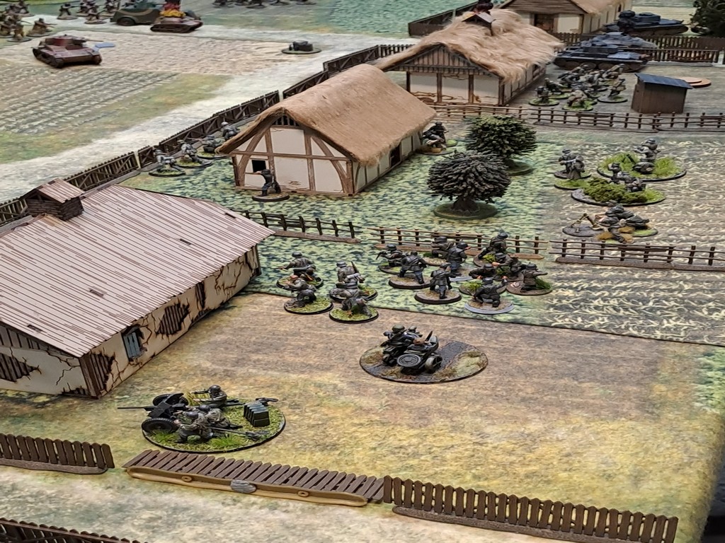 Podsumowanie: – świetna rozgrywka przy dużej dysproporcji sił, dzięki Cornholio! – dlaczego by nie grać na większe punkty i z pojazdami których się nie widuje? – jedno co jest istotne to dobra zabawa, tu przy większych punktach warto pomyśleć o balansie ilości kości rozkazu obu stron i w przypadku obrońcy – odpowiedniej ilości umocnień. – w wyniku naszej gry, bohaterska obrona niemieckich spadochroniarzy i żołnierzy wojsk pancernych dała czas do odwrotu w stronę rzeki Elby.