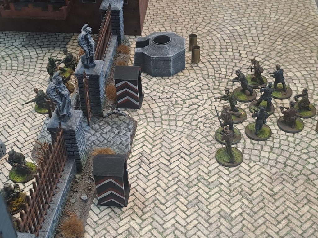 Then, using Bolt Action miniatures, we played a hypothetical fourth attack on the University of Warsaw, modifying the scenario from The Road to Berlin.