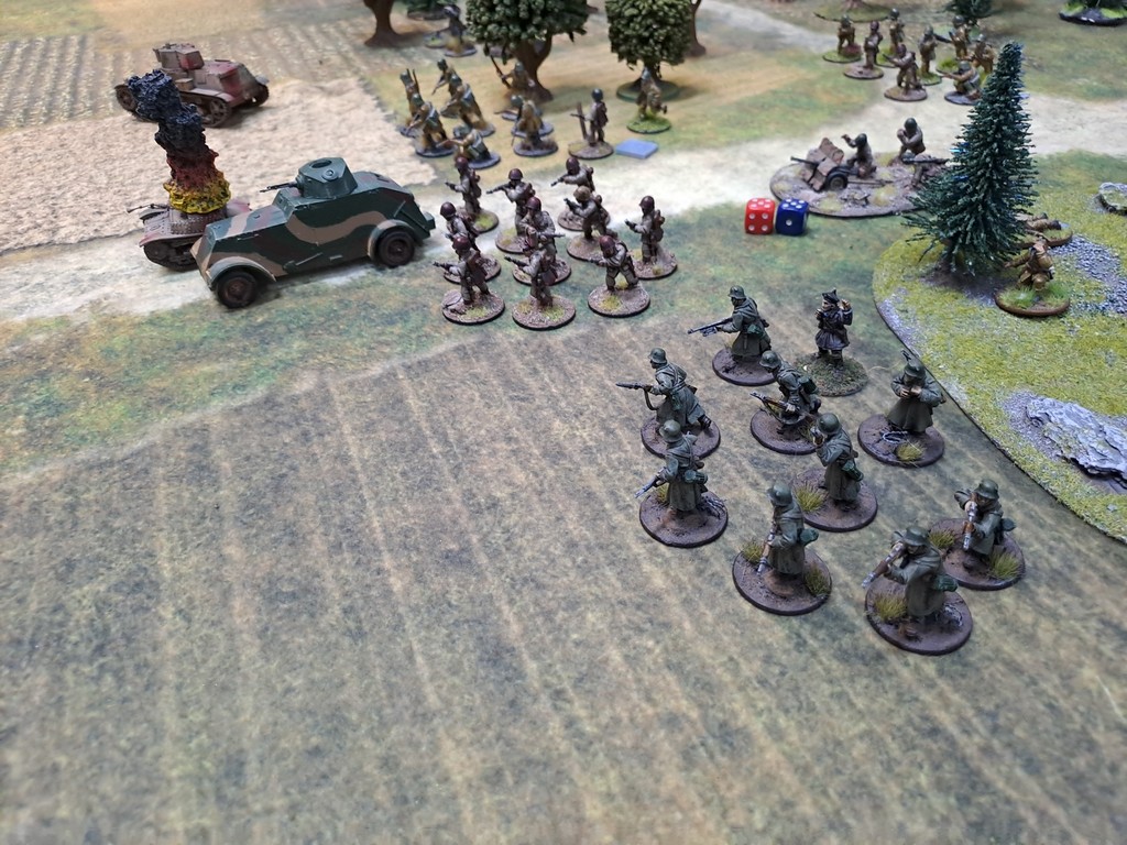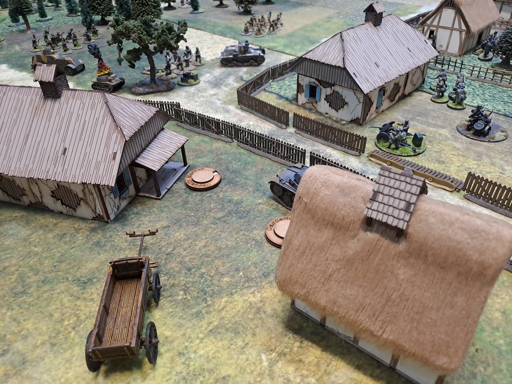 🇬🇧 Summary: – great game, around 2,500 points per side. – thanks a lot Łukasz, Przemek, Rafał for the great atmosphere at the table! Thank you Rafał for great job about this scenario. – several of my Polish vehicles took part in the game for the first time, 7-TP, TKS with a 20mm machine gun, Ursus WZ.29.