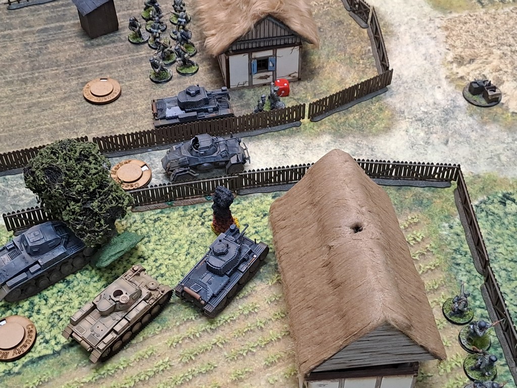 W czwartek 4 lipca 2024 roku stoczyliśmy z Cornholio hipotetyczne starcie w pobliżu niemieckiego ośrodka broni pancernej – Kummersdorf. Miejscowość oddalona o 25 kilometrów od Berlina była ośrodkiem broni pancernej niemieckiej III Rzeszy. Po stronie obrońców stanęli niemieccy spadochroniarze, niedobitki panzerwaffe oraz jeden z dwóch prototypów Panzerkampfwagen Maus. Siły obrońców liczyły około 1500 punktów, atakujących około 3000 punktów.