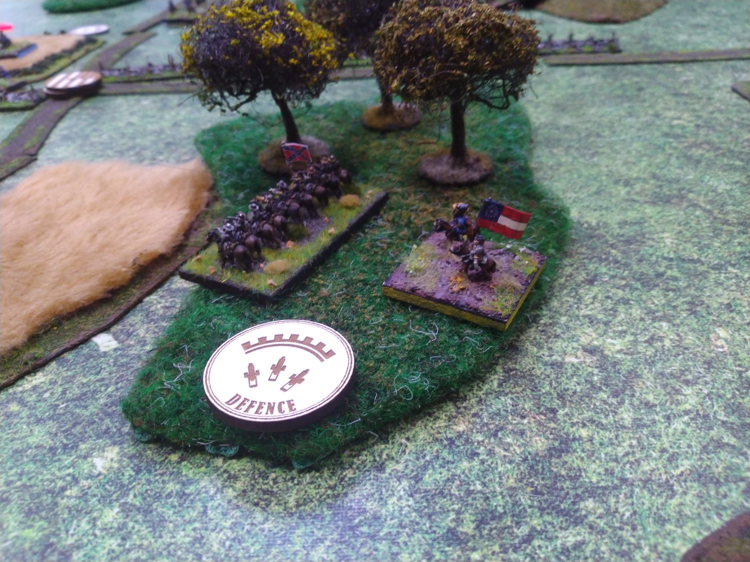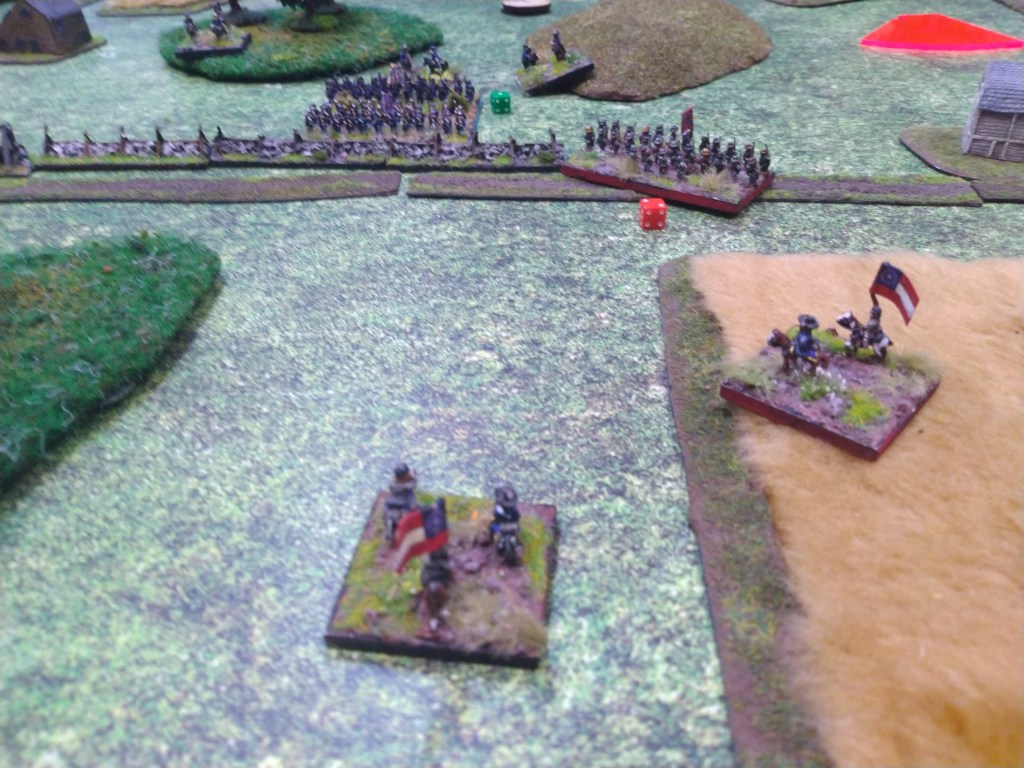 Tak więc zacznijmy z grą jak ją widziałem: 1. bitwy są toczone przez armie złożone z korpusów – są dowodzone przez generałów takich jak Robert E. Lee. Armijni generałowie mają różny poziom wyszkolenia i umiejętności, niektórzy z nich są w stanie łatwiej przejąć inicjatywę, inni trudniej. 2. generałowie korpusów armijnych i dywizji mają różne poziomy wyszkolenia i umiejętności. Lepszy generał może łatwiej wydać rozkaz lub zebrać swoich żołnierzy. Generał armijny może wspierać swoich dowódców wysyłając adiutantów – reprezentowanych przez dodatkowe kości. 3. są tu karty bitwy – każdy generał zaczyna grę z trzema i co turę dociąga jedną kartę z talii. 4. w grze mamy mgłę wojny, obaj generałowie zaczynają grę z patrolami (marker) prowadzącymi rozpoznanie sił przeciwnika w poszukiwaniu korpusów. Patrol może także ukrywać przed przeciwnikiem własny korpus – kiedy patrol własny i przeciwnika się zobaczą, odkrywa się ich prawdziwe oblicze. Jeśli patrol krył brygadę – jest ona wystawiane obok patrolu, ale nigdy przed. 5. Brygady w sekrecie otrzymują rozkazy – są trzy do wyboru: – Atak – which allow unit to get in enemy zone of control and fire and/or charge. – Obrona – which make unit better in defence. – Marsz – który dodaje 3″ ruchu więcej. 6. generałowie wydają rozkazy brygadom, naprzemiennie jeden po drugim – wpierw jest generał który wygrał inicjatywę, następnie jego przeciwnik i tak dalej, naprzemiennie. 7. jakość jednostek jest różna od stanowej milicji po elitarne brygady piechoty czy kawalerii – uważam, że ten system jest dobry do odzwierciedlenia jednostek jakie brały udział w tej wojnie domowej. 8. różne strony mają różne punkty zwycięstwa – inne dla dobrze rozwiniętej i uprzemysłowionej północy, inne dla mniej ludnego i zasadniczo rolniczego południa.