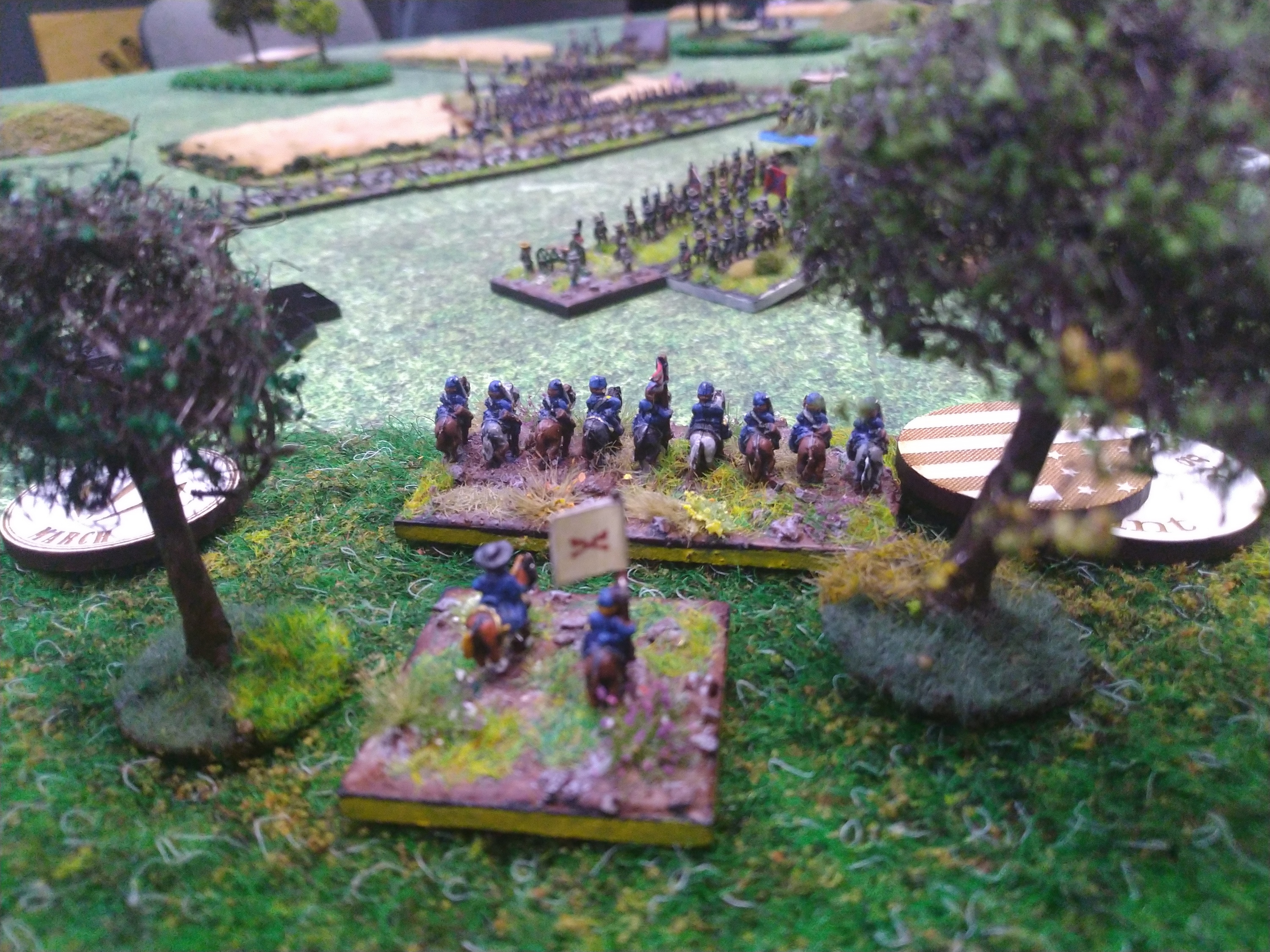 Orders are given to the units after roll for initiative.Table of Marek and Tomek.Patrol markers are important part of Gods of War: Lee.Moving thru special terrain cost some inches. They went into the forest.My first game overall.French cuirrasiers.Charging on cannons from the front is not greatest idea.Confederates advances toward they doom.Advance, fire and then if possible bayonnet .We are a band of brothers and native to the soil Fighting for the property We gain’d by honest toil And when our rights were threatened, the cry rose near and far Hurrah for the Bonnie Blue Flag that bears a single star!Situation went out of control.General Robert Lee with his HQ.Some plantation token – entry for Dixie.I asked Maciek for some rules for armoured trains.Second battle – Union cavalry took crossroad.I played too carefully in the centre.I did that – cavalry and horse artillery did miracles.Absorbing enemy from the centre.Coming closer.Dixie cavalry retreat.Regroup on the right flank.