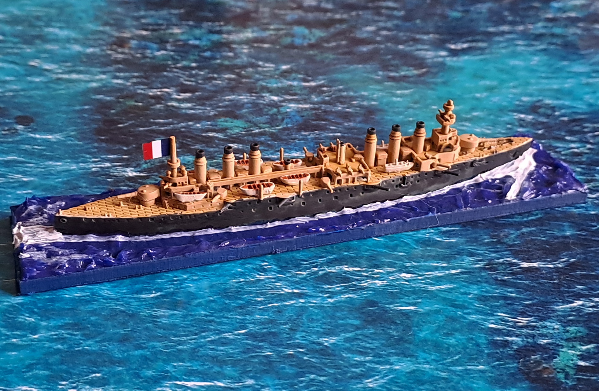 🇬🇧 Summary: – Just like the other French ships, the model is very enjoyable to paint. – However, it requires great caution when working with the lifeboat mounts — unfortunately, I wasn’t able to avoid damaging them. – A cruiser equipped with heavy artillery is something I can only envy as a commander of the Rossiyskiy Imperatorskiy Flot. On top of that, it has a standard amount of medium artillery. Without a doubt, it will be a reliable part of the French squadrons.