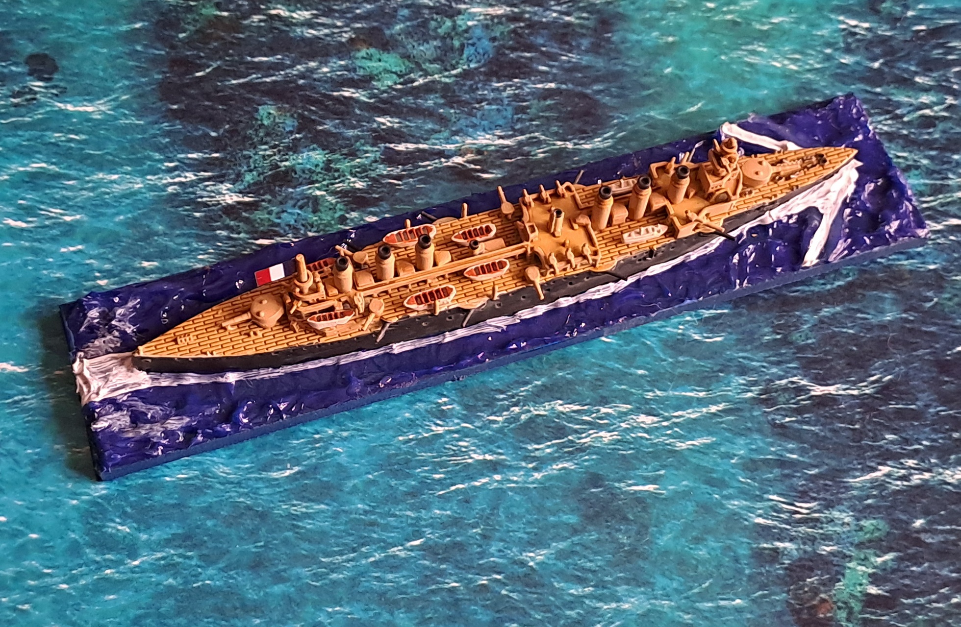 🇬🇧 Summary: – I wrote about the Friant in my Marine Nationale summary before its debut at Fields of Glory — you can read about it in the blog post HERE. – Quoting from that post: it’s a third-class cruiser worth 155 points, equipped with a fairly large number of medium-caliber guns and solid armor. Another advantage is its ram, which makes it a dangerous opponent in close-range engagements. – The model itself was a real pleasure to paint, and the lifeboats were easy to place on the deck without any trouble. ⚓🎨