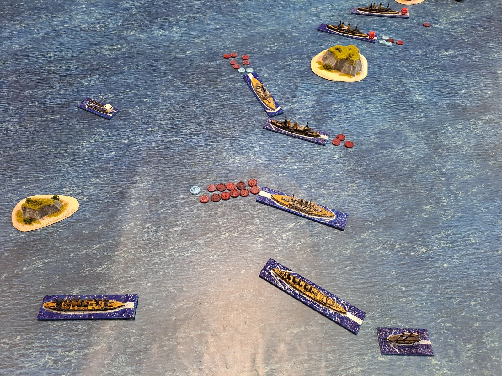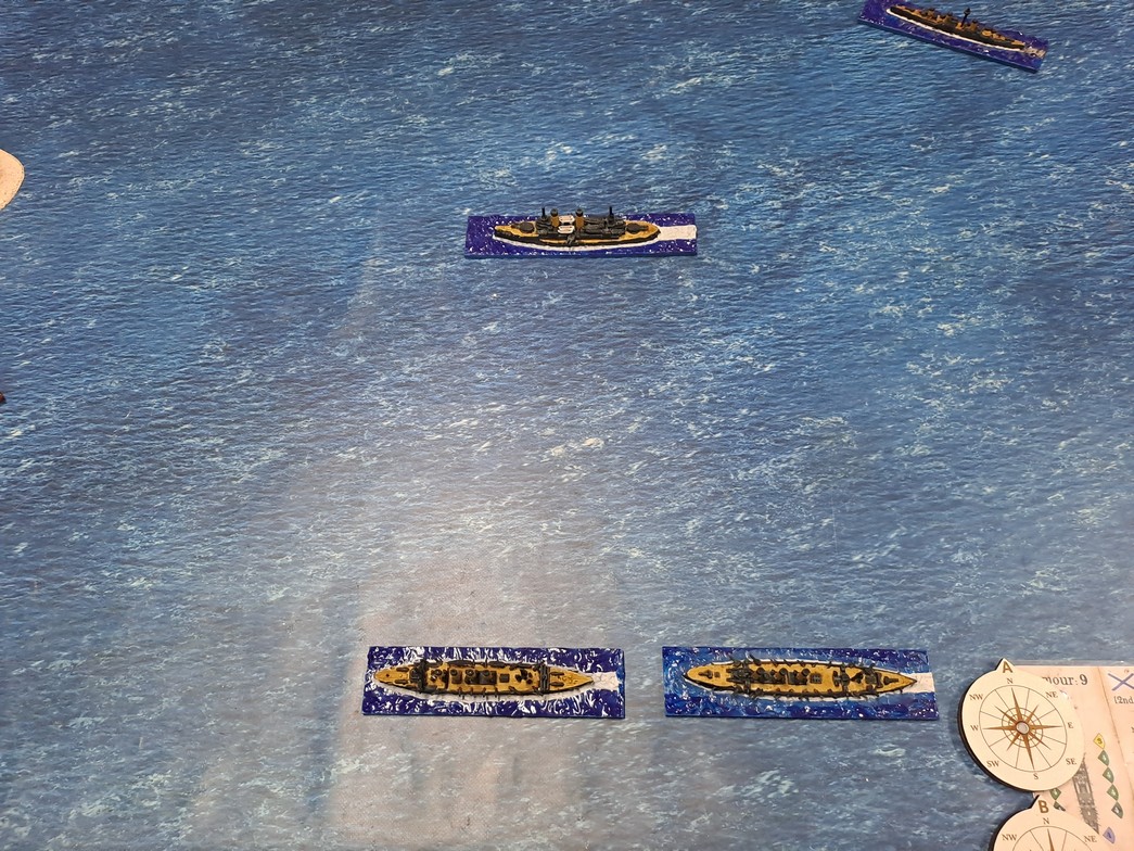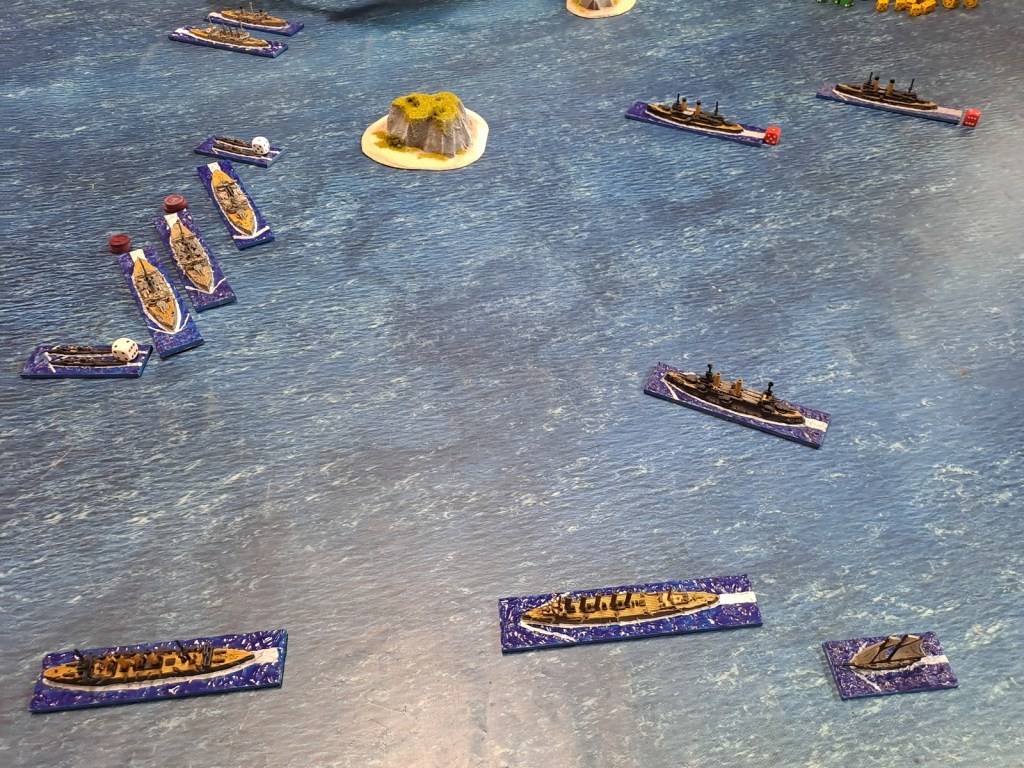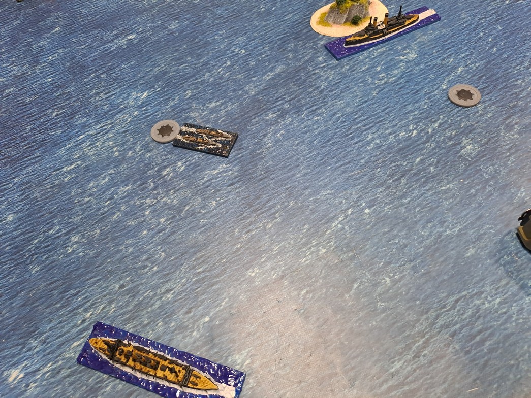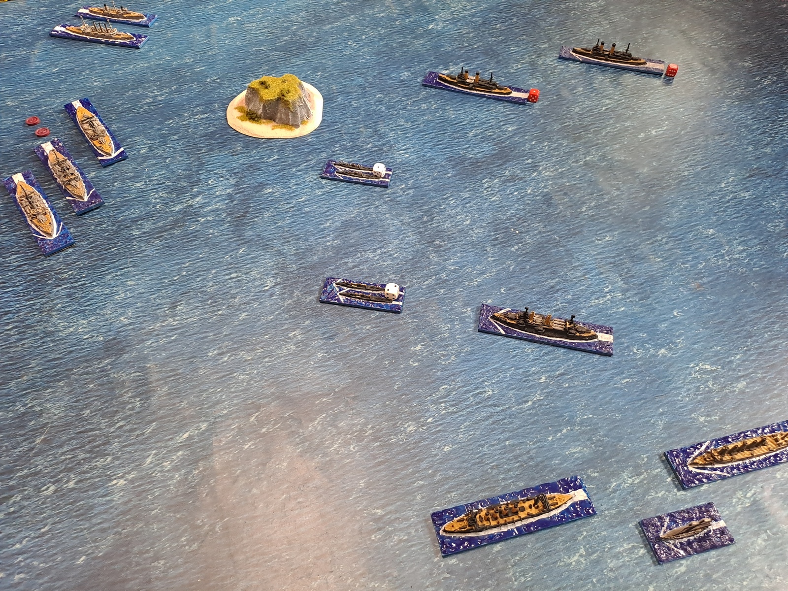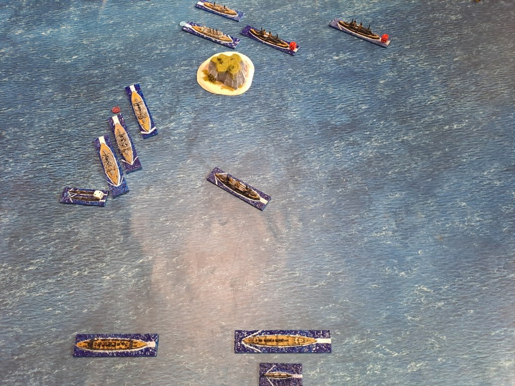 Tradycji stało się zadość – musieliśmy się spotkać! Tym razem Amerykanie mieli pancernik, a mój plan ominięcia floty przeciwnika spalił na panewce przez uszkodzenie steru na Gromoboju (lub Ruryku).