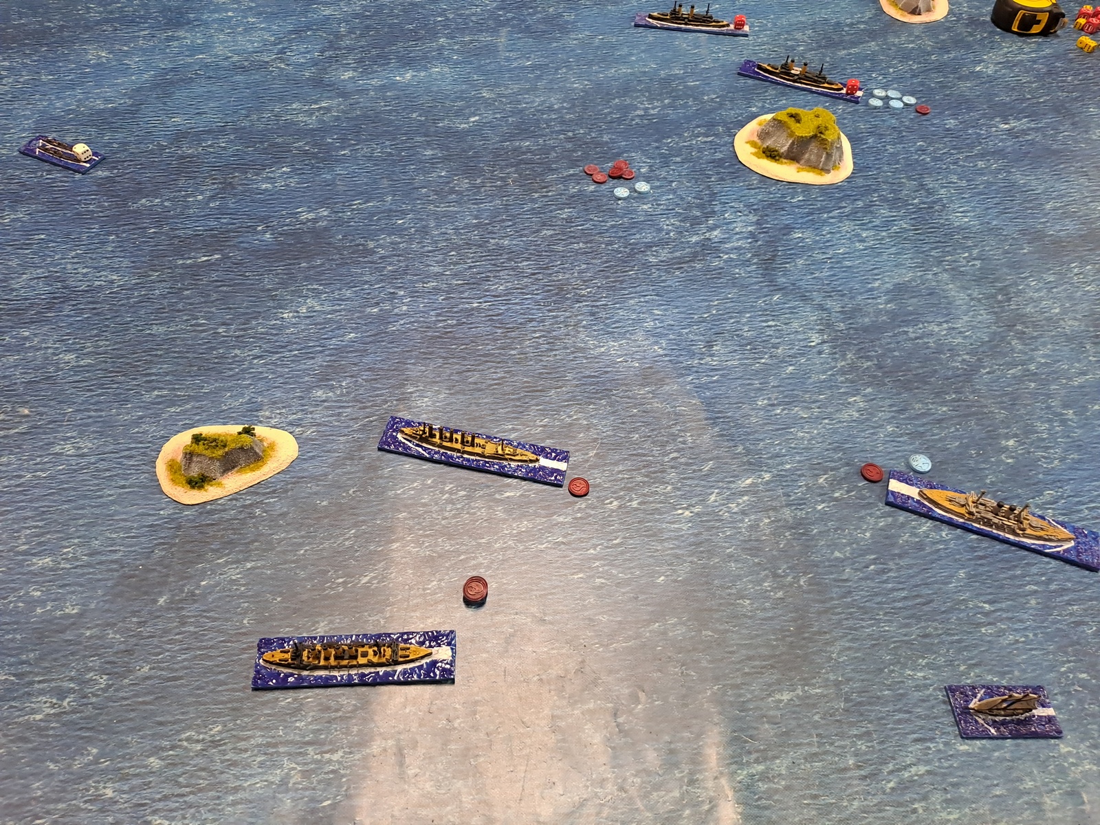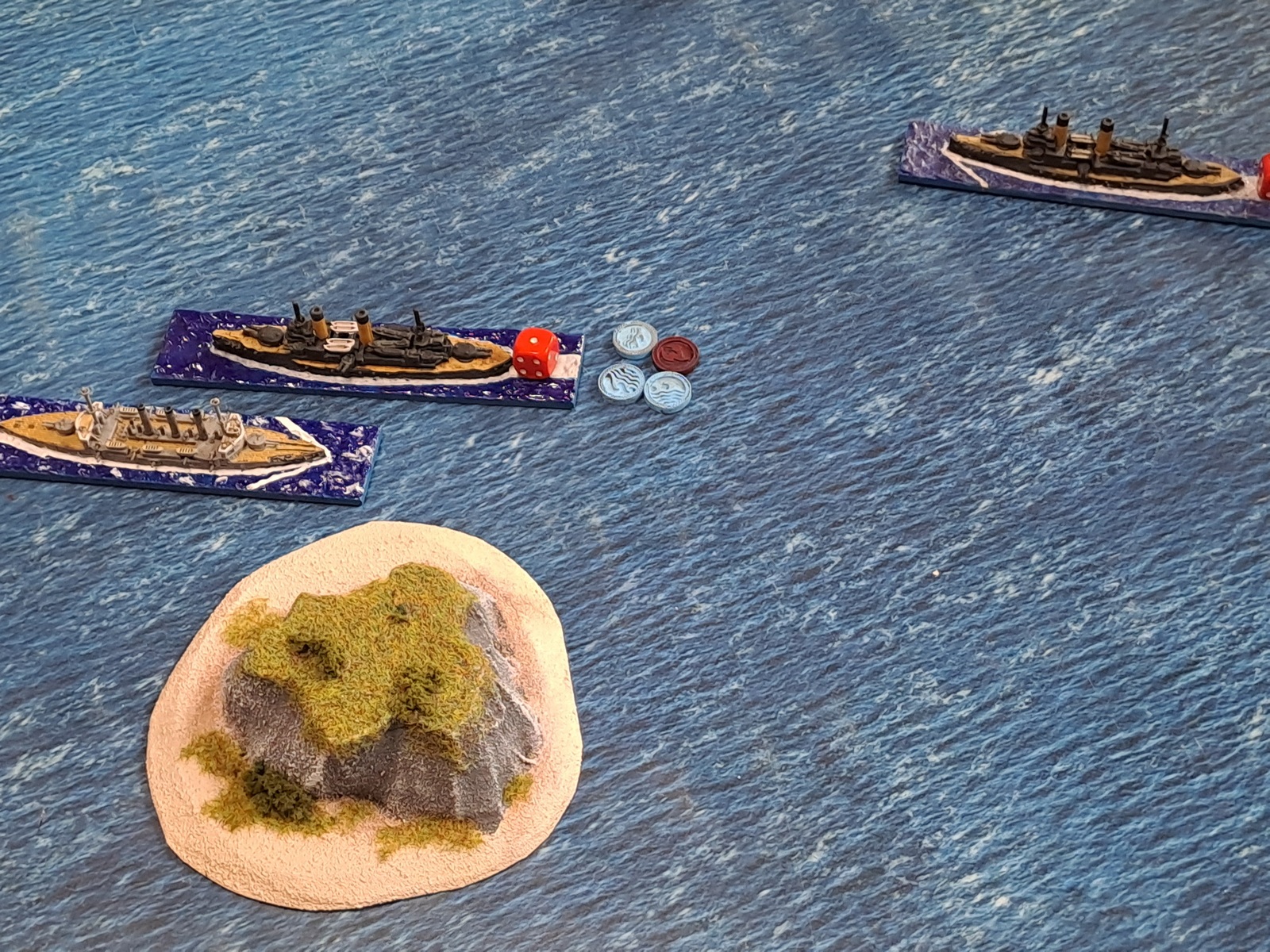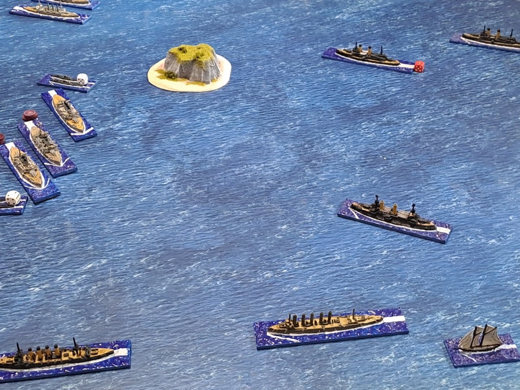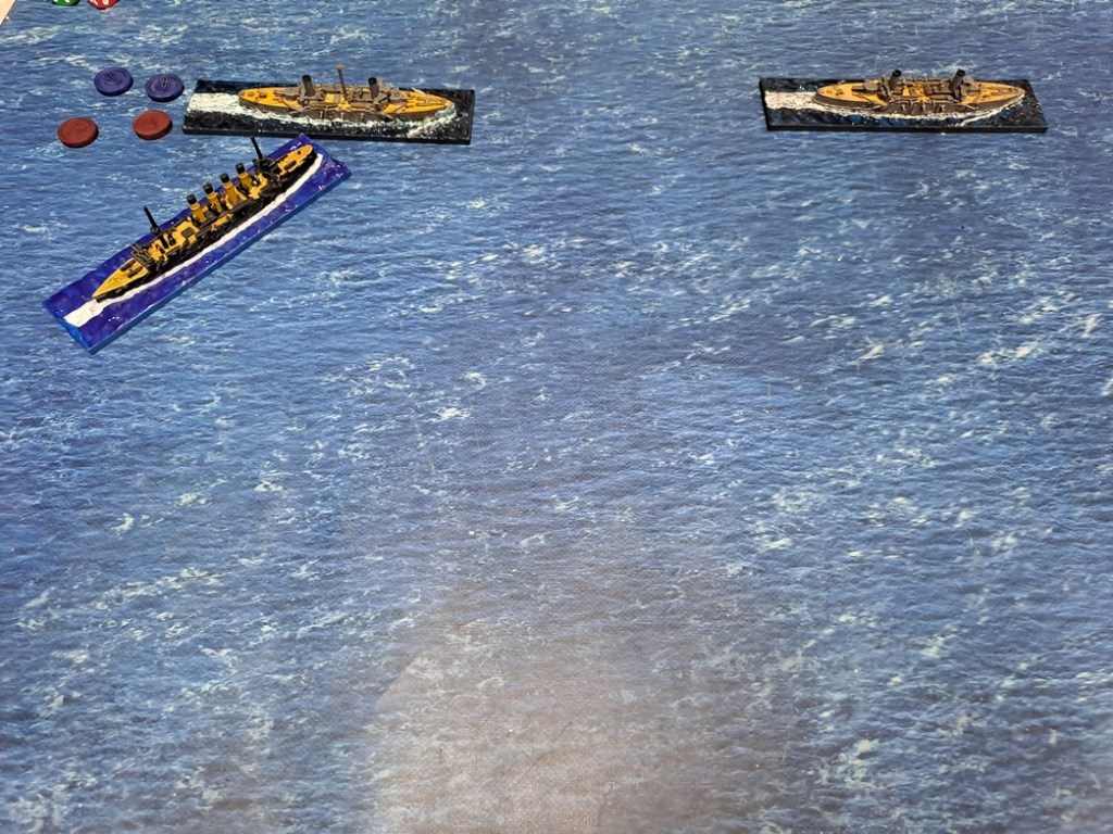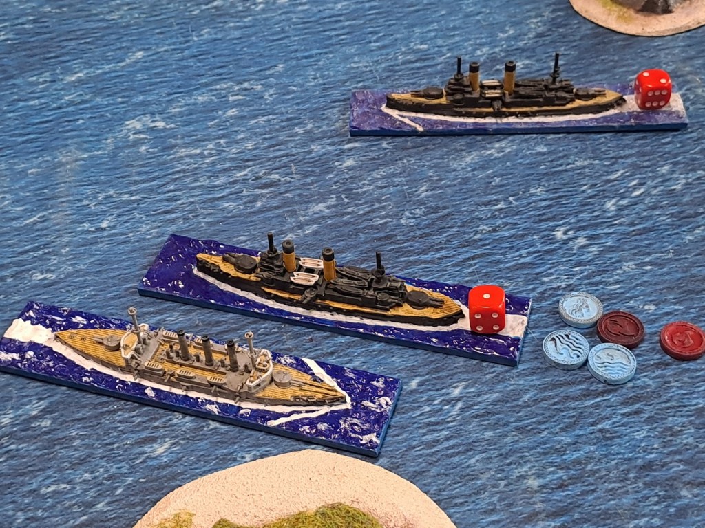 Tradycji stało się zadość – musieliśmy się spotkać! Tym razem Amerykanie mieli pancernik, a mój plan ominięcia floty przeciwnika spalił na panewce przez uszkodzenie steru na Gromoboju (lub Ruryku).