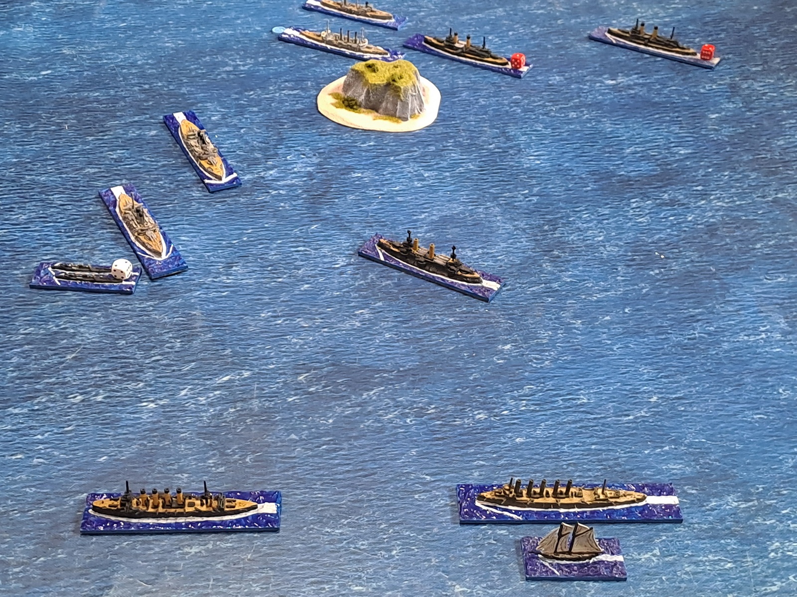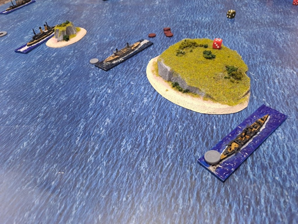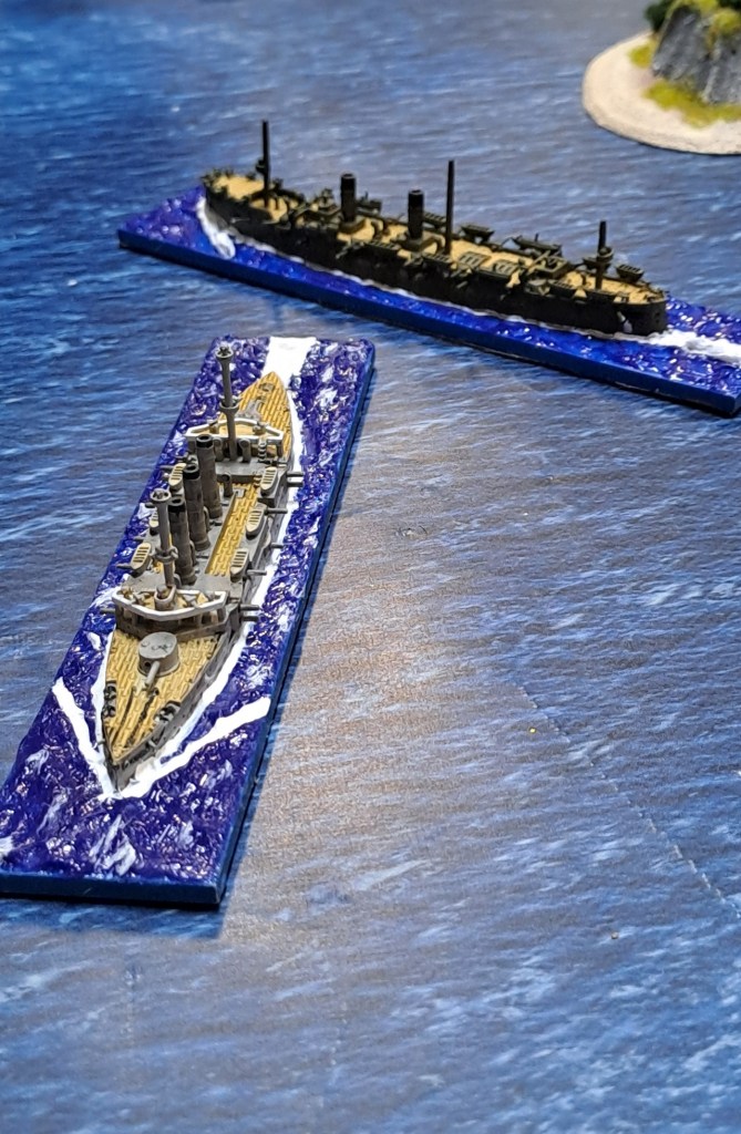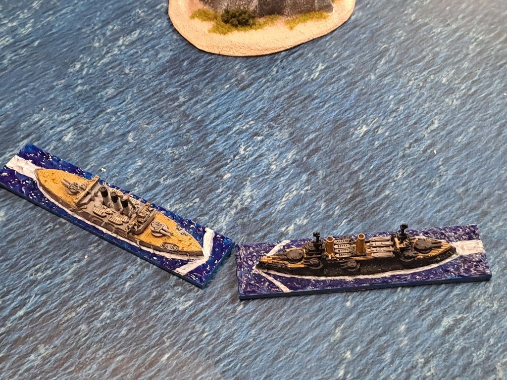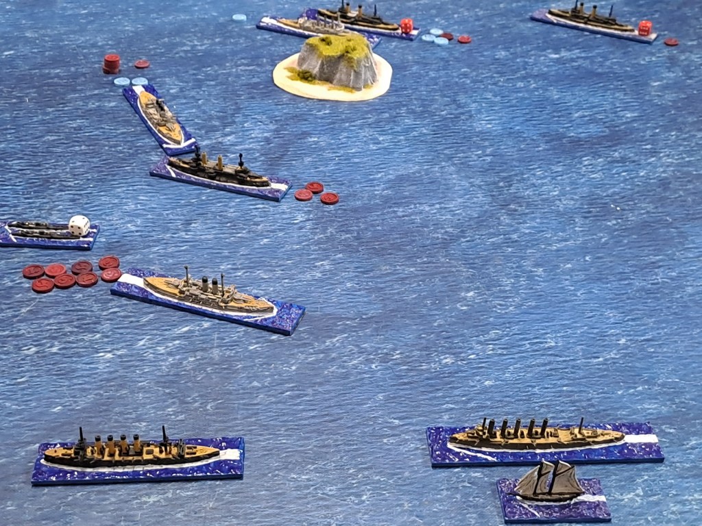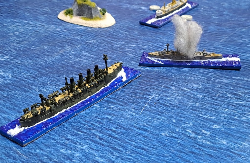 As tradition demands, we had to face each other! This time, the Americans had a battleship, and my plan to outflank them failed when my Gromoboy (or Rurik) lost its rudder.