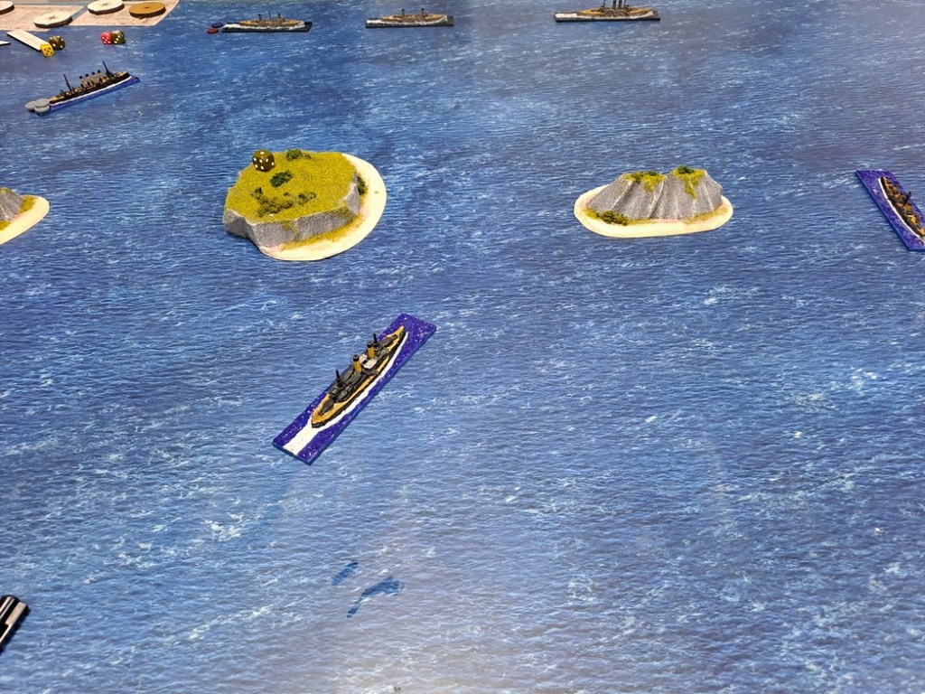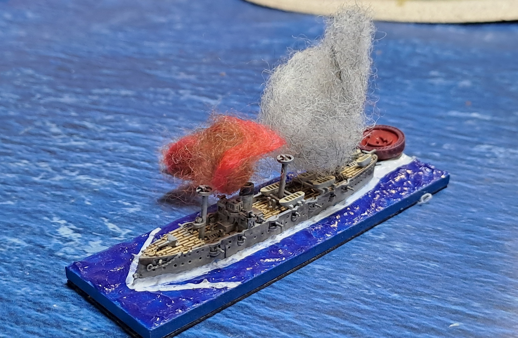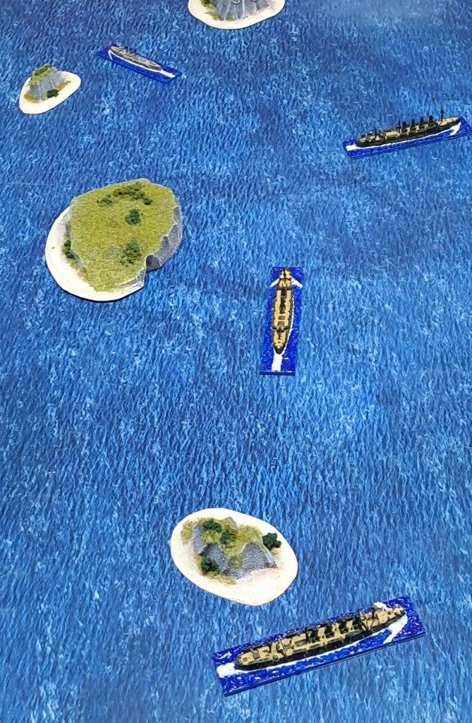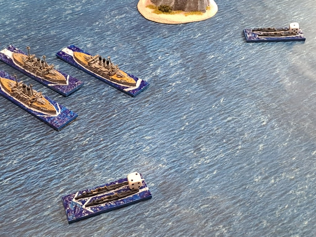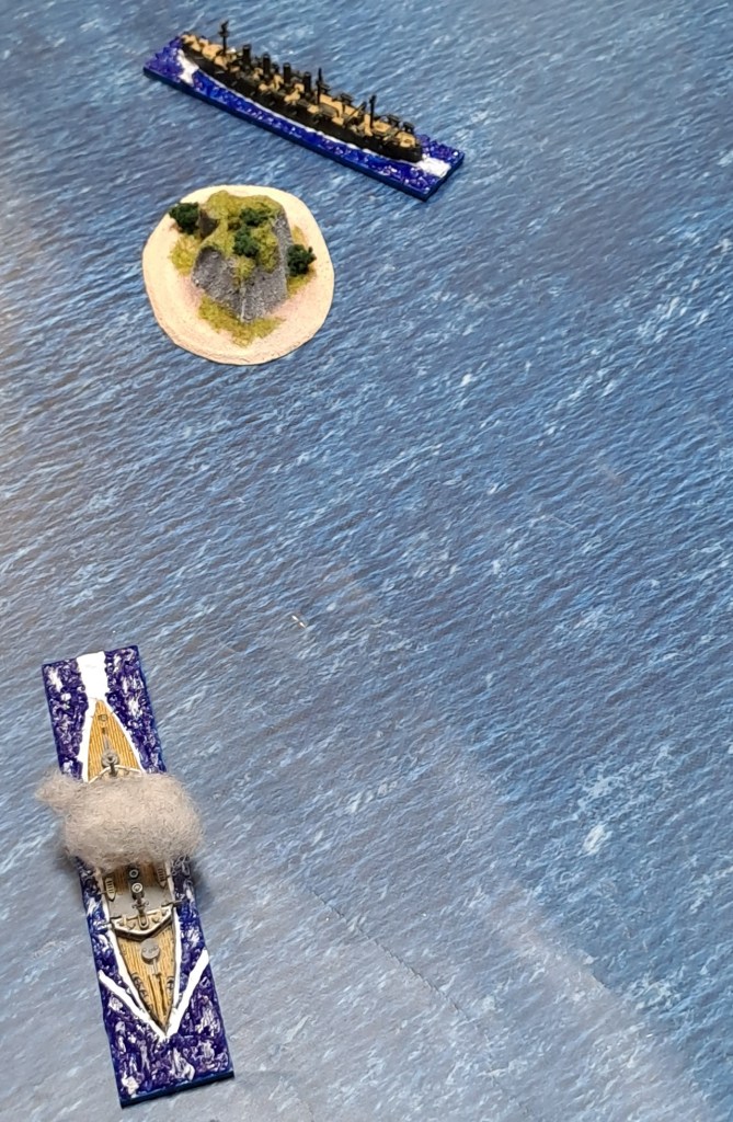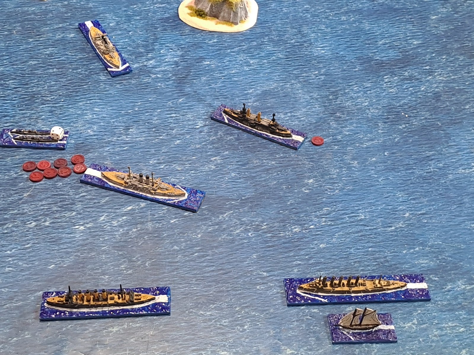 As tradition demands, we had to face each other! This time, the Americans had a battleship, and my plan to outflank them failed when my Gromoboy (or Rurik) lost its rudder.