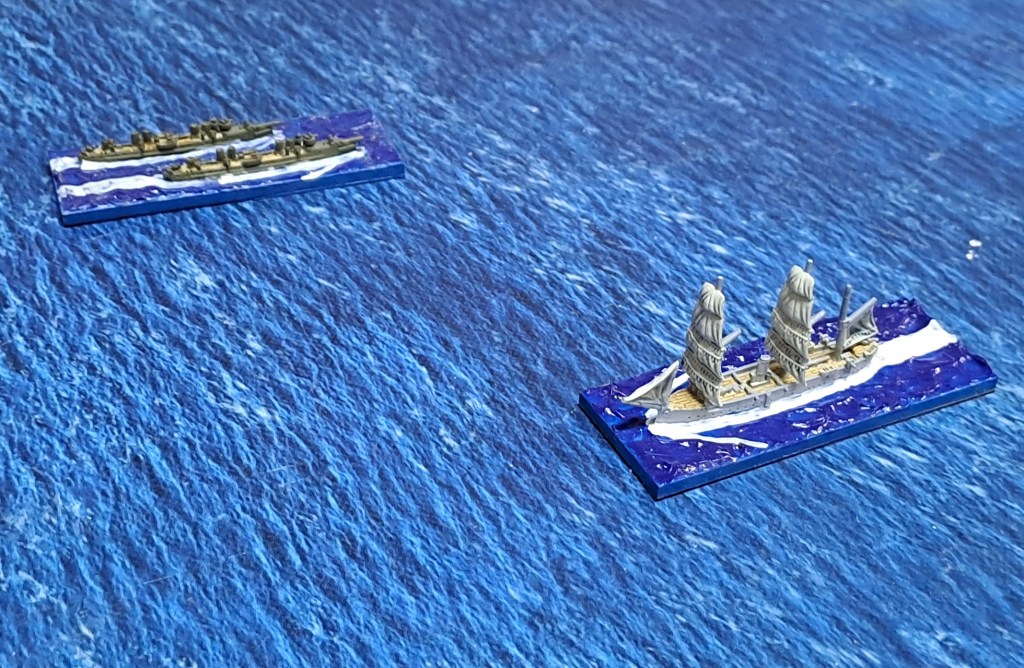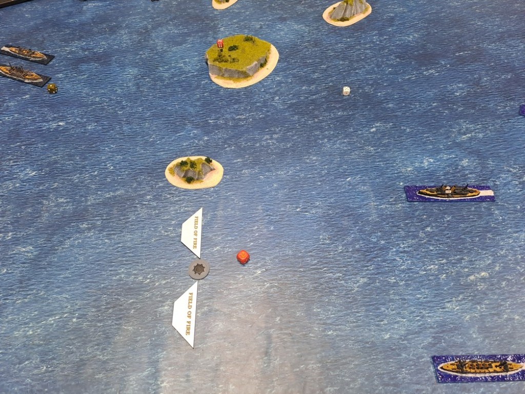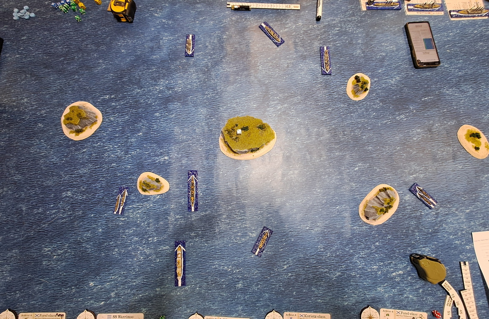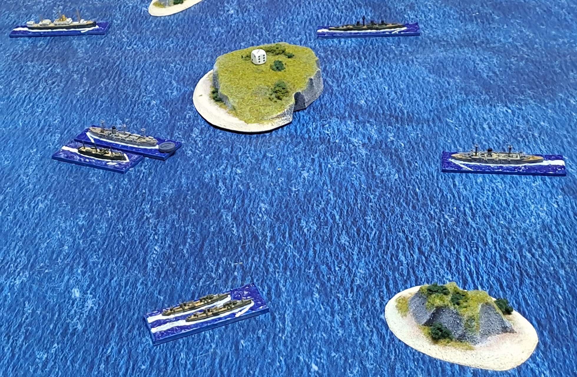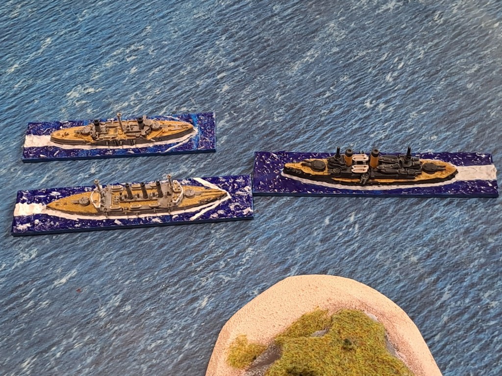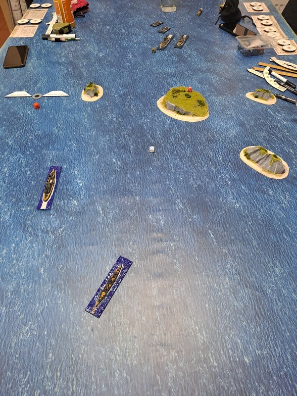 As tradition demands, we had to face each other! This time, the Americans had a battleship, and my plan to outflank them failed when my Gromoboy (or Rurik) lost its rudder.