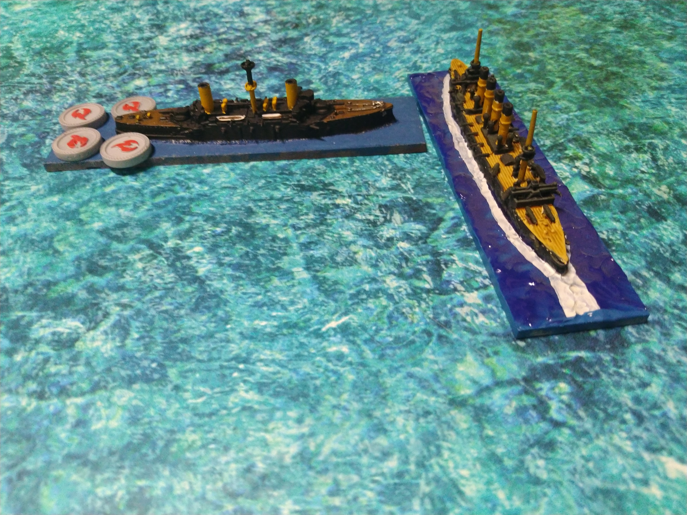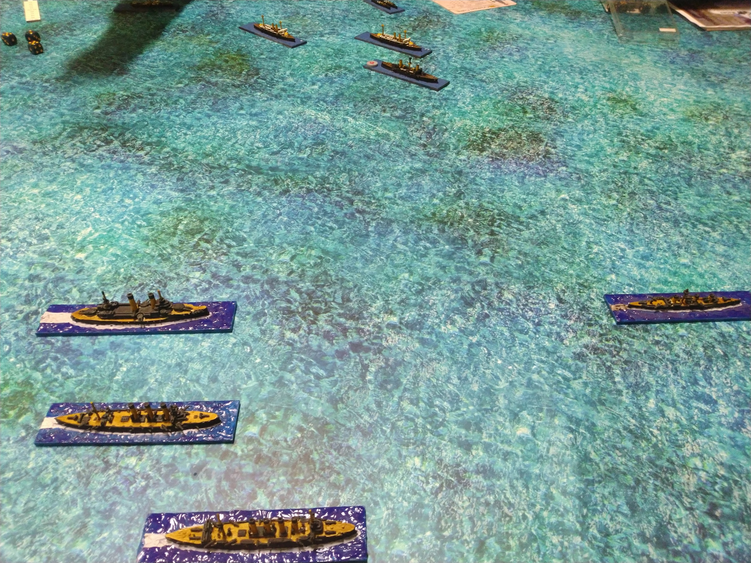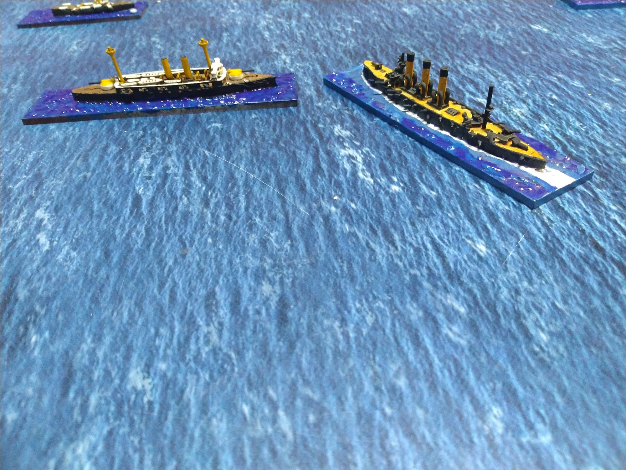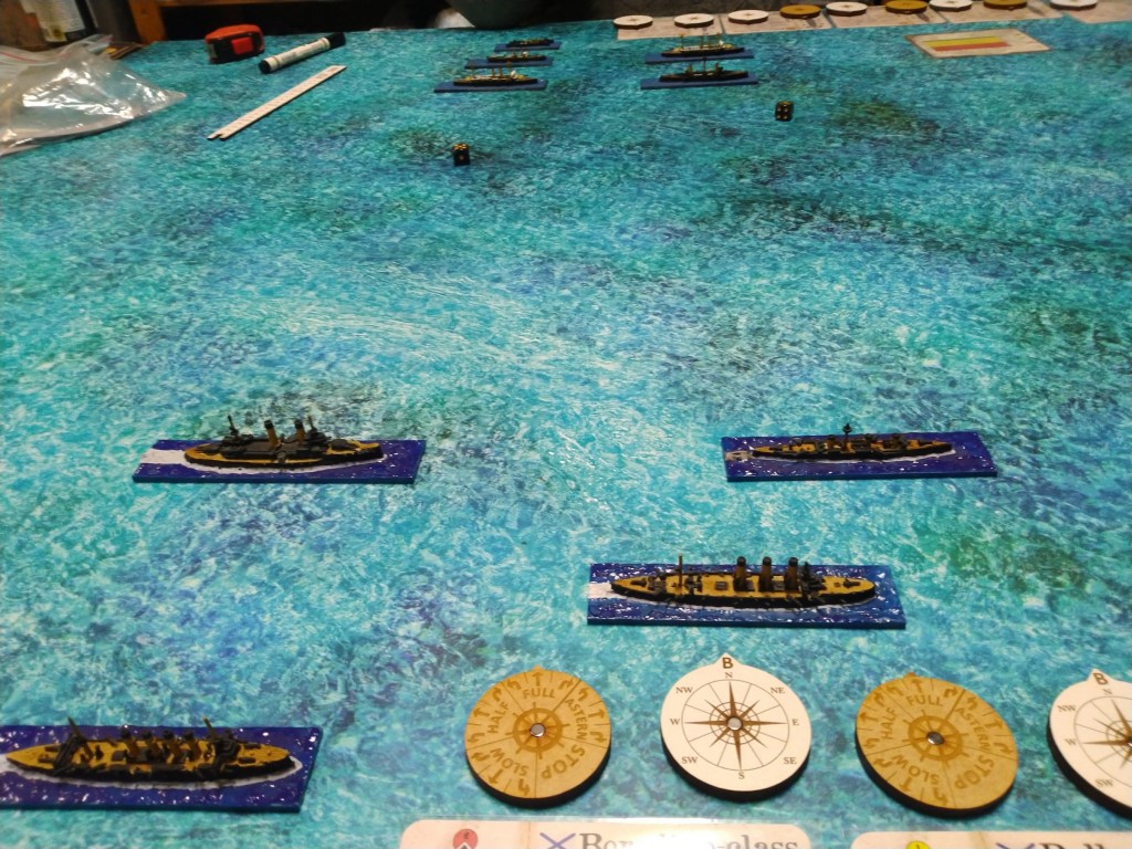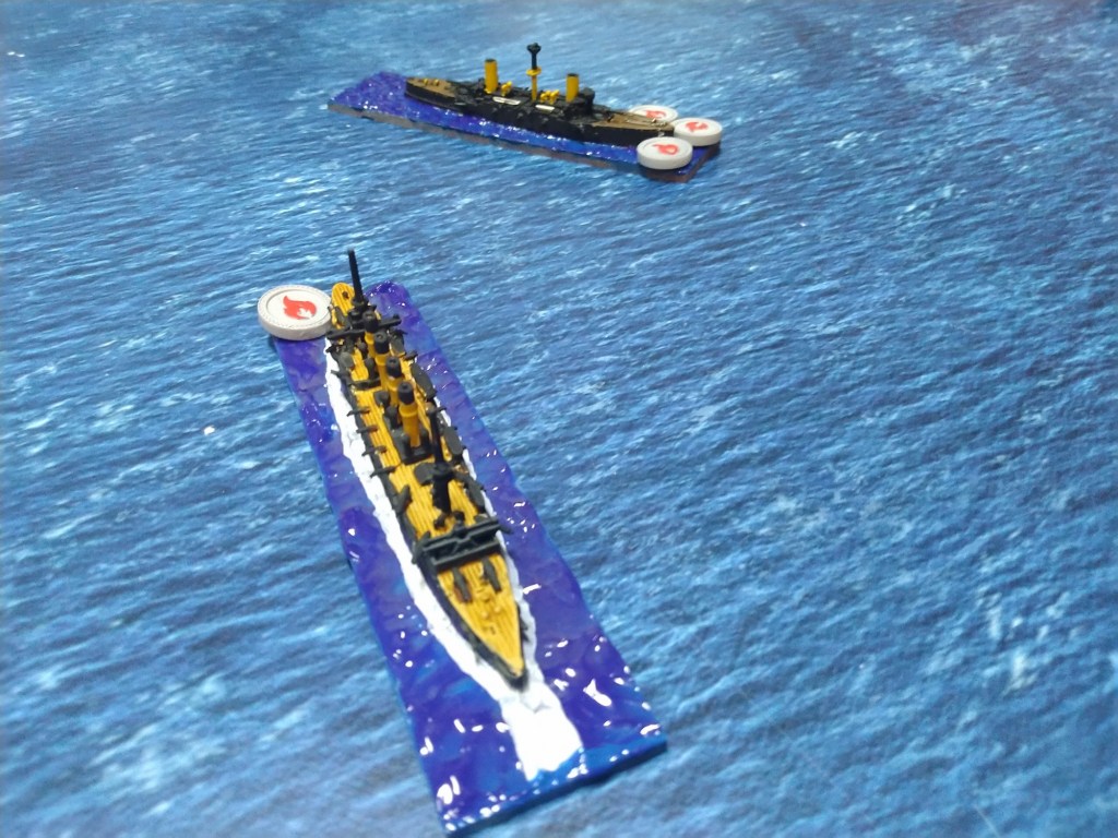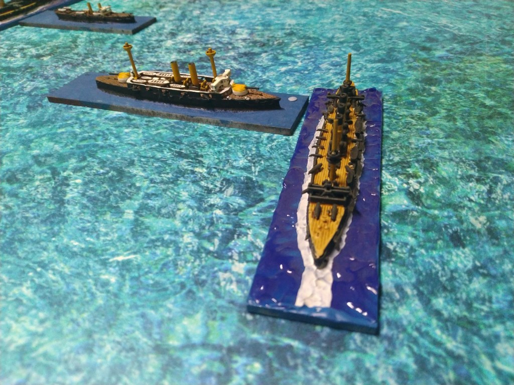 As tradition demands, we had to face each other! This time, the Americans had a battleship, and my plan to outflank them failed when my Gromoboy (or Rurik) lost its rudder.